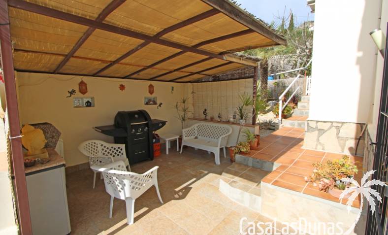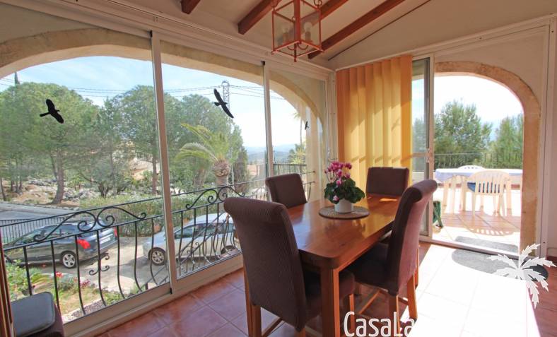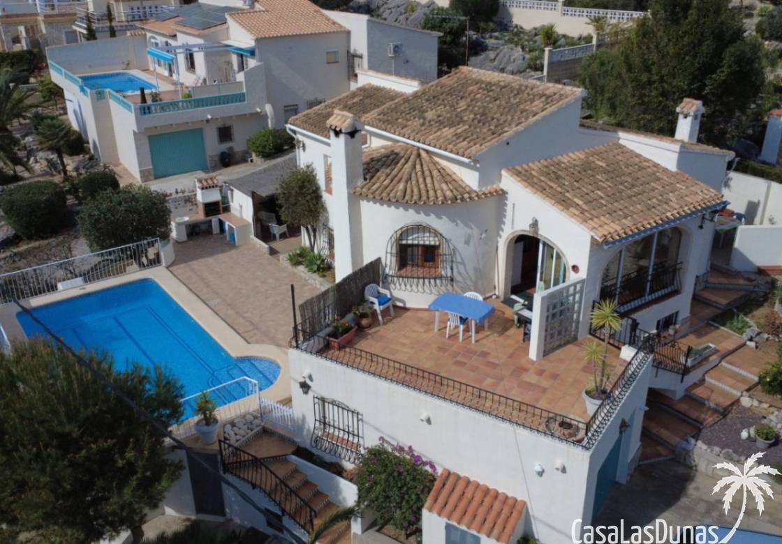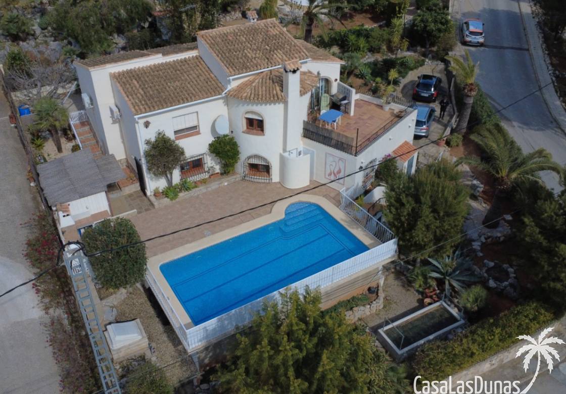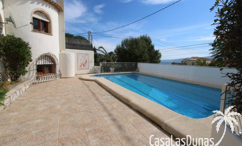 Chalet med privat pool till salu i Sanet y Negrals, helt i söderläge och med panoramautsikt. Villan har två separata våningar: bottenvåningen med ett rymligt vardagsrum, öppet kök, täckt terrass, två sovrum och ett badrum, och en gästlägenhet på nedervåningen med vardagsrum, kök, två sovrum och ett badrum. Bekvämligheter inkluderar luftkonditionering, gasvärme, öppen spis och dubbelglas. Utomhus finns en 10x5 meter stor pool, en utomhusdusch, en grill, ett garage för en bil och ytterligare parkering för två fordon.