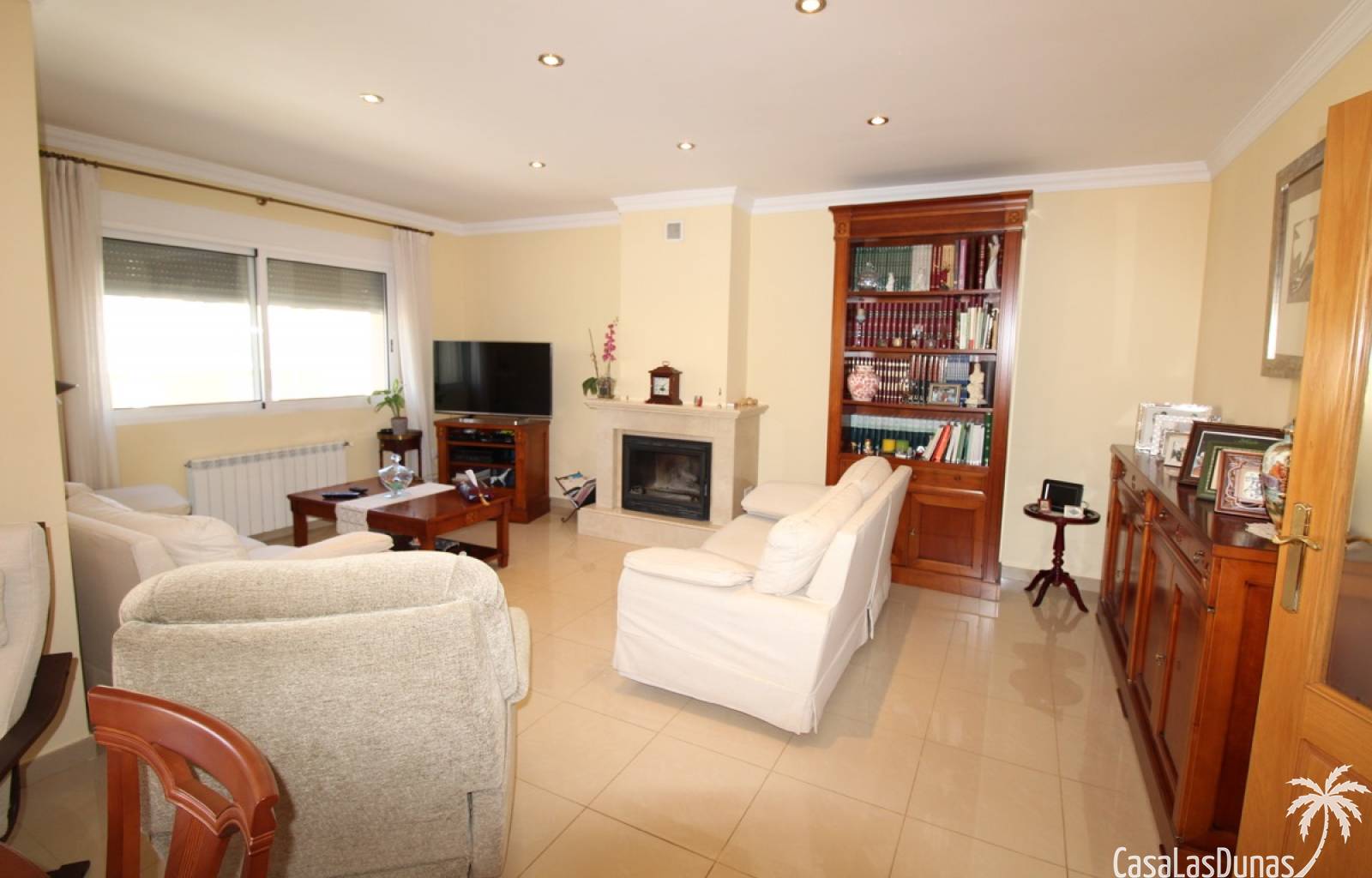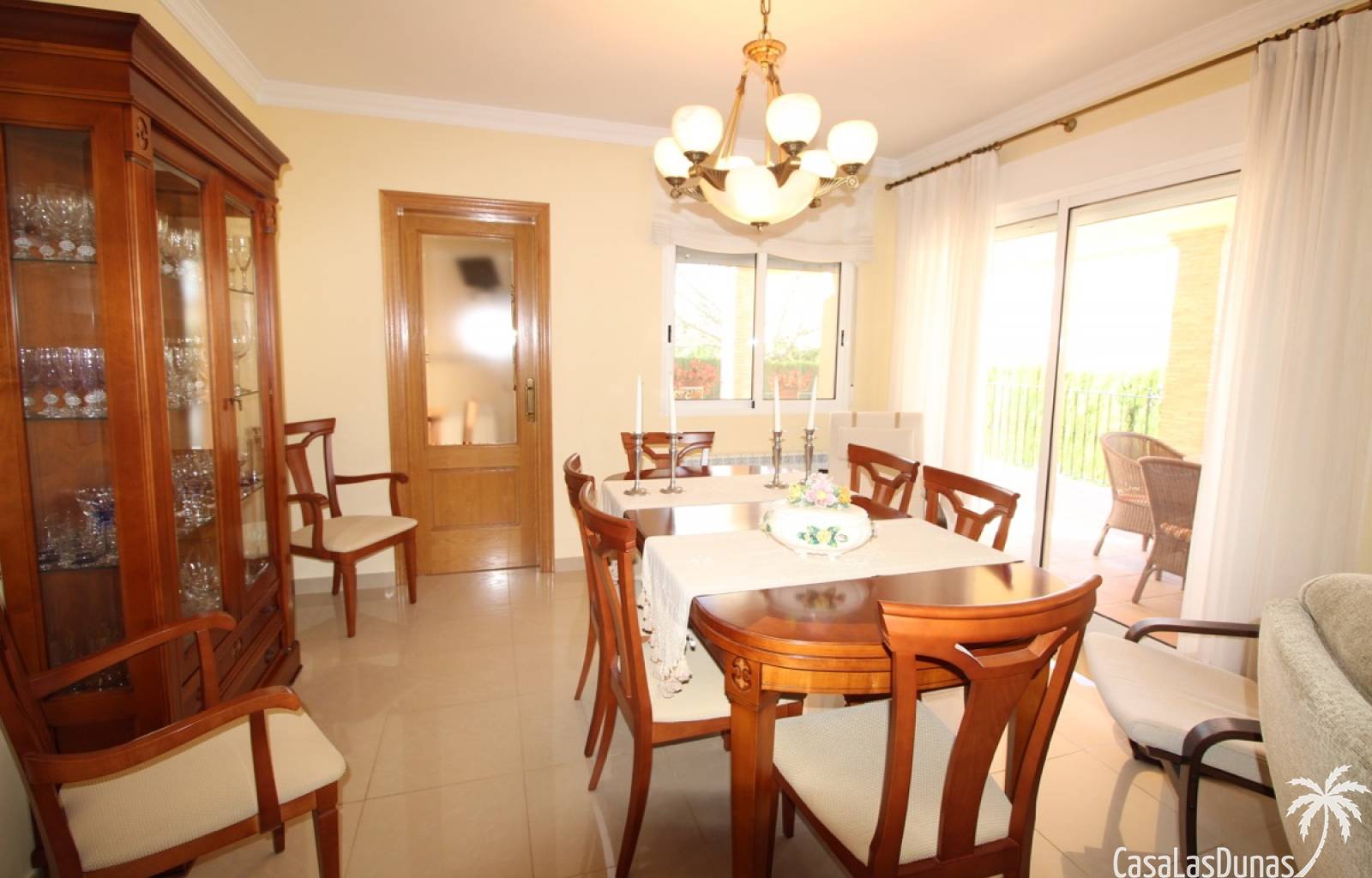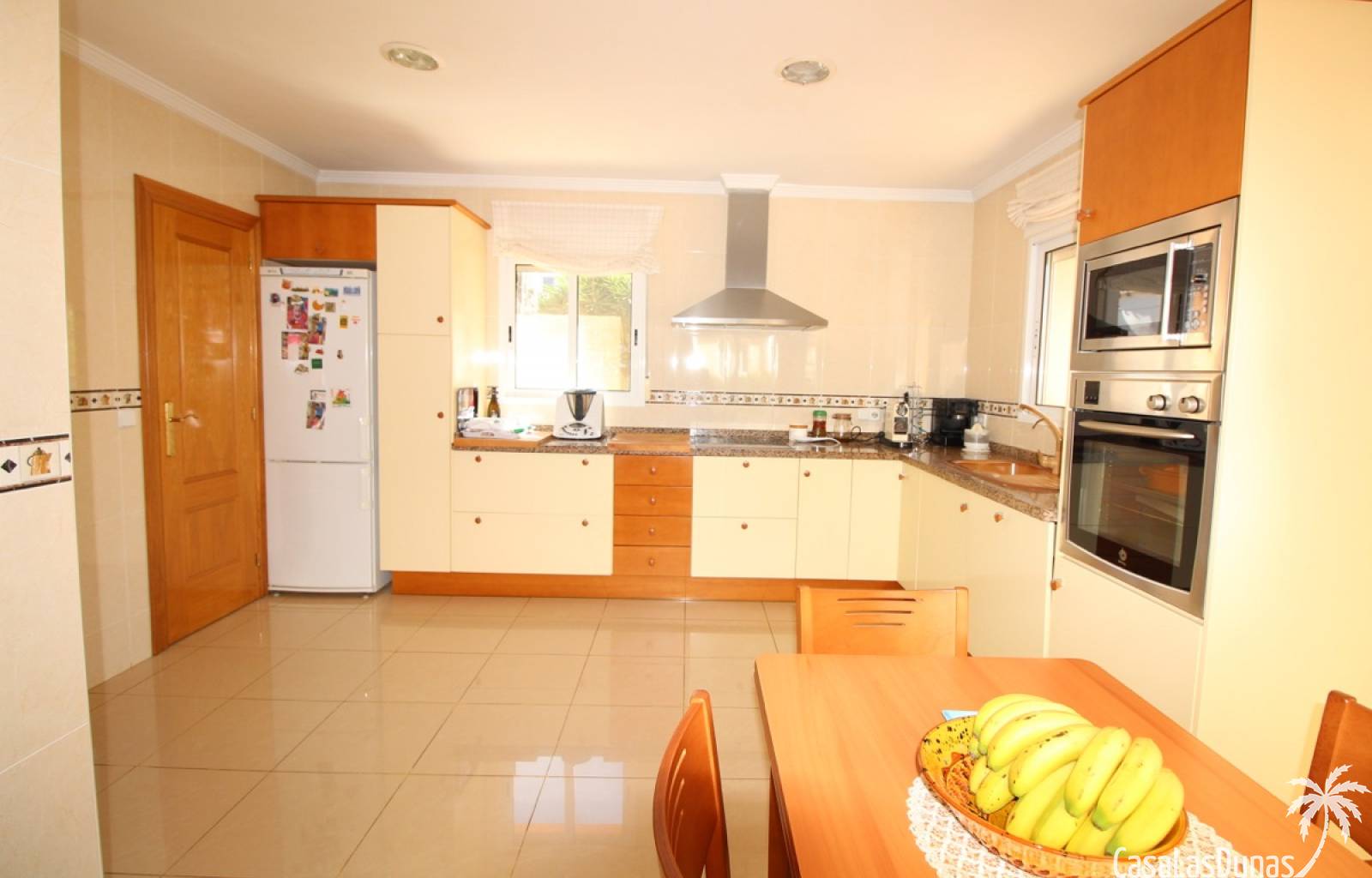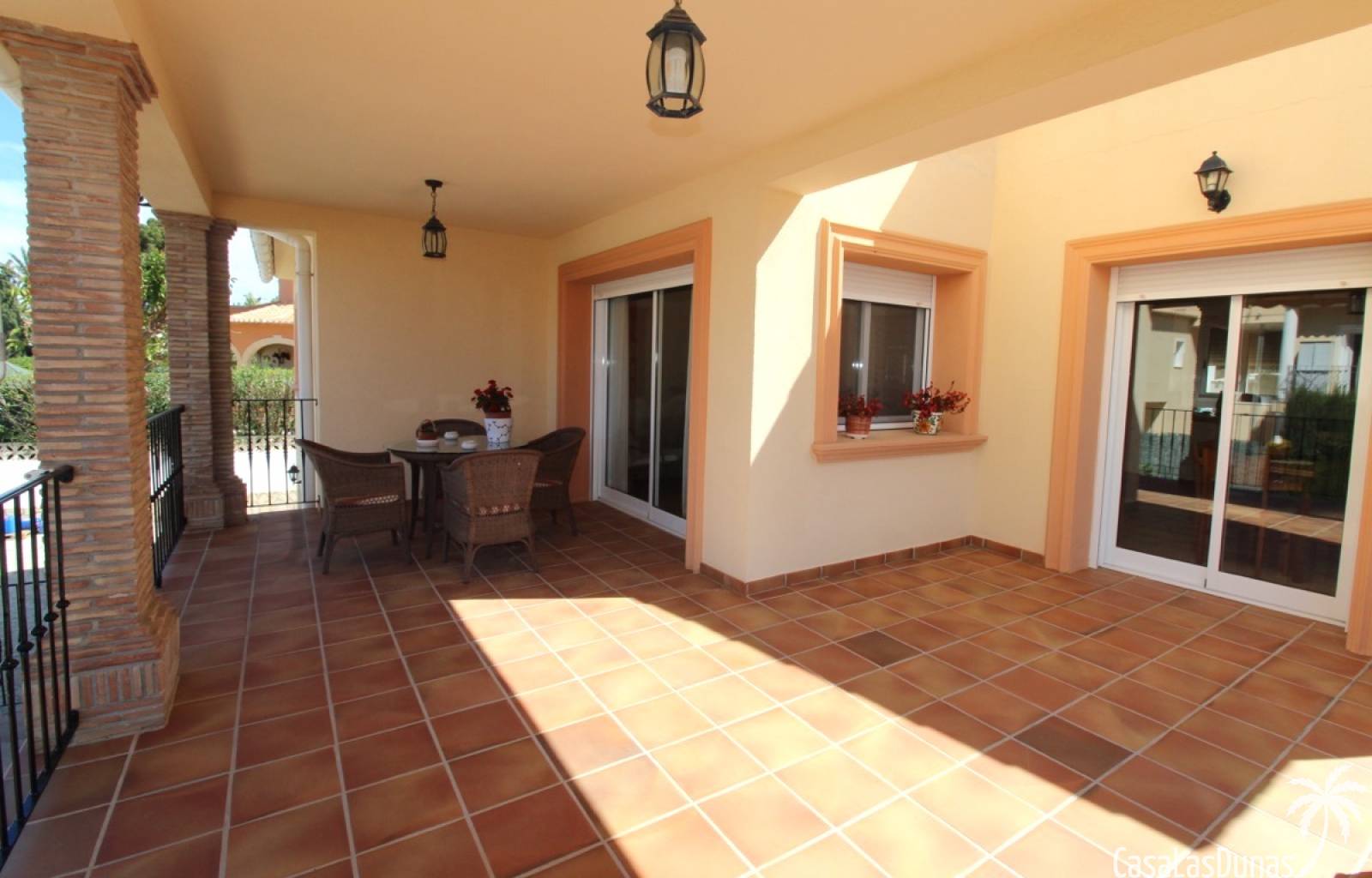 Vacker villa till salu i Dénia, byggd med högkvalitativa material och belägen i ett lugnt och populärt bostadsområde med utsikt över Montgó och gott om solsken året runt. Fastigheten har en lättskött trädgård med pool, grillplats, täckt terrass och ett dubbelgarage. Invändigt är villan fördelad på tre våningar, inklusive ett rymligt vardagsrum/matsal med öppen spis, ett fullt utrustat kök och flera sovrum och badrum. Övre våningen erbjuder ett sovrum med klädkammare, badrum och en terrass med vacker utsikt, medan källaren består av ytterligare rum och garaget. Huset är utrustat med centralvärme och luftkonditionering och är inflyttningsklart.