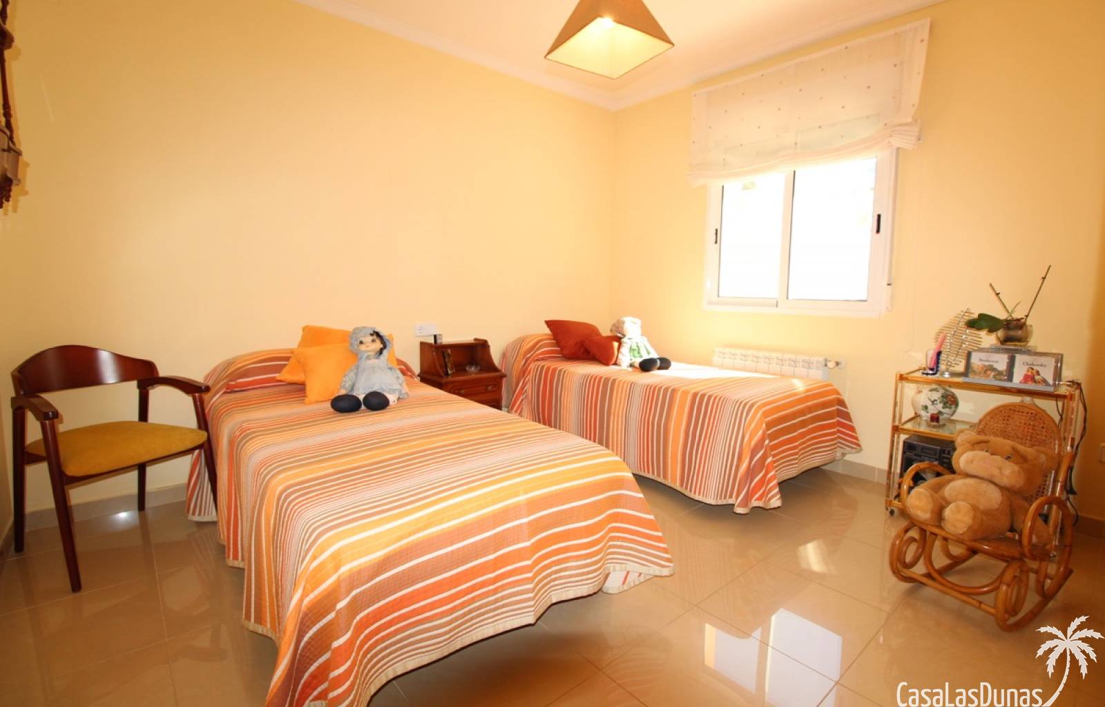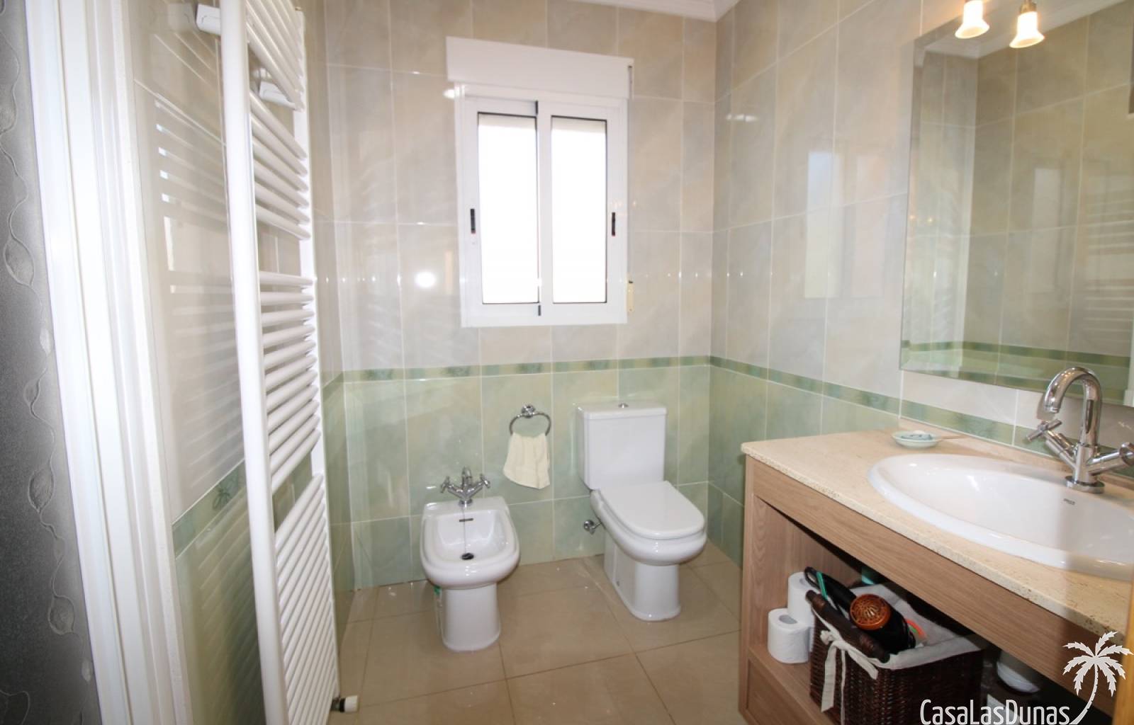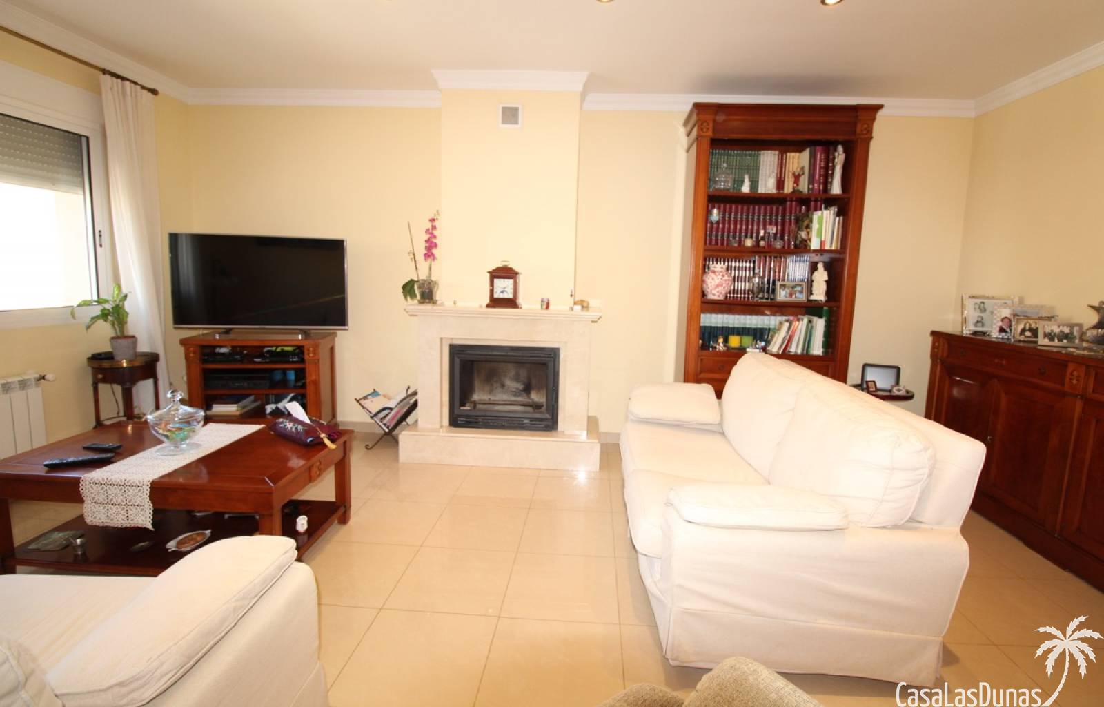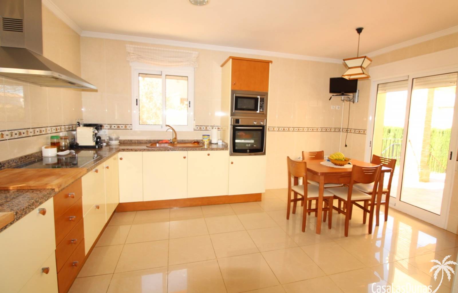 Vacker villa till salu i Dénia, byggd med högkvalitativa material och belägen i ett lugnt och populärt bostadsområde med utsikt över Montgó och gott om solsken året runt. Fastigheten har en lättskött trädgård med pool, grillplats, täckt terrass och ett dubbelgarage. Invändigt är villan fördelad på tre våningar, inklusive ett rymligt vardagsrum/matsal med öppen spis, ett fullt utrustat kök och flera sovrum och badrum. Övre våningen erbjuder ett sovrum med klädkammare, badrum och en terrass med vacker utsikt, medan källaren består av ytterligare rum och garaget. Huset är utrustat med centralvärme och luftkonditionering och är inflyttningsklart.
