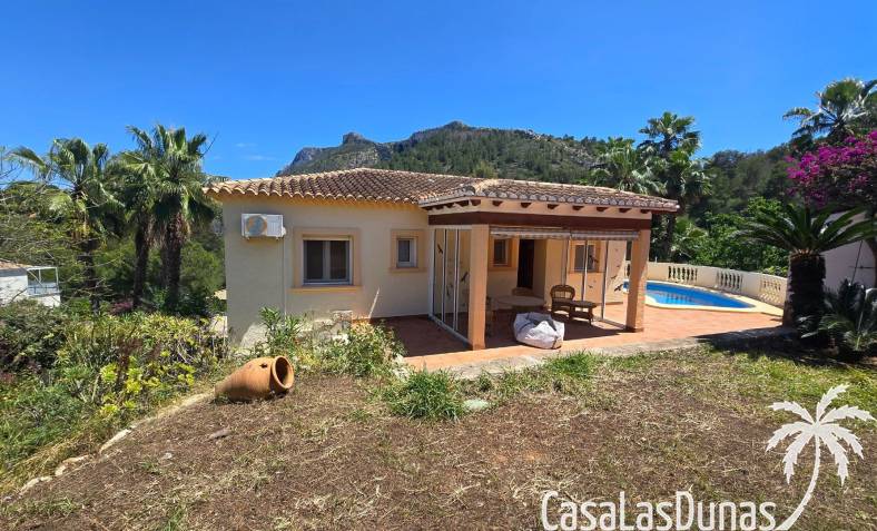 Ruime villa gelegen op een mooi hoekperceel van 850 m² met privacy, prive zwembad en mooi uitzicht op de Montgo. Er zijn verschillende zitplaatsen in de zon of in de schaduw, een tuin met palmbomen, vijgenbomen en tropische planten en voldoende parkeergelegenheid en tevens een garage. Het huis beschikt over een bebouwde oppervlakte van 250 m² met 3 dubbele slaapkamers, 1 kinderkamer, een woonkamer met een open haard, een volledig uitgeruste keuken, 3 badkamers met een douche en een studeerkamer. Er is ook een dakterras.