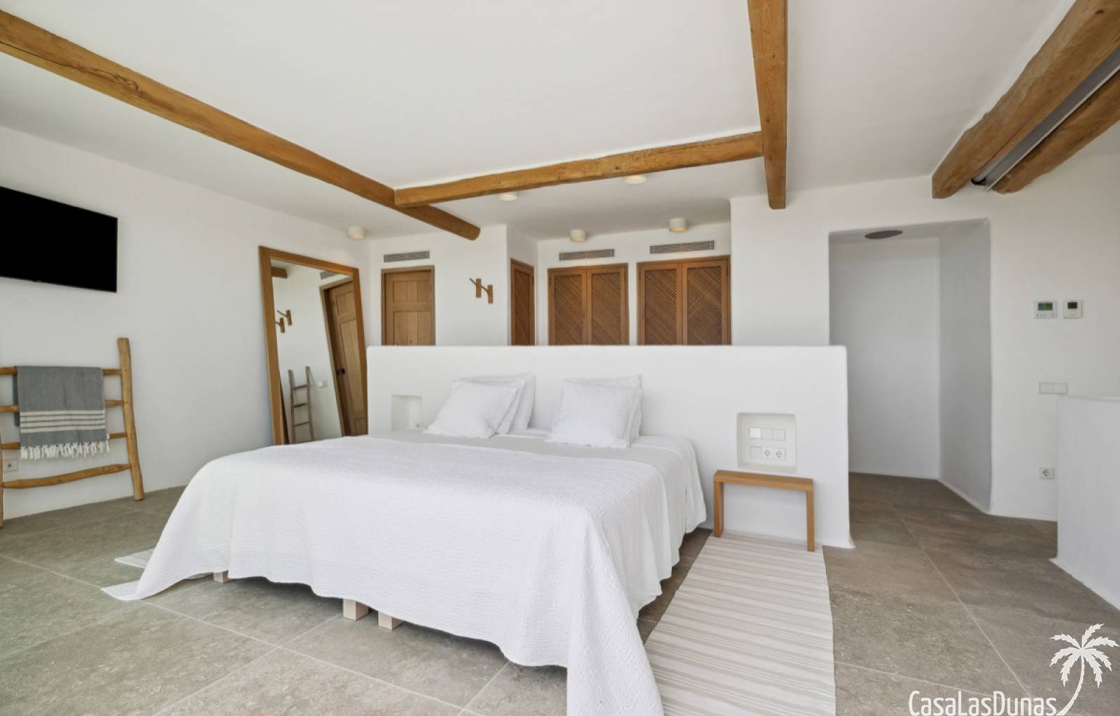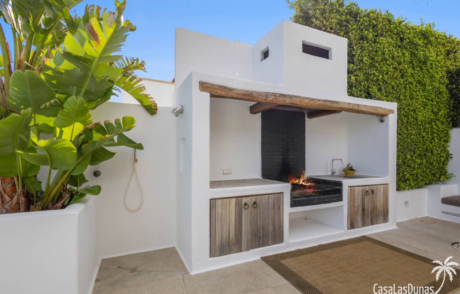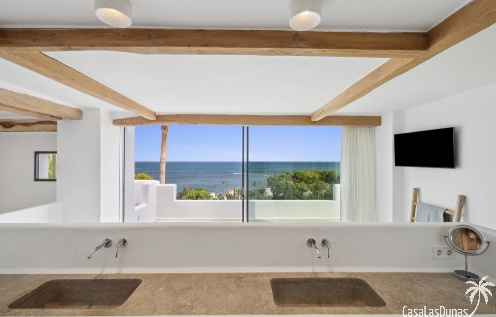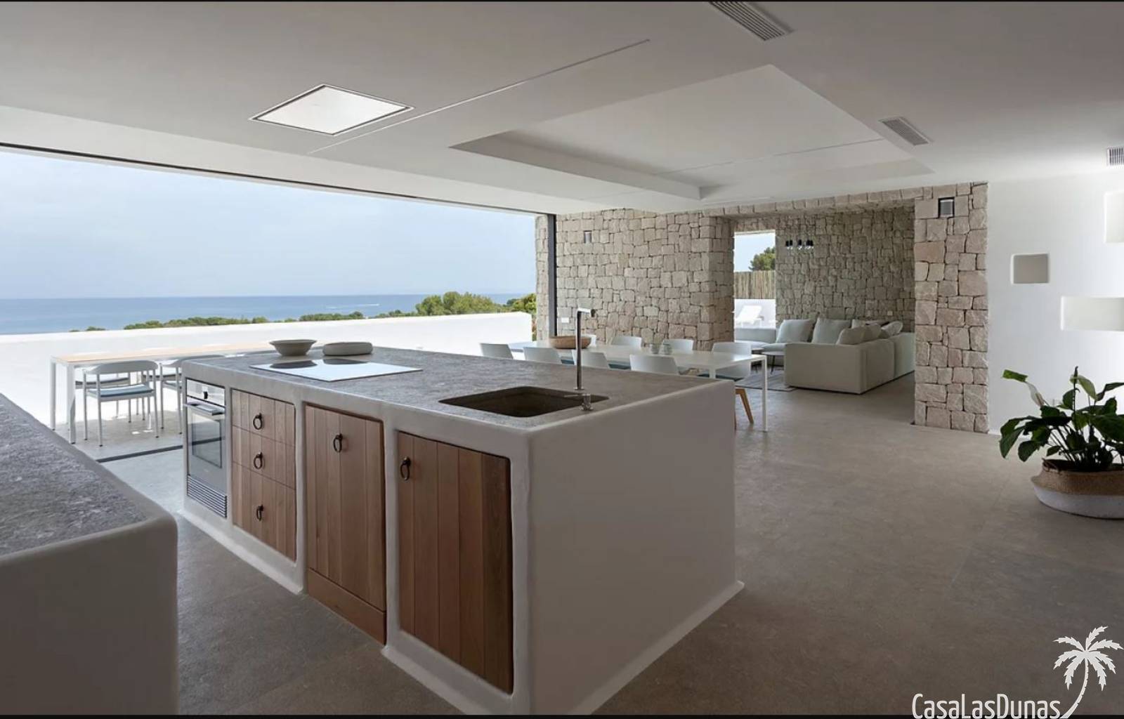 Prachtige villa in Ibiza stijl met panoramisch uitzicht op zee gelegen in de populaire woonwijk van San Nicolas op steenworp afstand van de zee, de jachthaven en het centrum van Denia. Het pand is ontworpen door een gerenommeerde architect en combineert strakke witte lijnen met hout en natuursteen wat voor veel warmte zorgt. Vrijwel alle vertrekken en kamers van het huis bieden prachtig zeezicht en beschikken over indrukwekkende raampartijen die grotendeels in de muur verdwijnen. Op woonniveau is een open keuken met eetgedeelte, woonkamer met open haard en gastentoilet. Het interieur vloeit naadloos over in de ruime terrassen met privé zwembad en buitenkeuken, allemaal op gelijke hoogte van het woongedeelte. Op de bovenste etage bevindt zich de elegante hoofdslaapkamer met en suite badkamer en terras. Een verdieping beneden het woongedeelte bevinden zich nog 3 slaapkamers meer met eigen badkamers en een extra woonkamer (of 5e slaapkamer) met raam naar het zwembad. Op dit niveau is tevens een wasruimte, technische ruimte en berging. Tot slot is er een mooi dakterras met chill out.