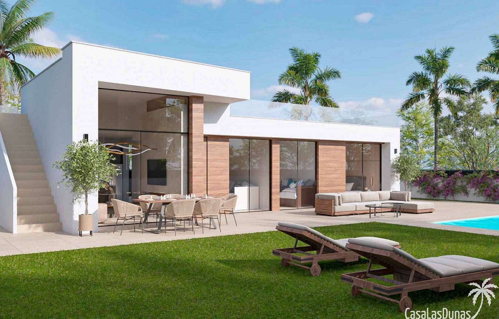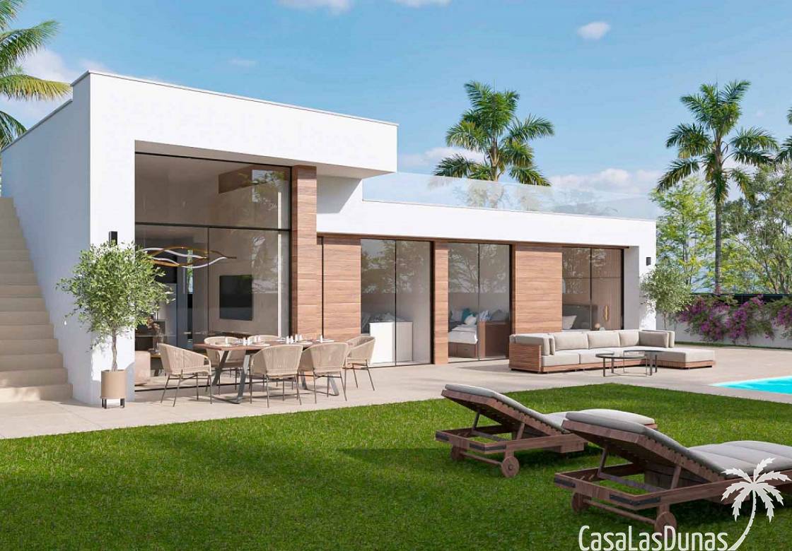 Deze eigentijdse villa´s aan de Costa Cálida kan je vinden in het golfresort Condado De Alhama. De villa´s hebben 3 slaapkamers en 2 badkamers, een volledig uitgeruste keuken. De grote raampartijen zorgen ervoor dat er veel natuurlijk lichtinval aanwezig is. Beide badkamers zijn voorzien van alle moderne comfort, in de slaapkamers zijn er ingebouwde kasten voorzien. Buiten kan men genieten van een heerlijke duik in je eigen zwembad, het grote solarium biedt je niet alleen een mooi uitzicht maar is er ook plaats voorzien voor een buitenkeuken. Elke woning heeft zijn eigen privé parking op zijn terrein.