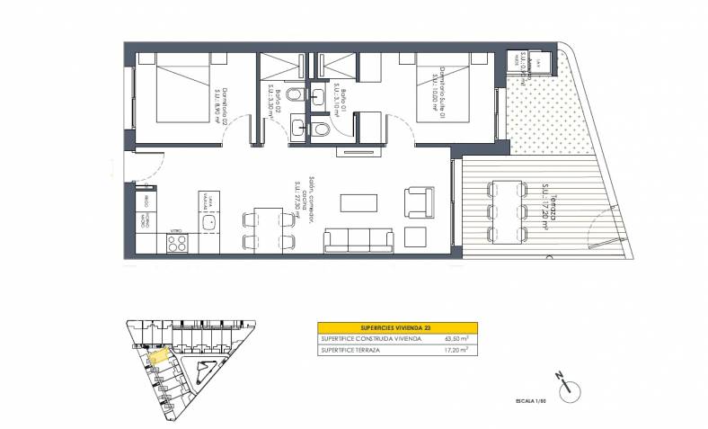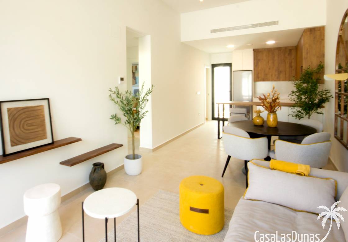 Deze prachtige, moderne appartementen worden gebouwd in het leuke Spaanse dorp San Fulgencio. Er zijn 2 verschillende modellen beschikbaar: Appartementen op de begane grond met privé terras en tuin én appartementen op de eerste verdieping met balkon privé dakterras. Alle woningen worden gebouwd met 2 slaapkamers en 2 badkamers en genieten van een woonoppervlakte van 63,5 m². De terrassen meten ongeveer 25 m² dus er is meer dan voldoende ruimte om van de heerlijke Spaanse zon te genieten! Het complex wordt tevens voorzien van een gemeenschappelijk zwembad.