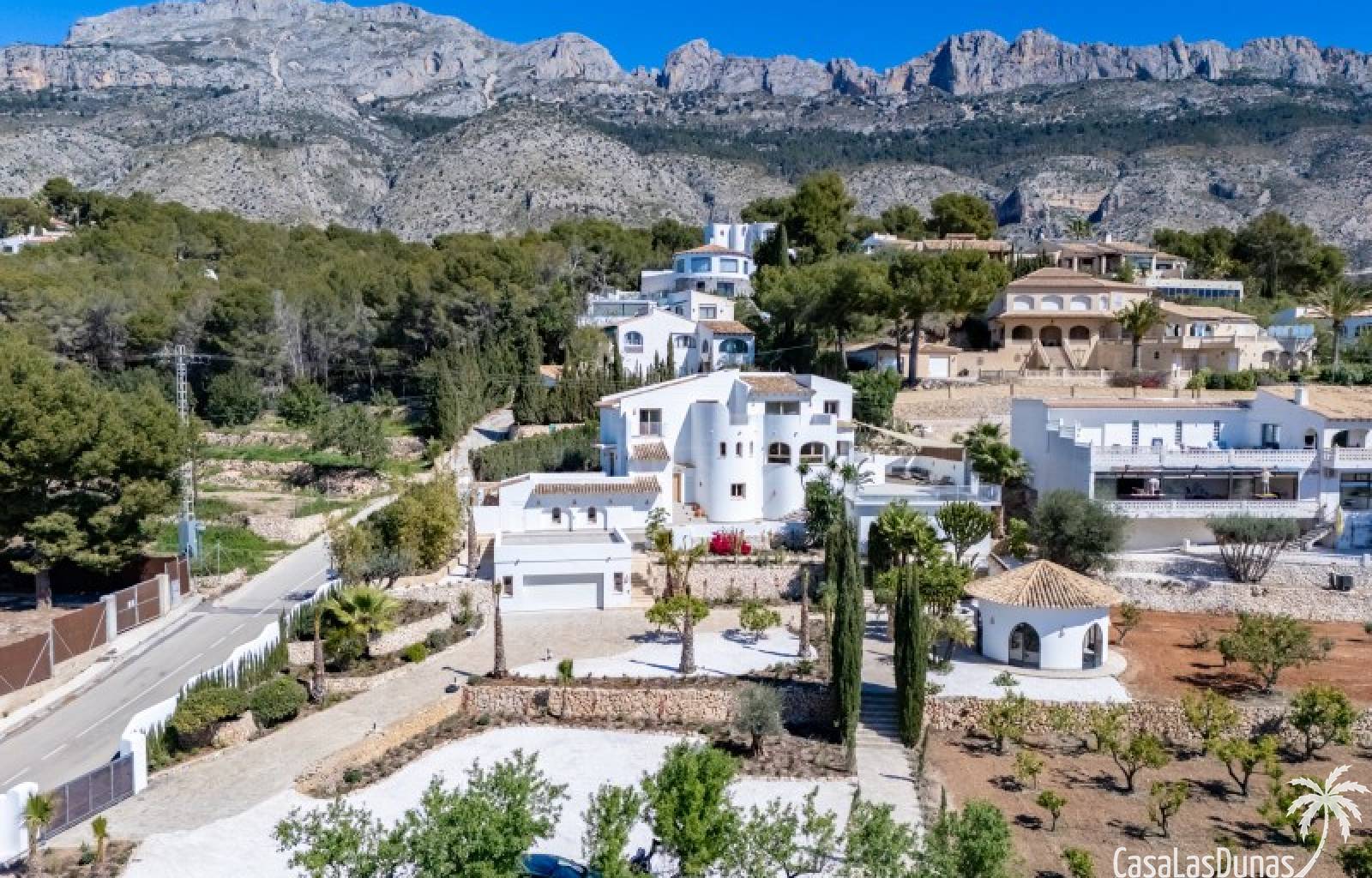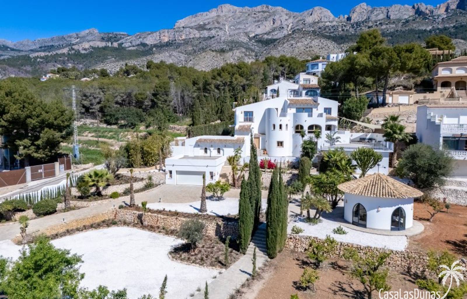 Luxe villa in de Sierra de Bernia, met prachtig uitzicht op Benidorm, allemaal omlijst door een fantastisch natuurgebied met gegarandeerde privacy, veel licht en rust. Op een perceel van 3.325m² staat deze woning van 273m² gebouwd, met een extra terras van 280m², de woning heeft in totaal 5 slaapkamers, 4 badkamers, vrij uitzicht op groene gebieden, de horizon van de zee in de verte en de skyline van Benidorm. Uitstekende afwerking met SATE-systeem aan de gevel, PVC-timmerwerk, Mitsubishi multisplit airconditioning, mechanisch ventilatiesysteem met warmteterugwinning met 95% efficiëntie, behuizing met zeer hoge comfort- en efficiëntiekenmerken. Daarnaast beschikt de woning over 3 afgesloten parkeerplaatsen, premium porseleinen vloeren, keuken met Arklam werkbladen, domotica, alarm, wijnkelder, tuin met fruitbomen en groot zwembad. Altea is een van de meest bijzondere steden aan de Costa Blanca. Het heeft meer dan 6 km kustlijn en staat bekend als 'La Villa Blanca'. De bijzondere charme van de oude stad, de smalle straatjes en de grote verscheidenheid aan restaurants maken Altea tot een perfecte plek om te ontspannen en te genieten van de vakantie of zelfs om het hele jaar door te wonen. De stad staat bekend om zijn gastronomie en zijn grote verscheidenheid aan winkels, restaurants en bars, maar het is vooral beroemd om zijn ongelooflijke uitzichten. Het ligt op 45 minuten van de luchthaven van Alicante en op slechts 10 km van Calpe en Benidorm. #ref:1721