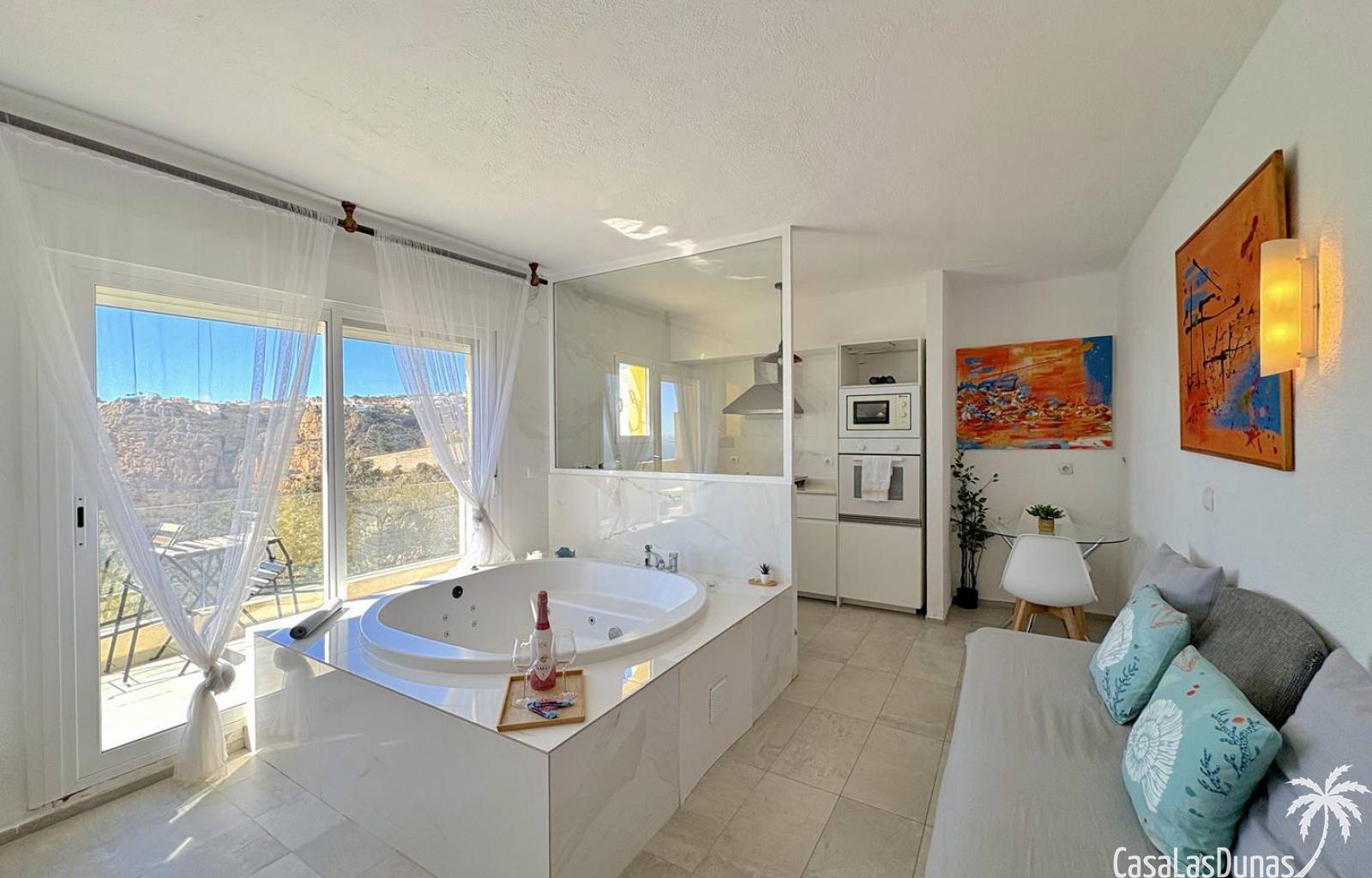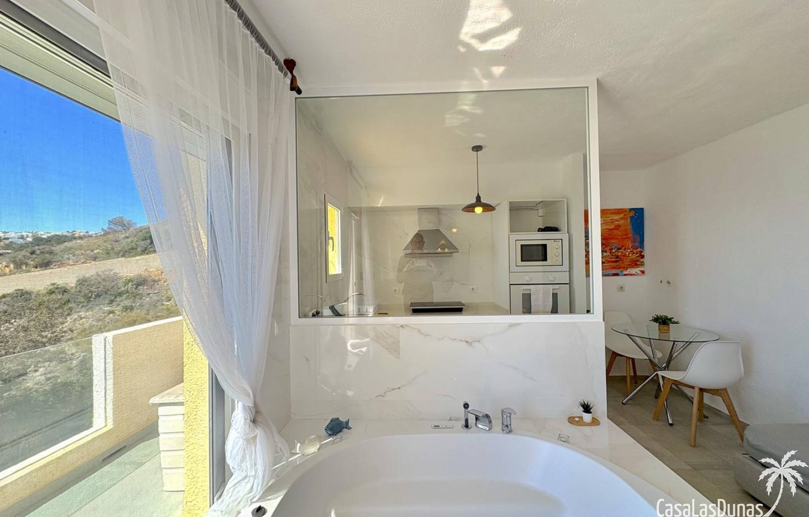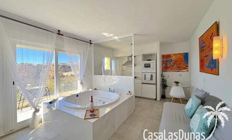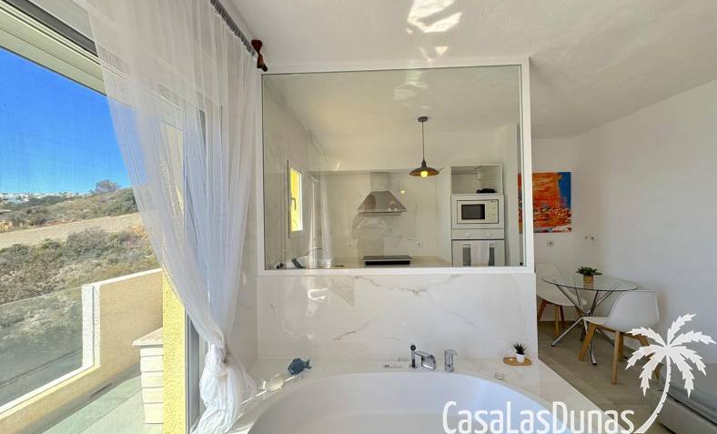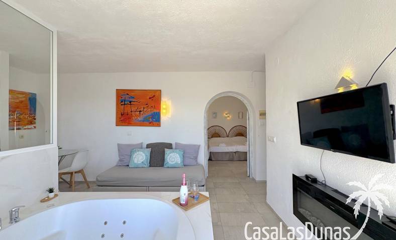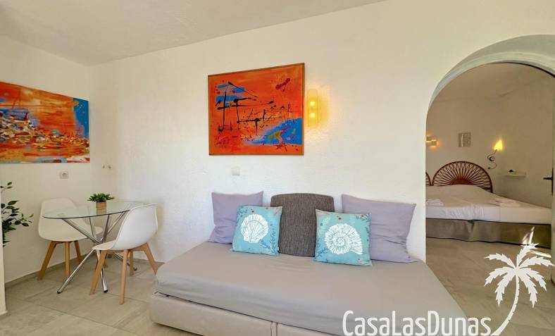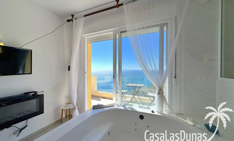 Charmant eerstelijns appartement gelegen op een klif met panoramisch uitzicht op zee. De woning is volledig gerenoveerd in 2020 en beschikt over een slaapkamer met open badkamer, woon/eetkamer met open keuken en voorgelegen terras. Er is air conditioning (warm/koud) en men heeft toegang tot een nabij gelegen gemeenschappelijk zwembad.