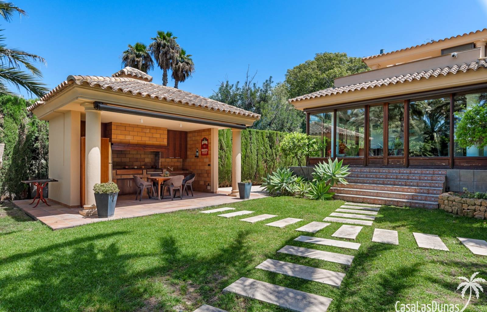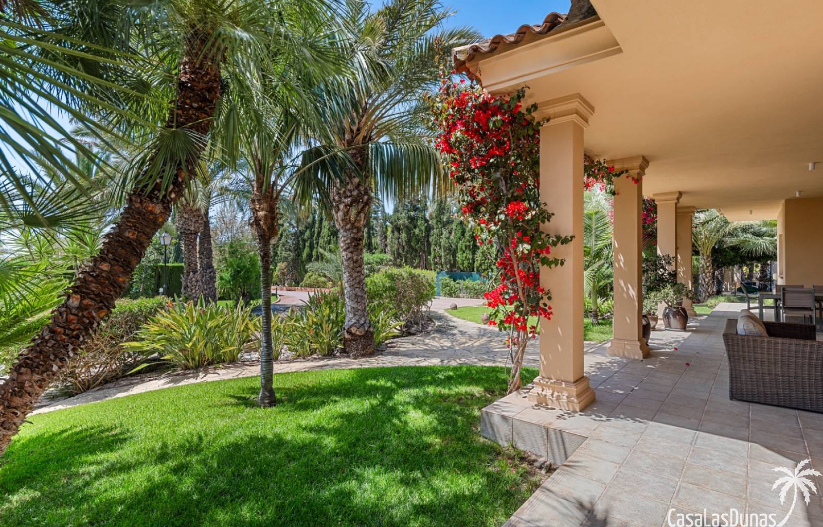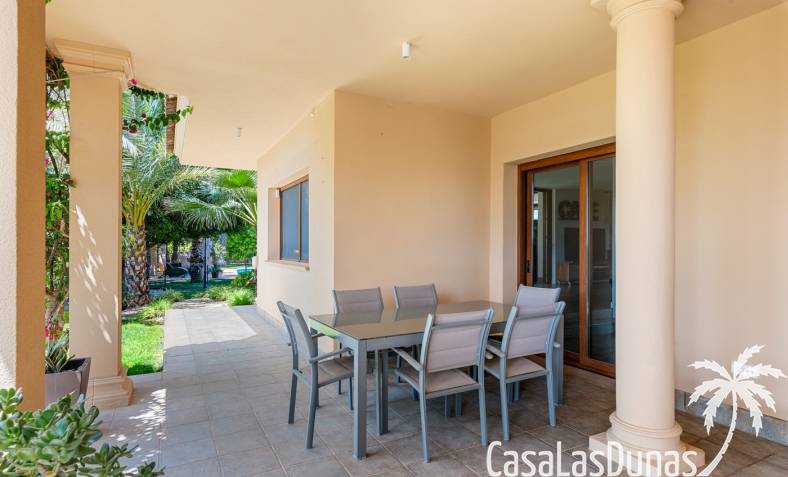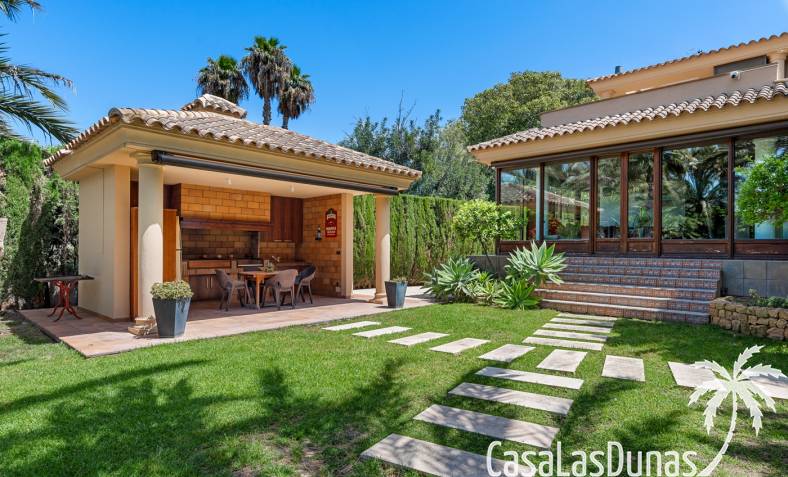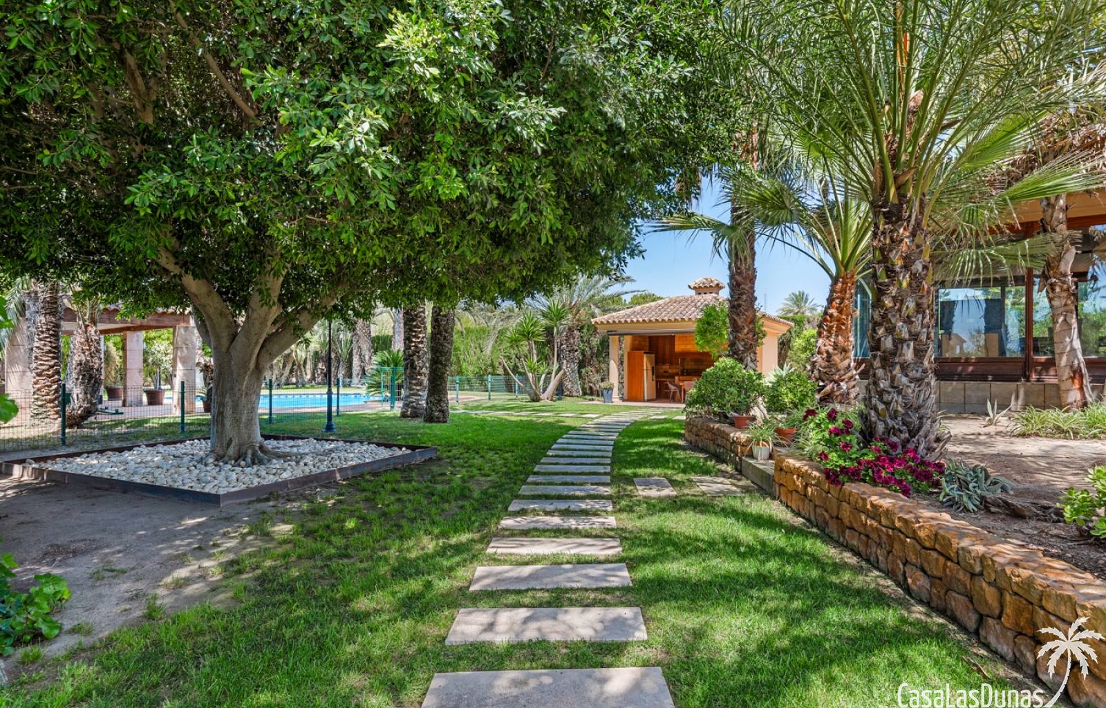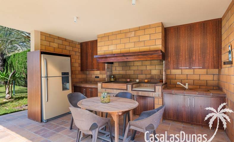 De woning heeft ruime en goed onderhouden buitenruimtes.Voor de ingang vindt u een groot overdekt terras met veel schaduw, ideaal voor warme zomerdagen.De tuin is mooi aangelegd en hier vindt u ook een volledig uitgeruste buitenkeuken.
