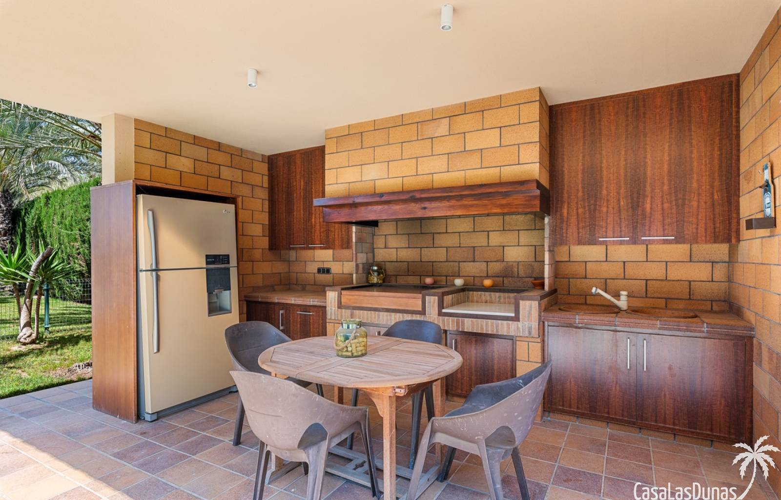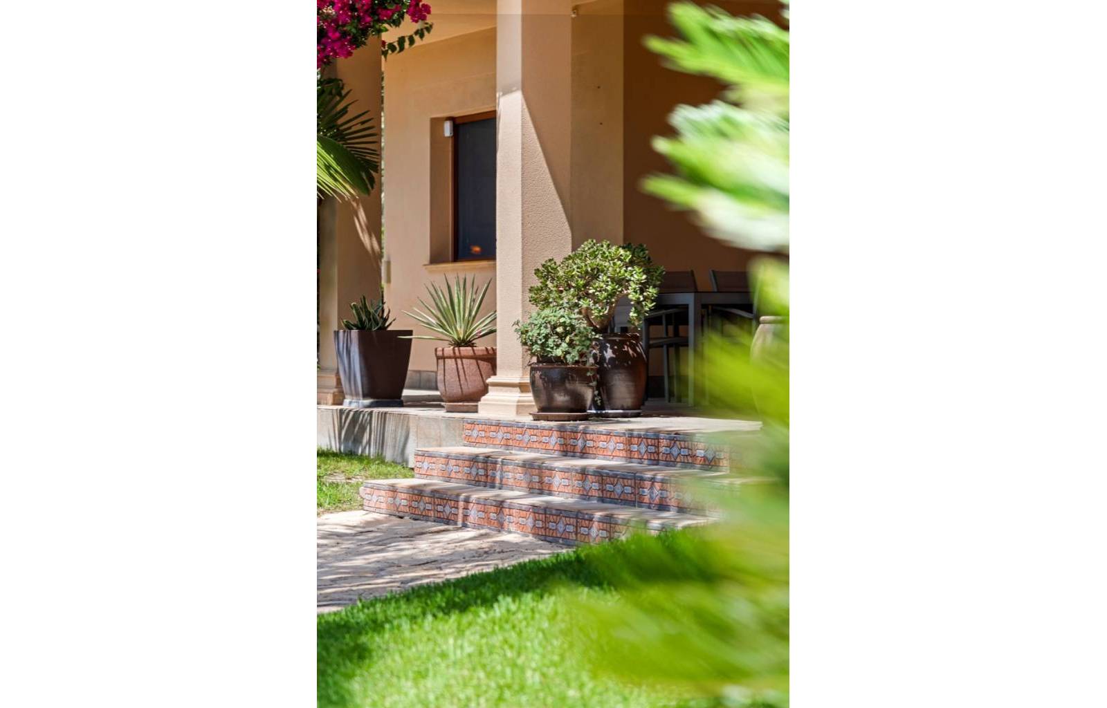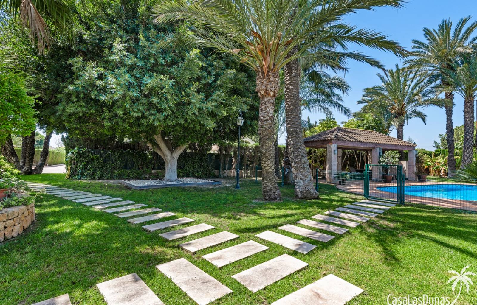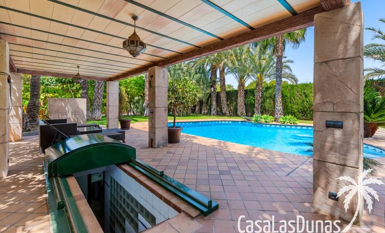 De woning heeft ruime en goed onderhouden buitenruimtes.Voor de ingang vindt u een groot overdekt terras met veel schaduw, ideaal voor warme zomerdagen.De tuin is mooi aangelegd en hier vindt u ook een volledig uitgeruste buitenkeuken.