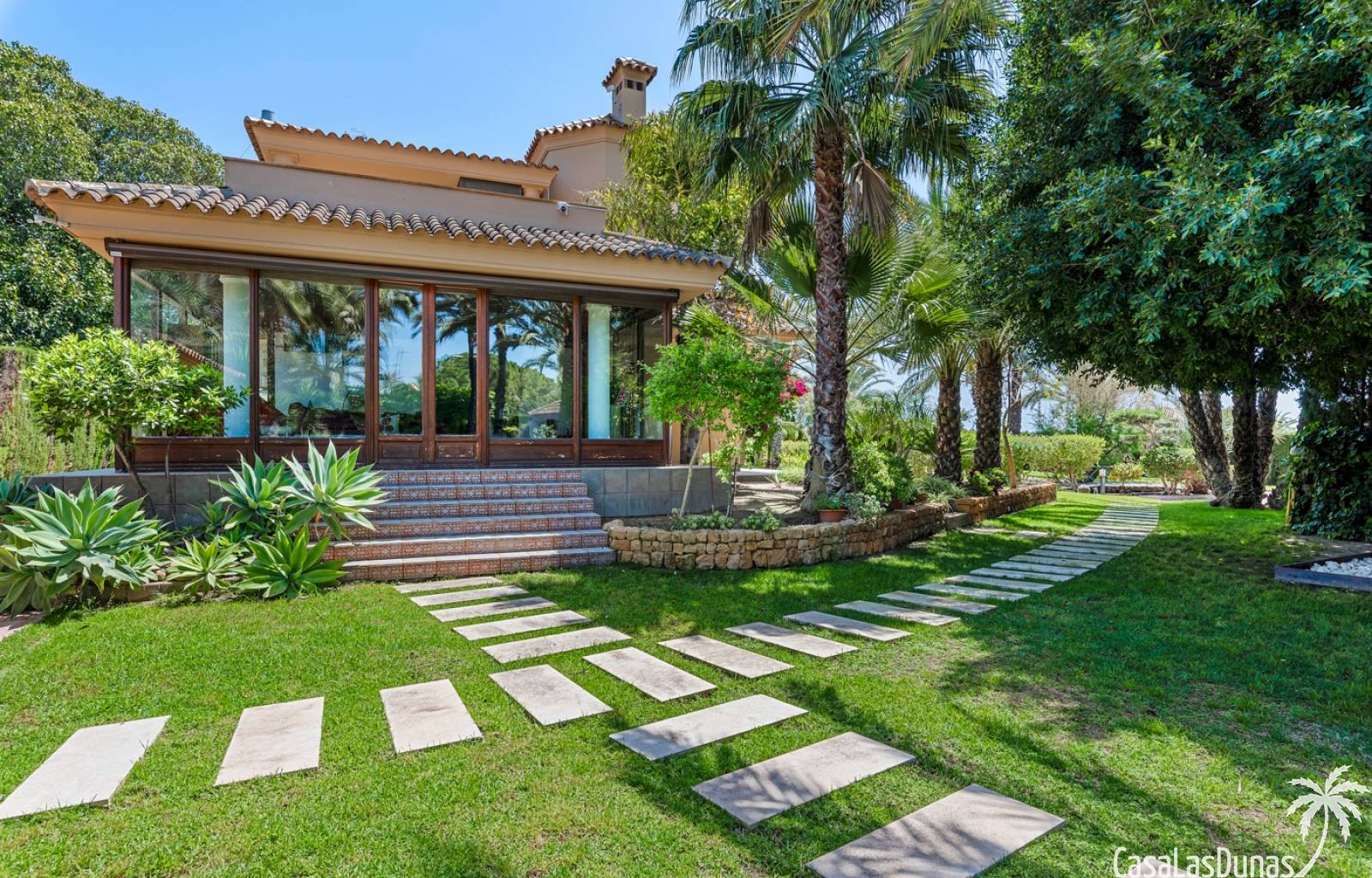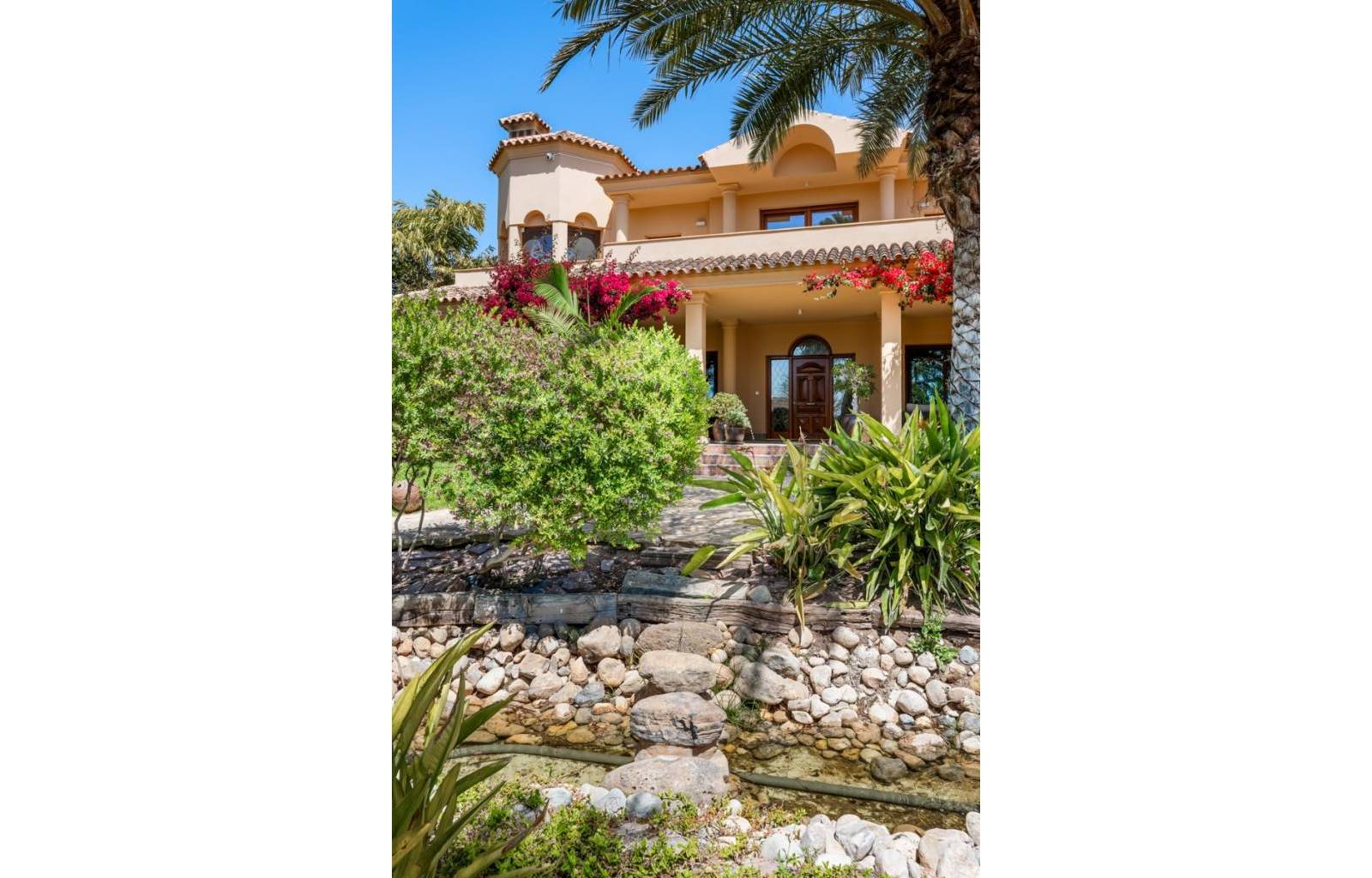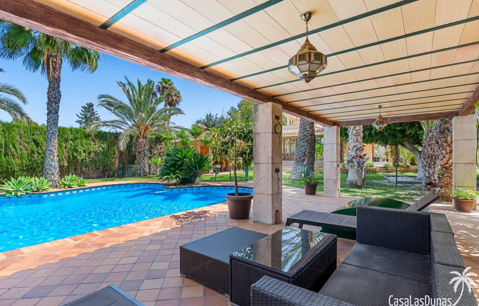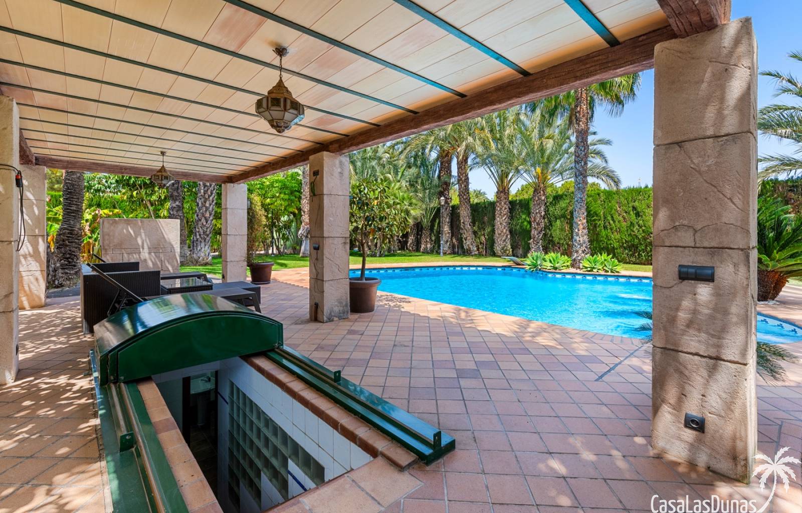 De woning heeft ruime en goed onderhouden buitenruimtes.Voor de ingang vindt u een groot overdekt terras met veel schaduw, ideaal voor warme zomerdagen.De tuin is mooi aangelegd en hier vindt u ook een volledig uitgeruste buitenkeuken.