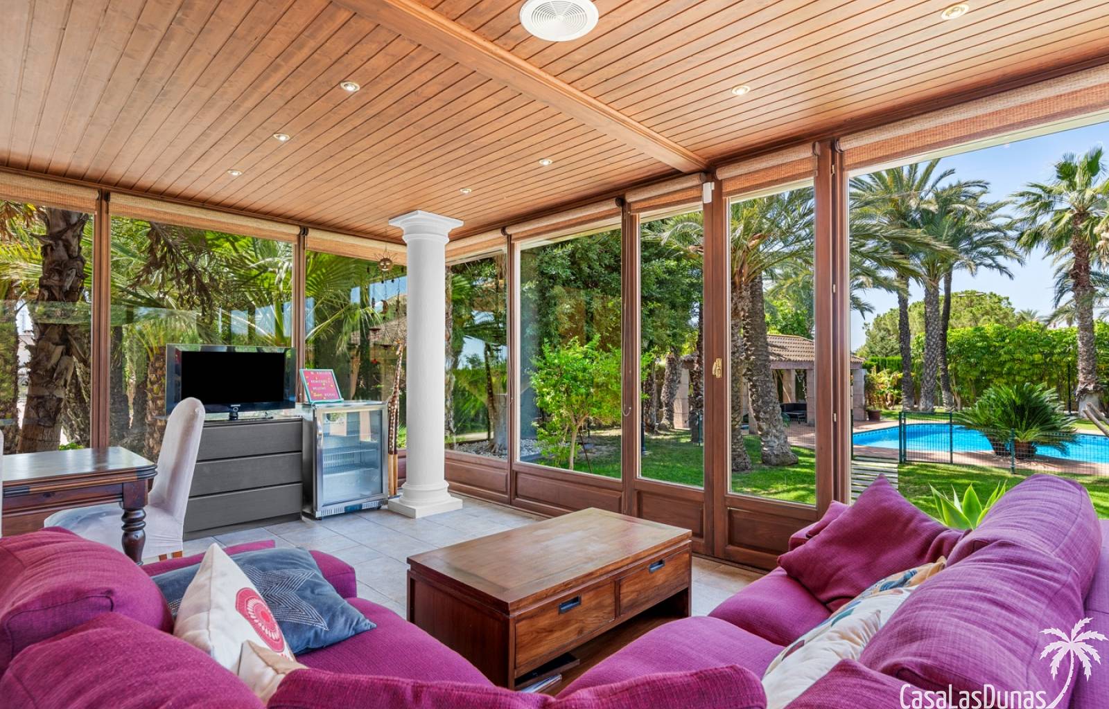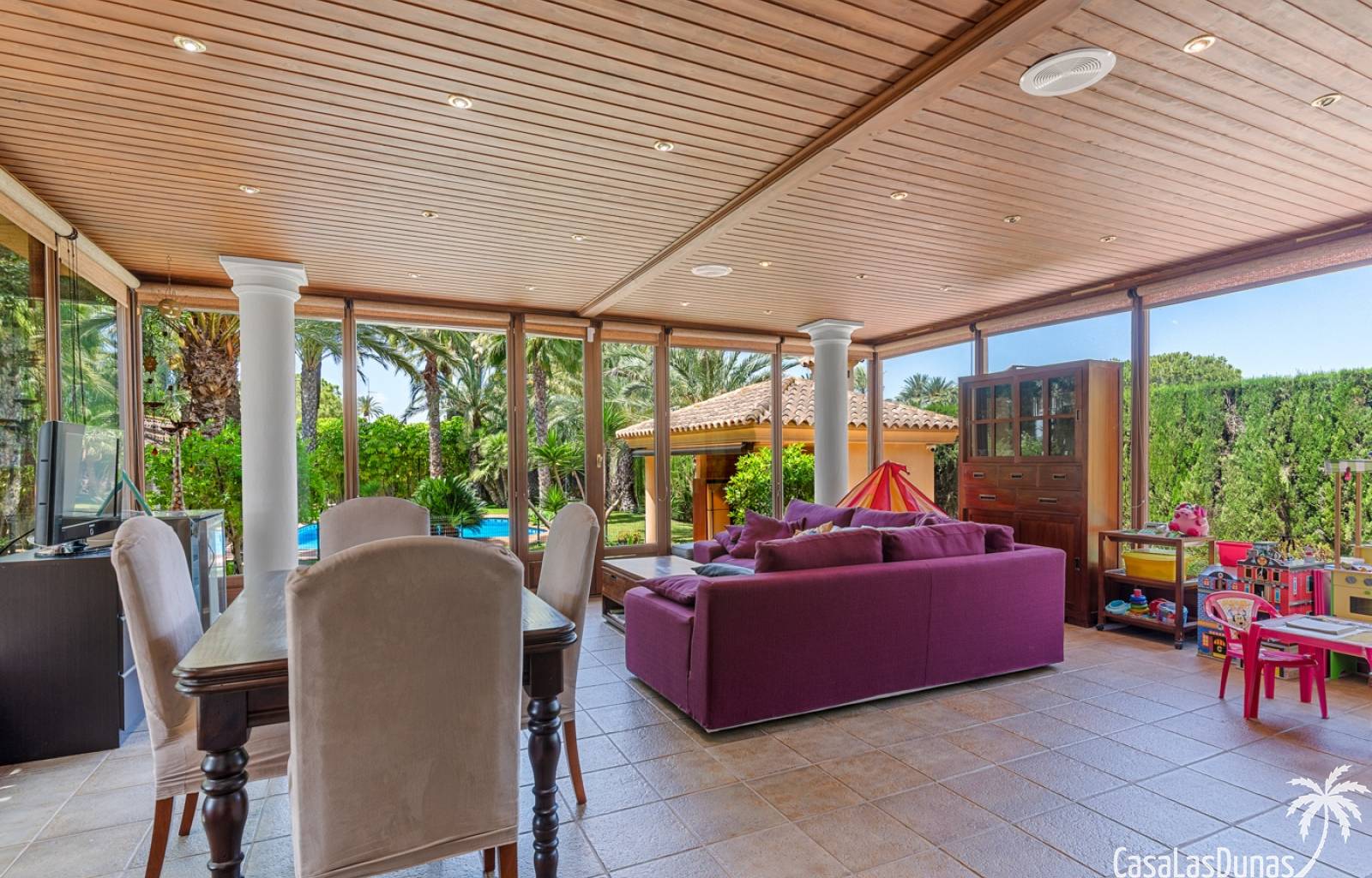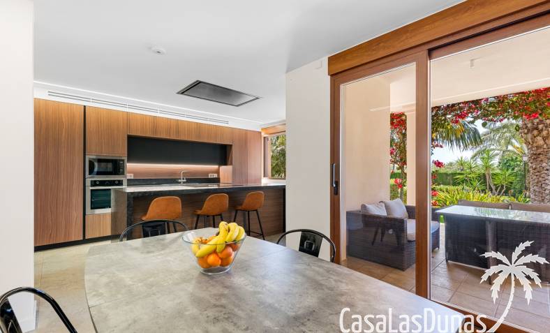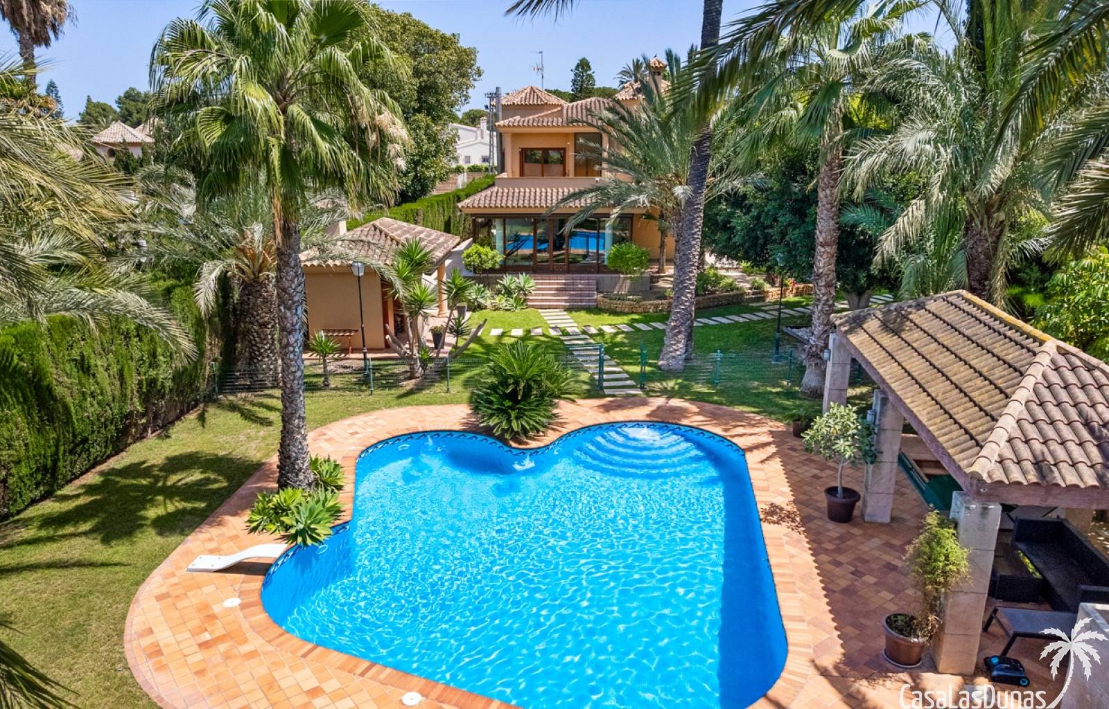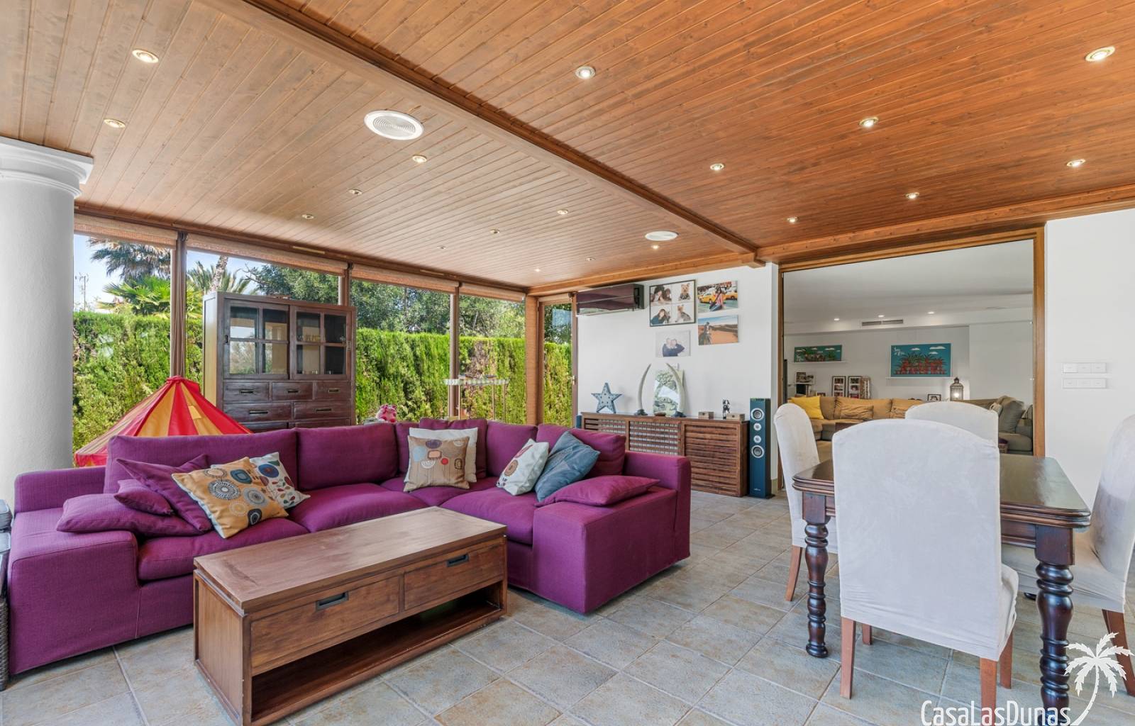 De woning heeft ruime en goed onderhouden buitenruimtes.Voor de ingang vindt u een groot overdekt terras met veel schaduw, ideaal voor warme zomerdagen.De tuin is mooi aangelegd en hier vindt u ook een volledig uitgeruste buitenkeuken.