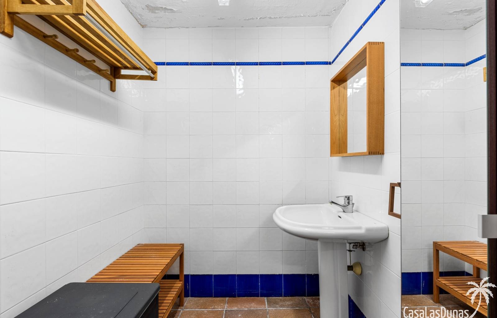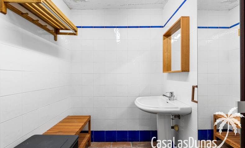 Bij het zwembad is er een slimme onderbouw met twee kleedkamers, een berging, een badkamer en een douche. Deze onderbouw is overdekt en bereikbaar via een trap.