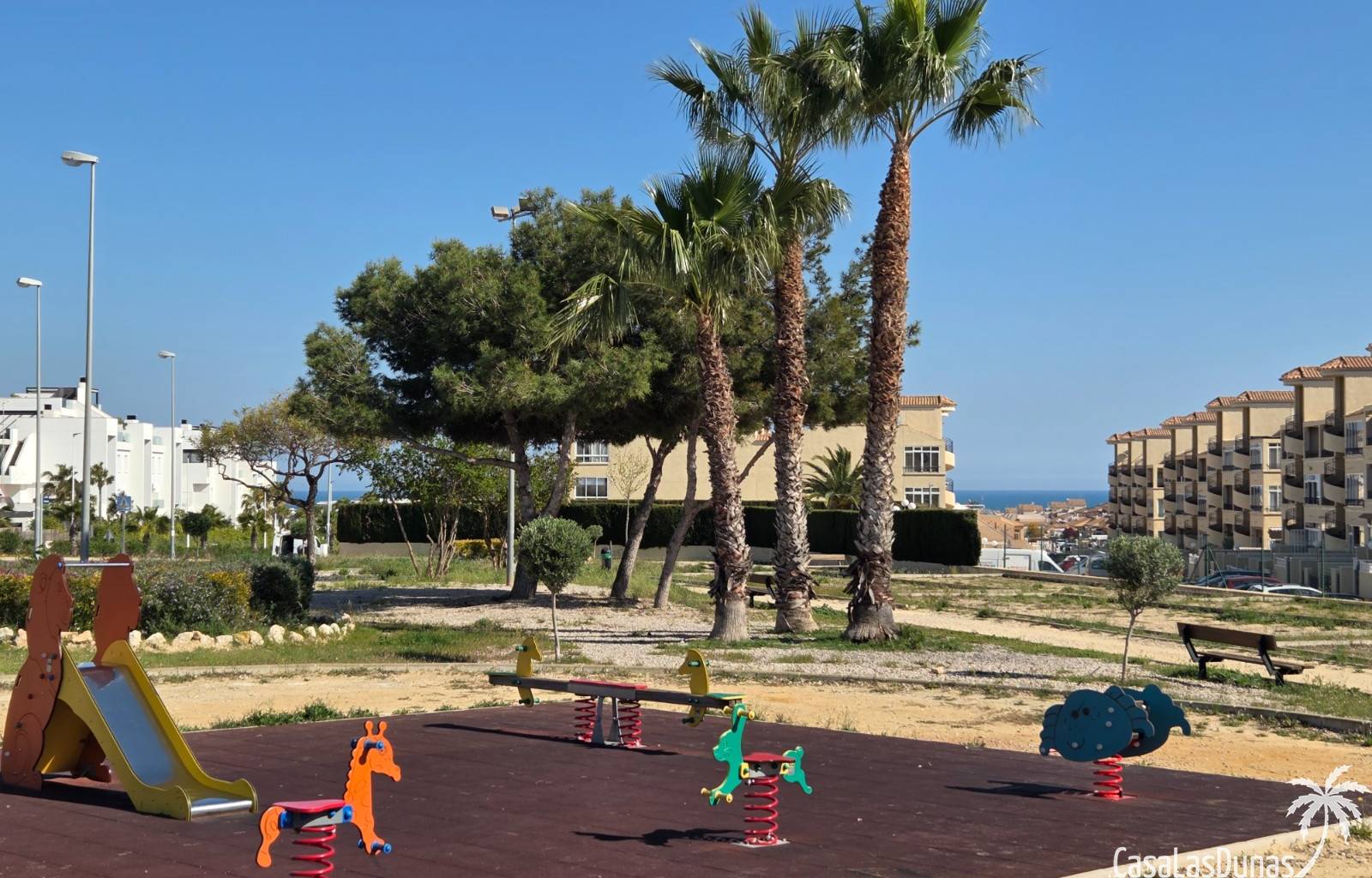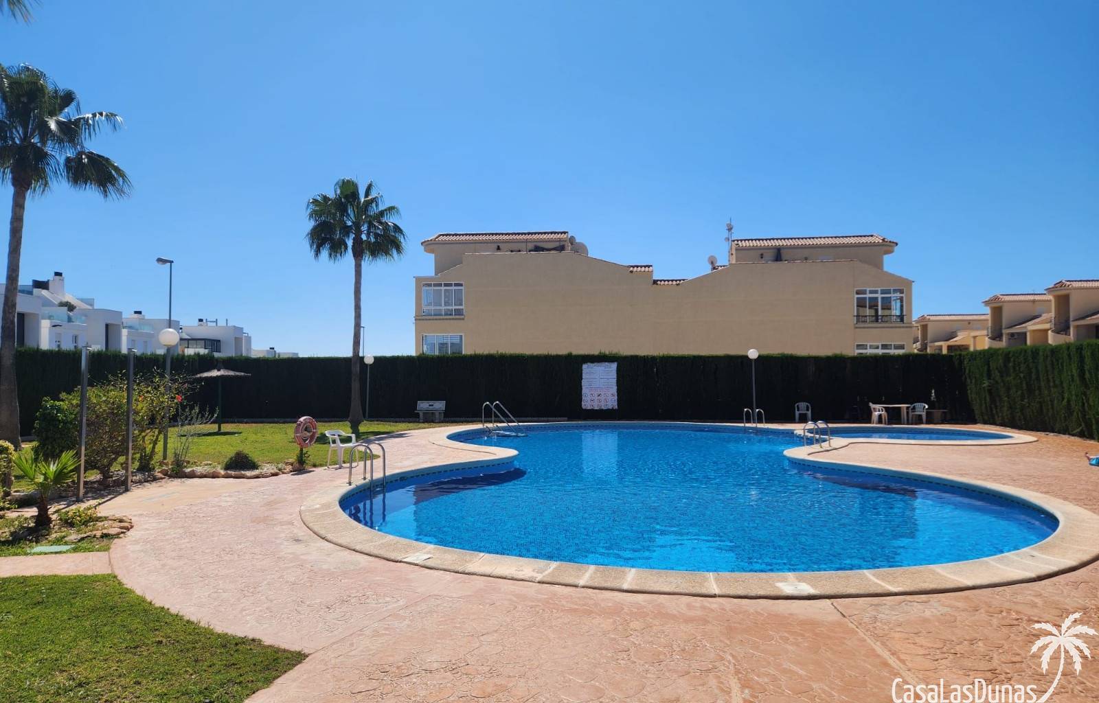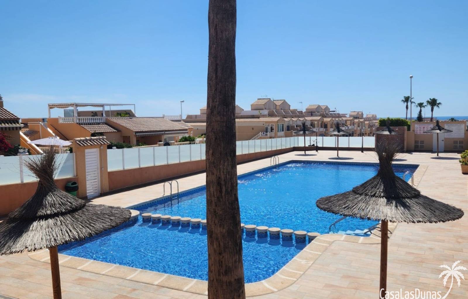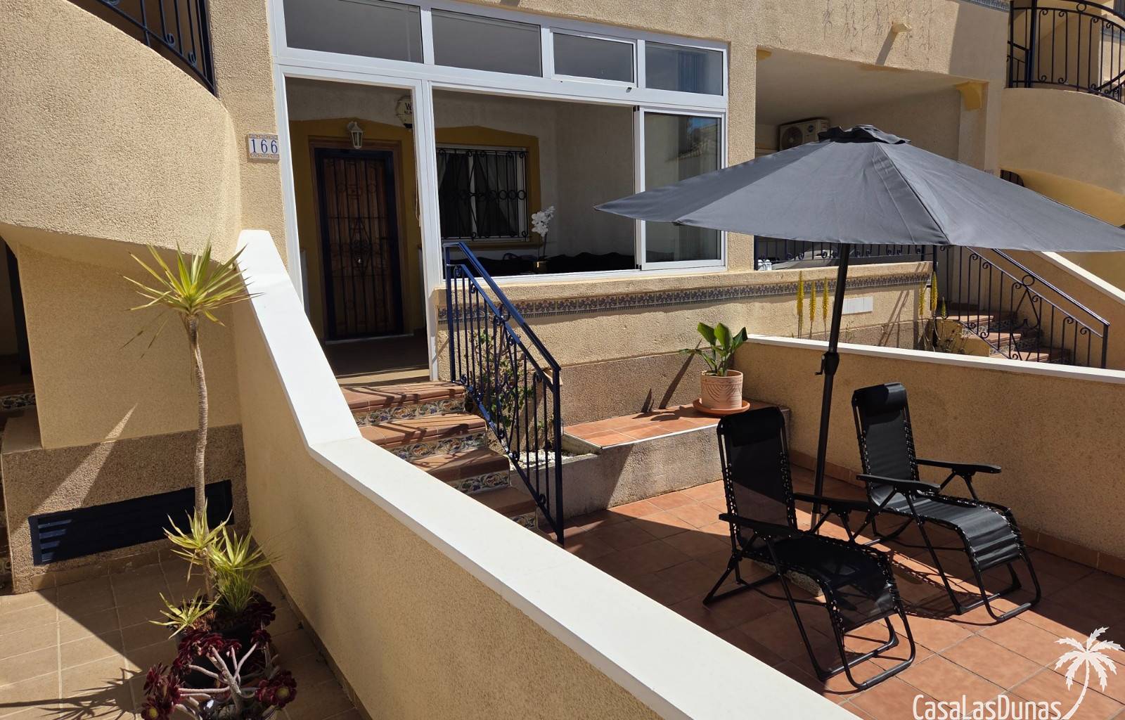 Op de zuidwestelijk gelegen patio in een rustige straat, met uitzicht op de zee, voelt en ruikt u meteen de Spaanse sfeer. De veranda biedt zowel voor de zomer als voor de winter een heerlijke plek om te ontspannen. Als groot pluspunt biedt het vakantiecomplex twee gezamenlijke zwembaden, inclusief een kinderbad. Kortom, heerlijk voor jong en oud om af te koelen in het zwembad! Voor de kleintjes is er in de buurt een kinderspeeltuin.
