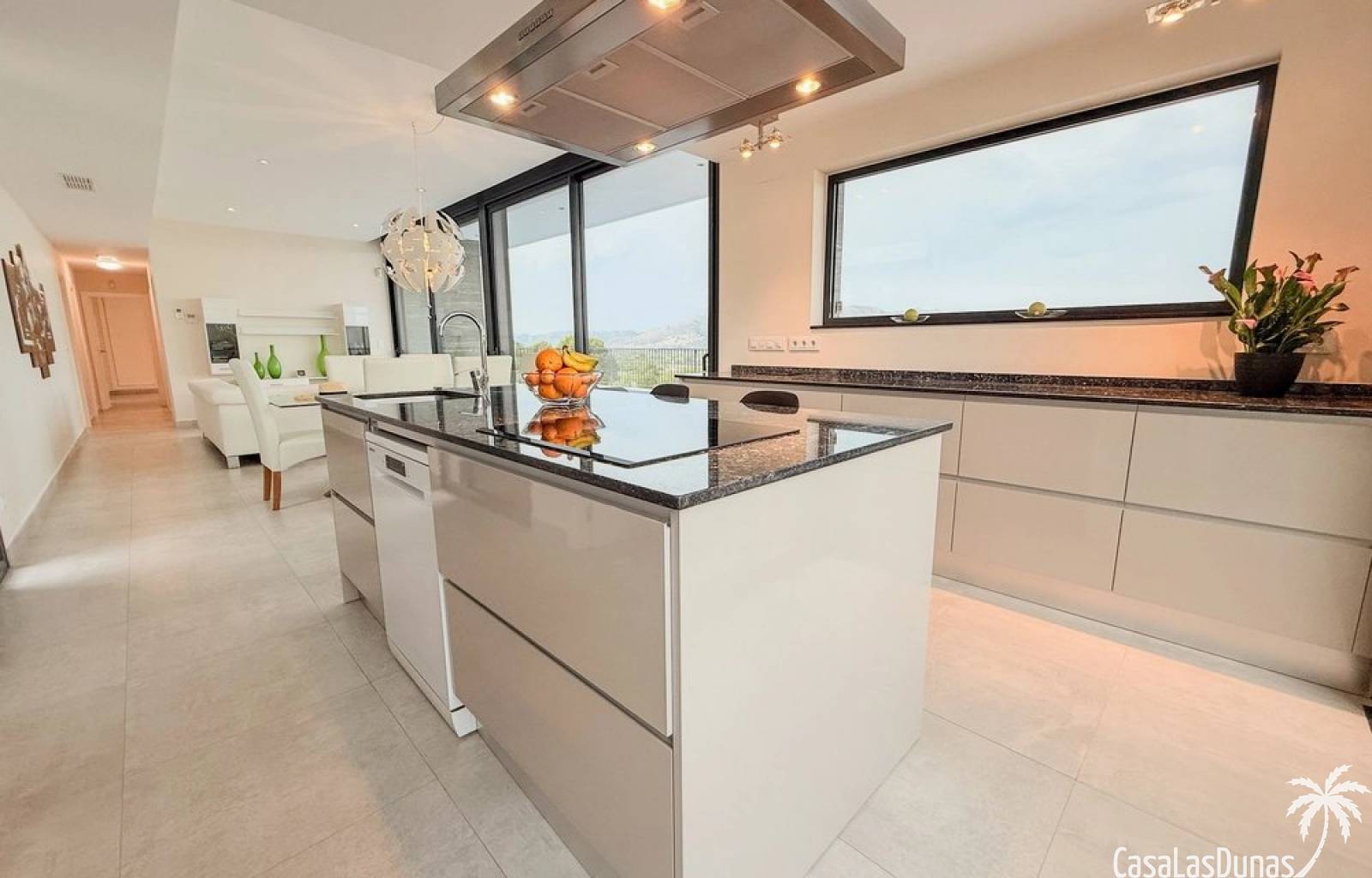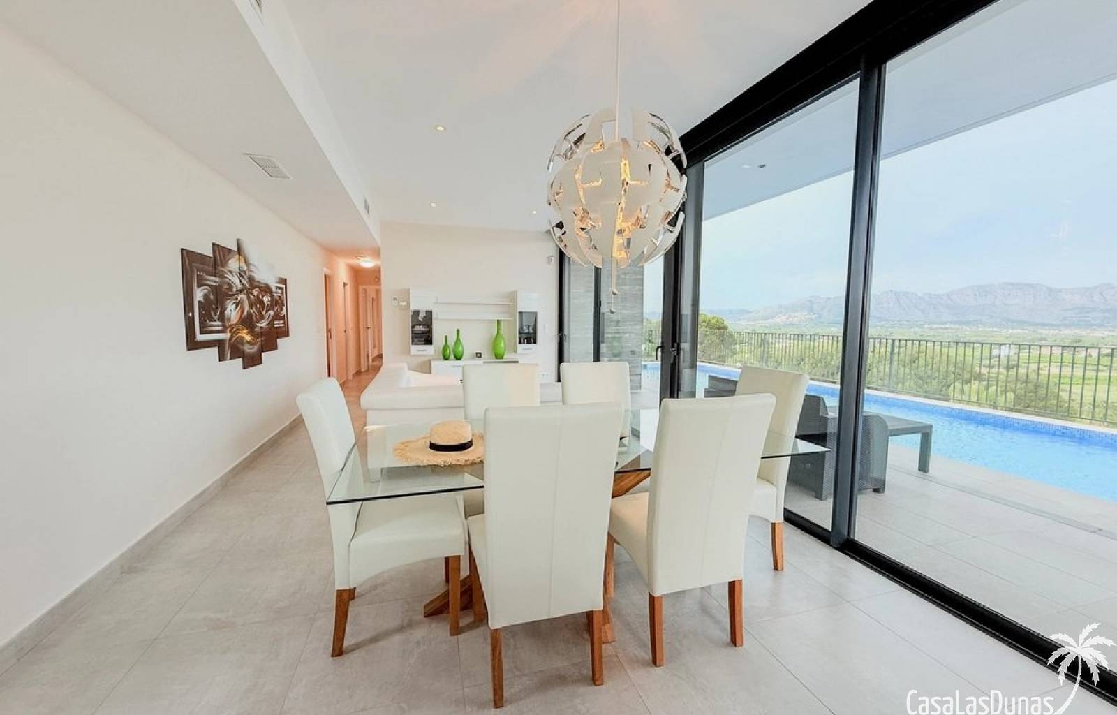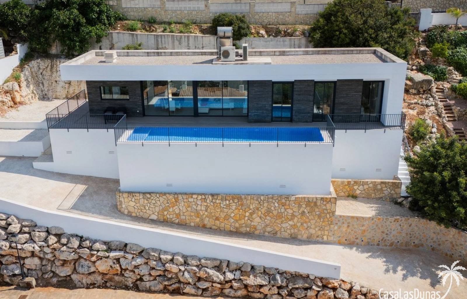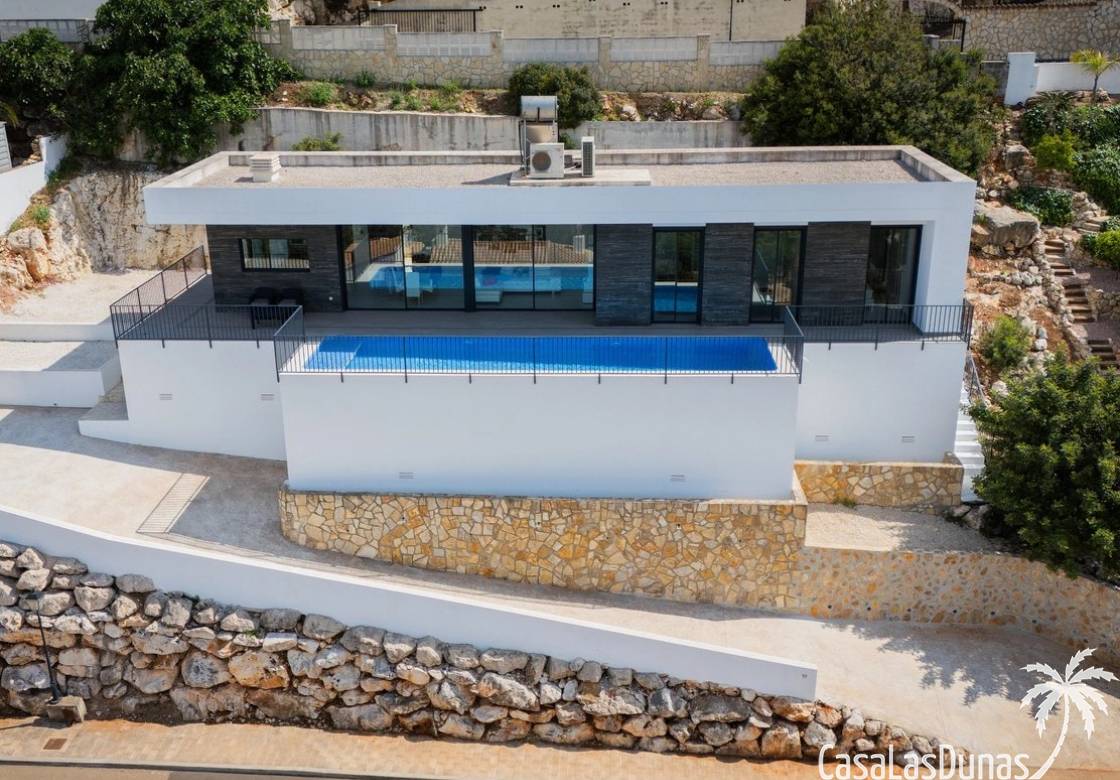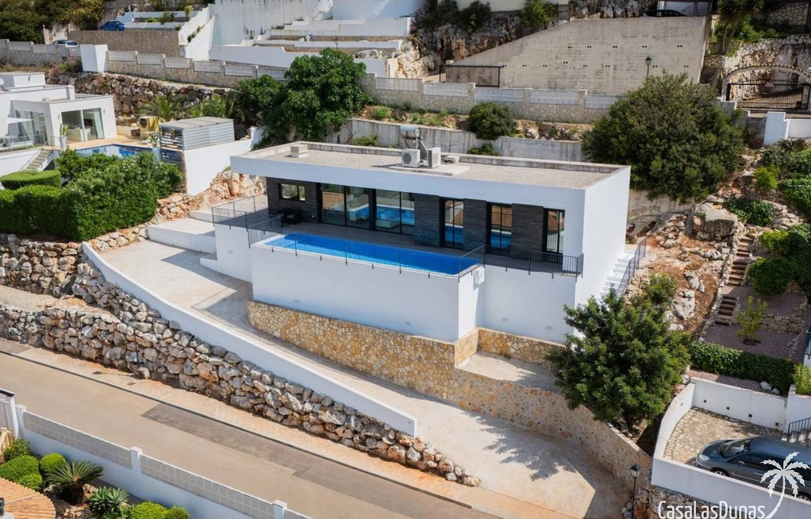 Deze moderne gelijkvloerse 3 slaapkamer villa met prachtig uitzicht op zee is gebouwd in 2023 in een populaire woonwijk van Pedreguer op 15 autominuten van de badplaatsen Denia en Javea. Er is een oprit met voldoende parkeergelegenheid en de villa zelf beschikt over een ruime woon/eetkamer open keuken en glazen deuren van vloer tot plafond die toegang bieden tot het zwembadterras met prachtig uitzicht over de vallei richting de kustlijn van Denia. De hoogwaardige luxe keuken in zachte, natuurlijke tinten integreert naadloos in de woonkamer. Elke slaapkamer is voorzien van royale inbouwkasten, terwijl de master suite een en-suite badkamer heeft. Comfort staat voorop: vloerverwarming, airconditioning (warm en koud) en individuele thermostaten in elke kamer zorgen voor een nauwkeurige klimaatregeling. De tuin is onderhoudsarm en beschikt over een prachtig zwembad van 3x11m. De woning profiteert ook van ledverlichting met dimmers, veiligheidsdeuren, pre-installatie voor zonnepanelen en hoogwaardige materialen.