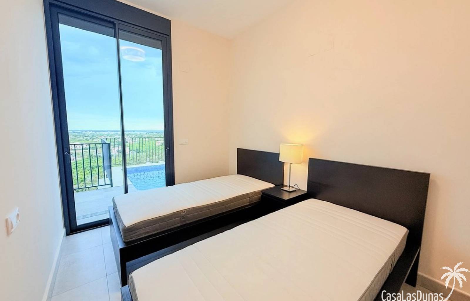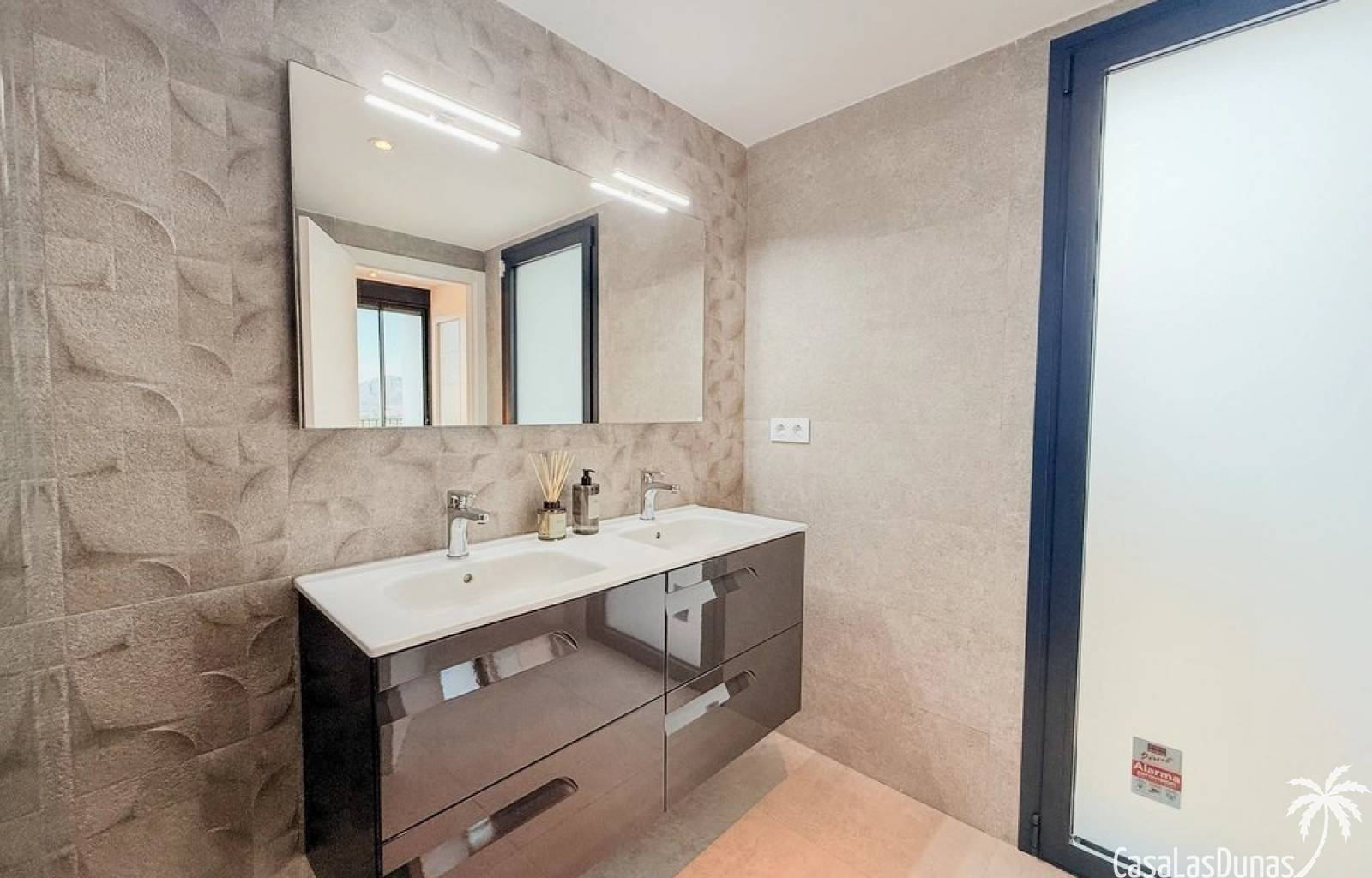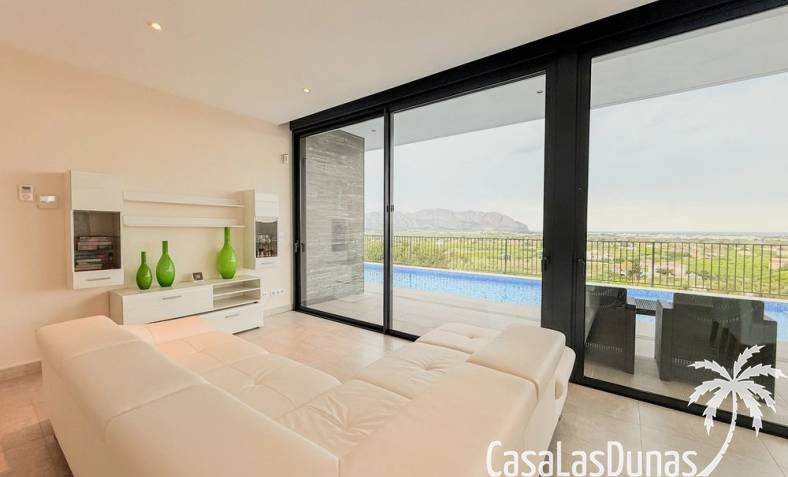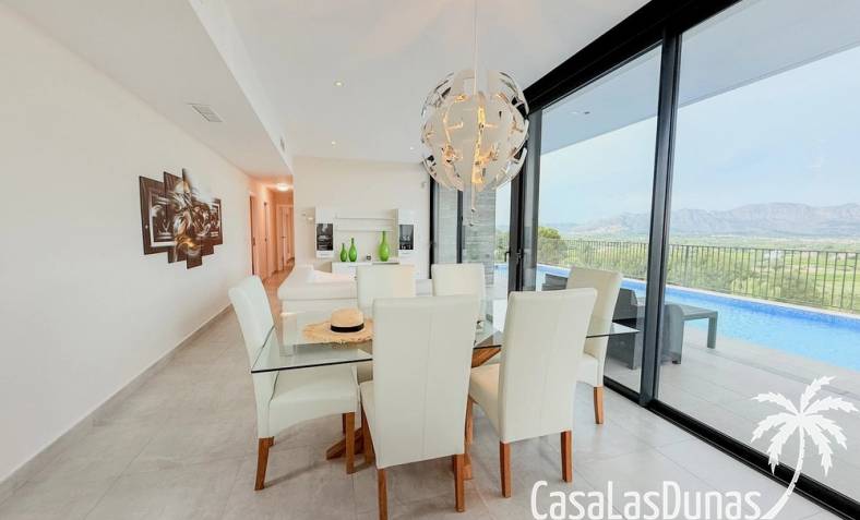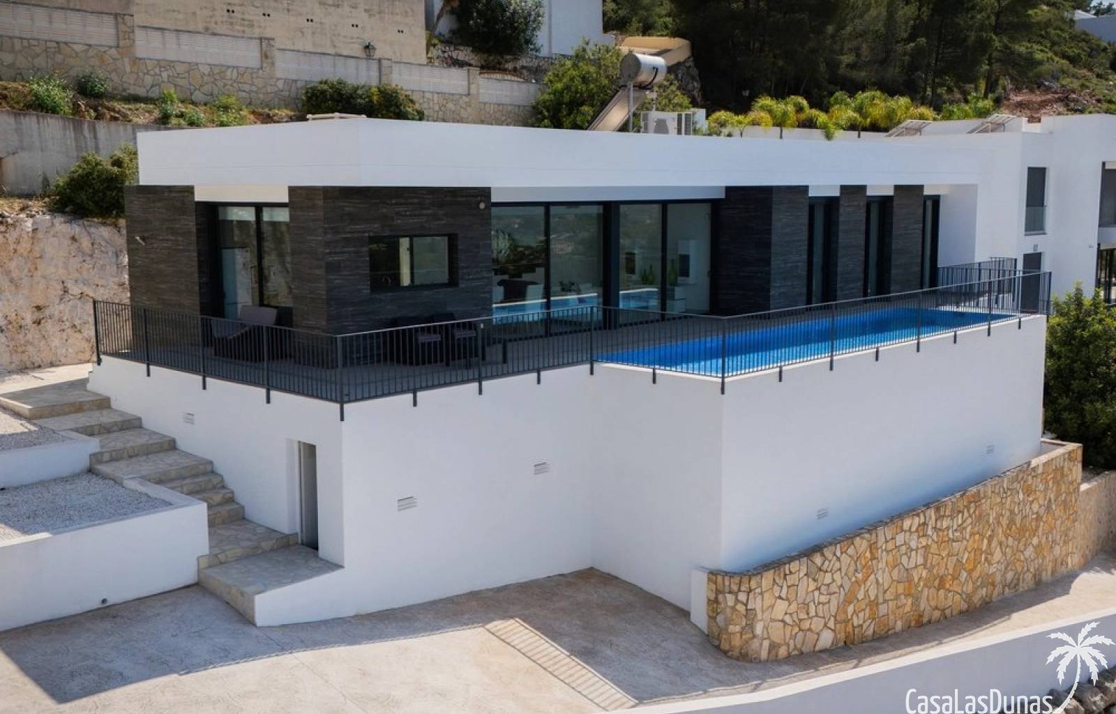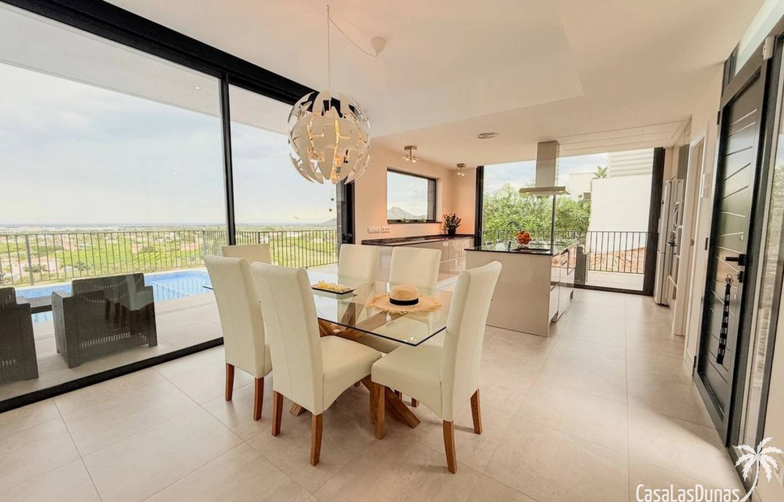Deze moderne gelijkvloerse 3 slaapkamer villa met prachtig uitzicht op zee is gebouwd in 2023 in een populaire woonwijk van Pedreguer op 15 autominuten van de badplaatsen Denia en Javea. Er is een oprit met voldoende parkeergelegenheid en de villa zelf beschikt over een ruime woon/eetkamer open keuken en glazen deuren van vloer tot plafond die toegang bieden tot het zwembadterras met prachtig uitzicht over de vallei richting de kustlijn van Denia. De hoogwaardige luxe keuken in zachte, natuurlijke tinten integreert naadloos in de woonkamer. Elke slaapkamer is voorzien van royale inbouwkasten, terwijl de master suite een en-suite badkamer heeft. Comfort staat voorop: vloerverwarming, airconditioning (warm en koud) en individuele thermostaten in elke kamer zorgen voor een nauwkeurige klimaatregeling. De tuin is onderhoudsarm en beschikt over een prachtig zwembad van 3x11m. De woning profiteert ook van ledverlichting met dimmers, veiligheidsdeuren, pre-installatie voor zonnepanelen en hoogwaardige materialen.