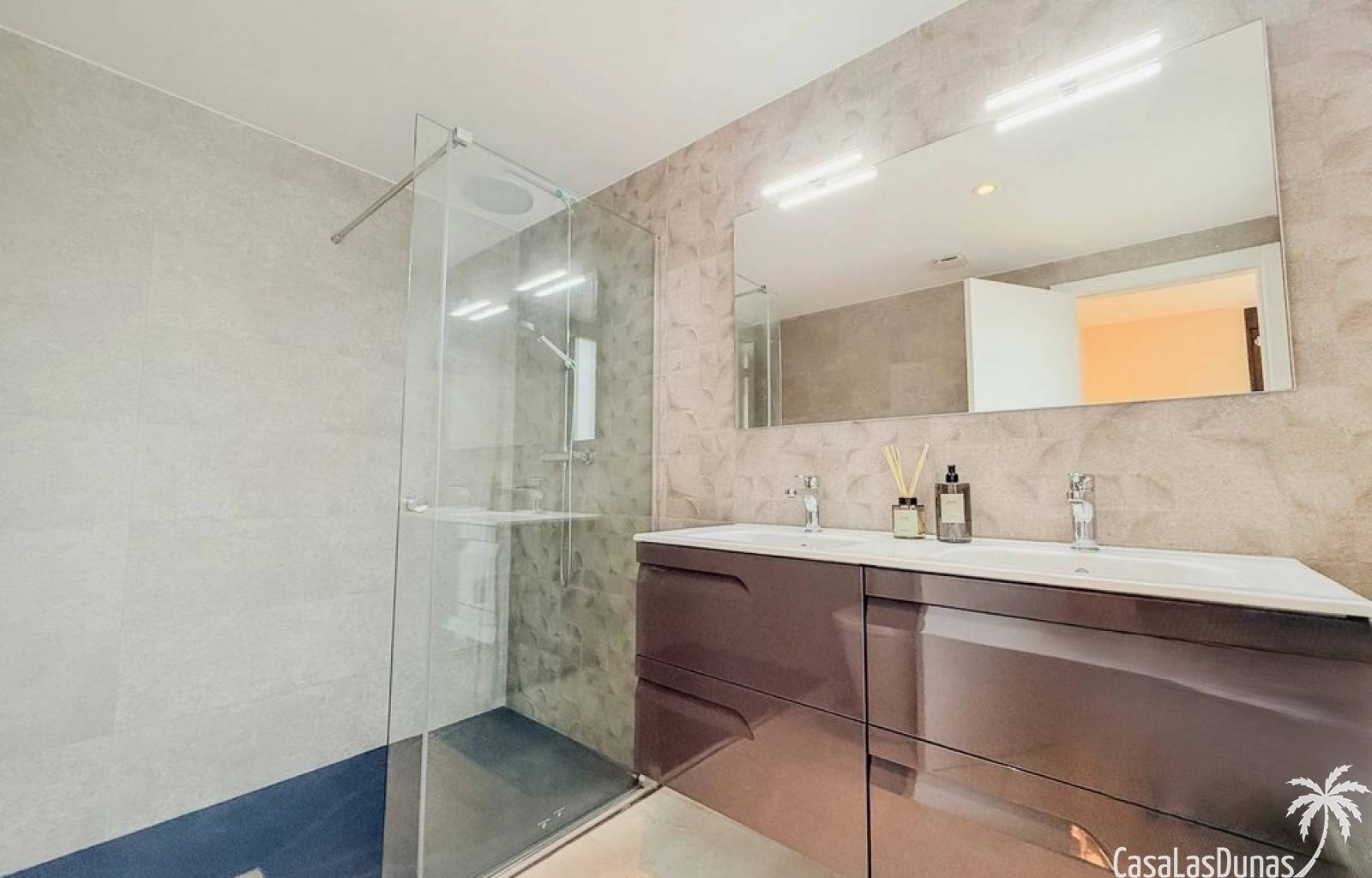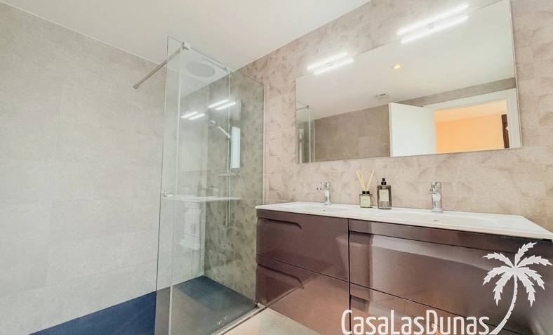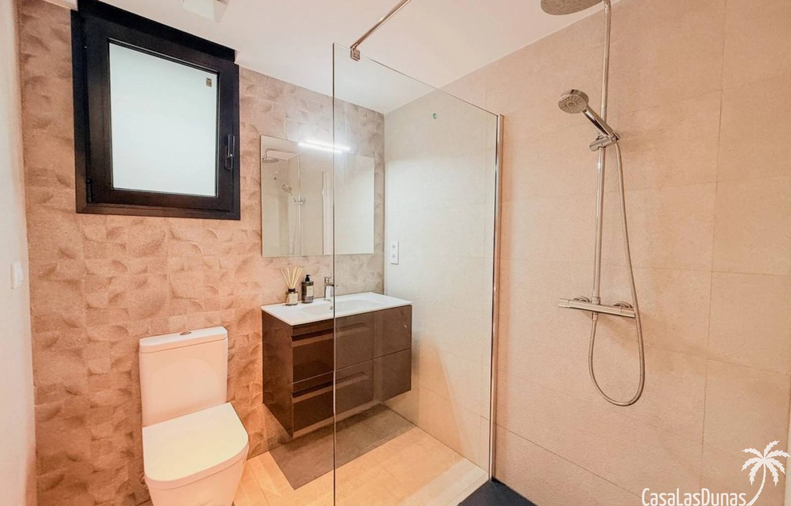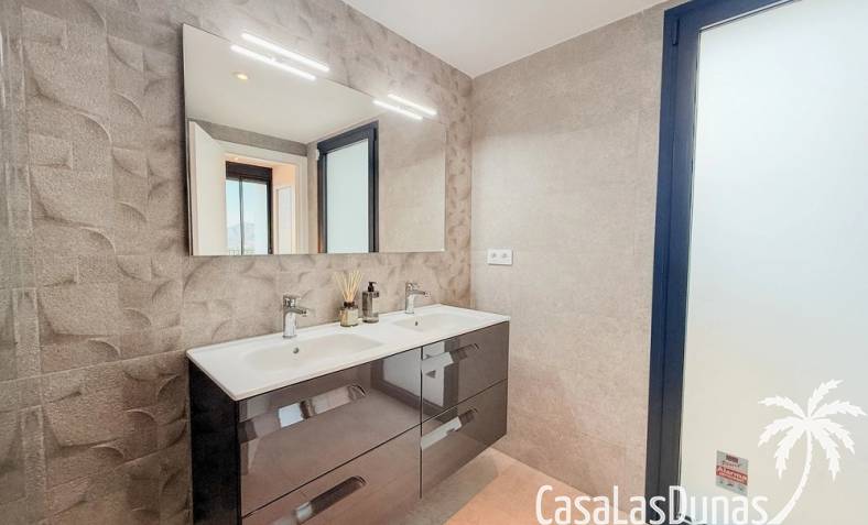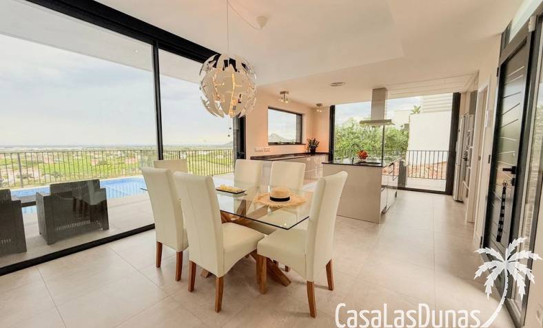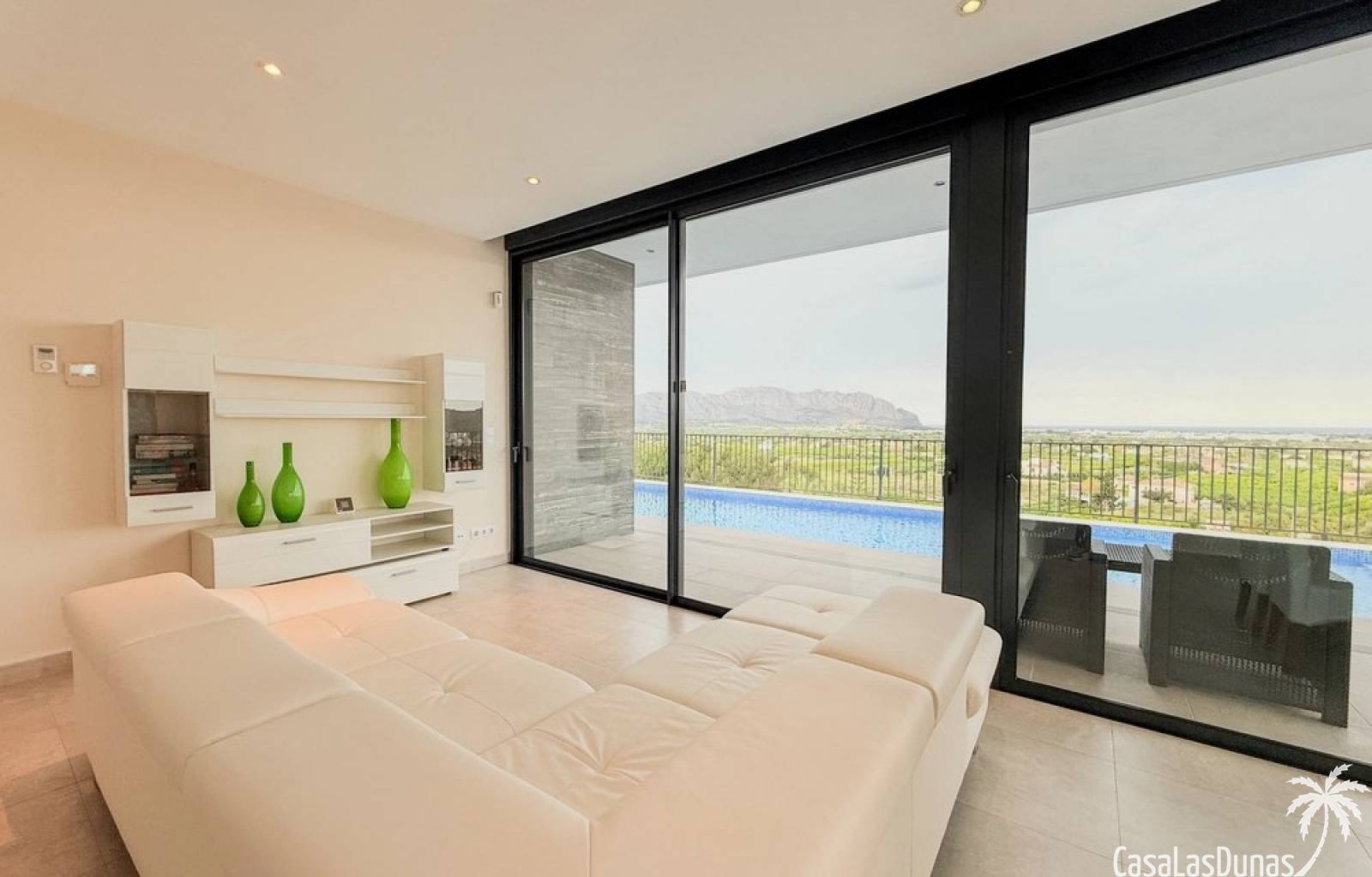 Deze moderne gelijkvloerse 3 slaapkamer villa met prachtig uitzicht op zee is gebouwd in 2023 in een populaire woonwijk van Pedreguer op 15 autominuten van de badplaatsen Denia en Javea. Er is een oprit met voldoende parkeergelegenheid en de villa zelf beschikt over een ruime woon/eetkamer open keuken en glazen deuren van vloer tot plafond die toegang bieden tot het zwembadterras met prachtig uitzicht over de vallei richting de kustlijn van Denia. De hoogwaardige luxe keuken in zachte, natuurlijke tinten integreert naadloos in de woonkamer. Elke slaapkamer is voorzien van royale inbouwkasten, terwijl de master suite een en-suite badkamer heeft. Comfort staat voorop: vloerverwarming, airconditioning (warm en koud) en individuele thermostaten in elke kamer zorgen voor een nauwkeurige klimaatregeling. De tuin is onderhoudsarm en beschikt over een prachtig zwembad van 3x11m. De woning profiteert ook van ledverlichting met dimmers, veiligheidsdeuren, pre-installatie voor zonnepanelen en hoogwaardige materialen.