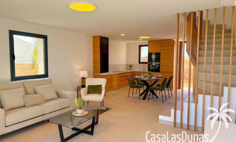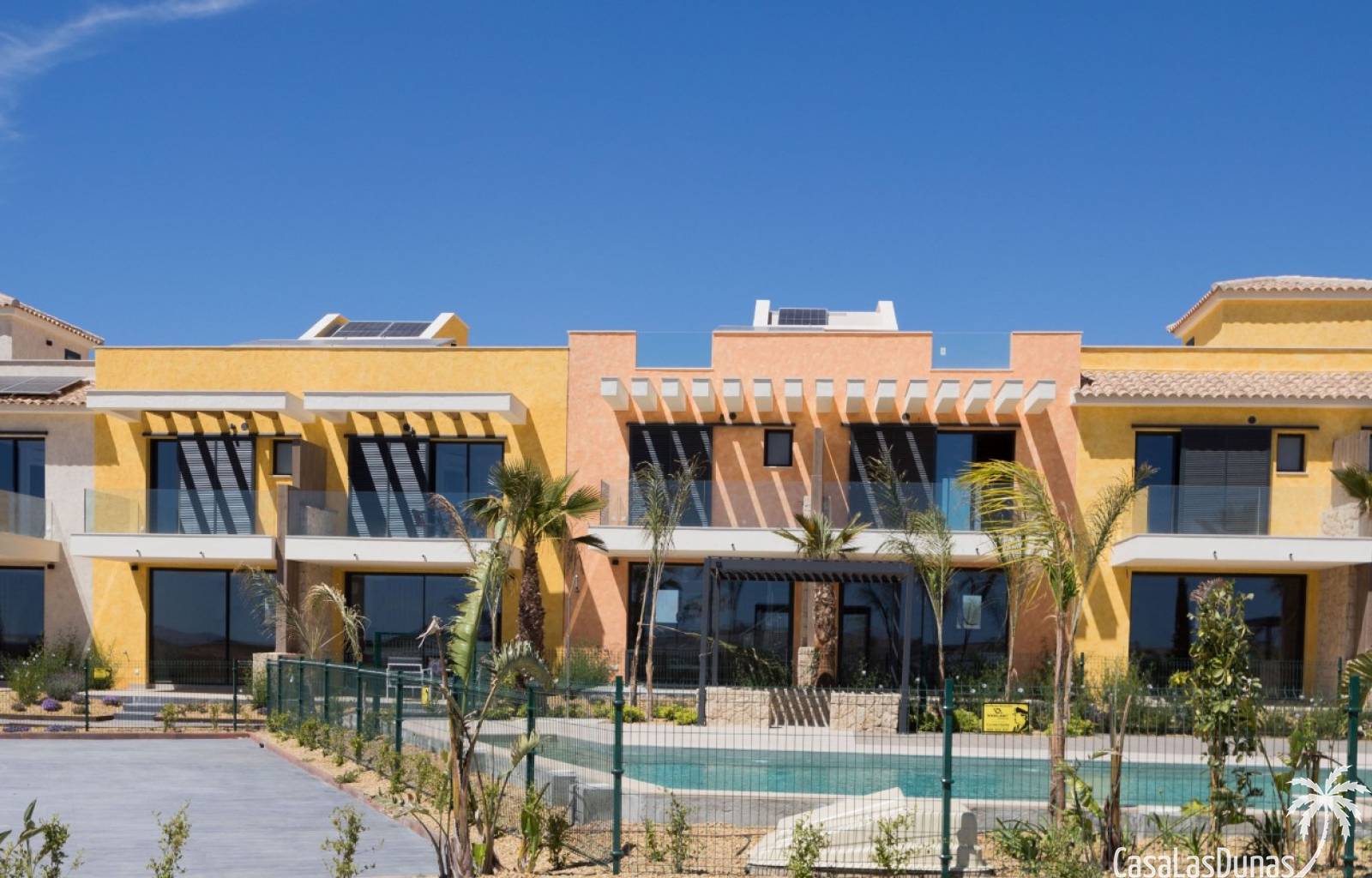 Deze beveiligde community biedt toegang tot gemeenschappelijke tuinen, een zwembad en een eigen parkeerplaats, waardoor je kunt genieten van comfort en veiligheid. De huizen beschikken over een royale leefruimte en een indrukwekkend dakterras, wat voldoende ruimte biedt om buiten te ontspannen.