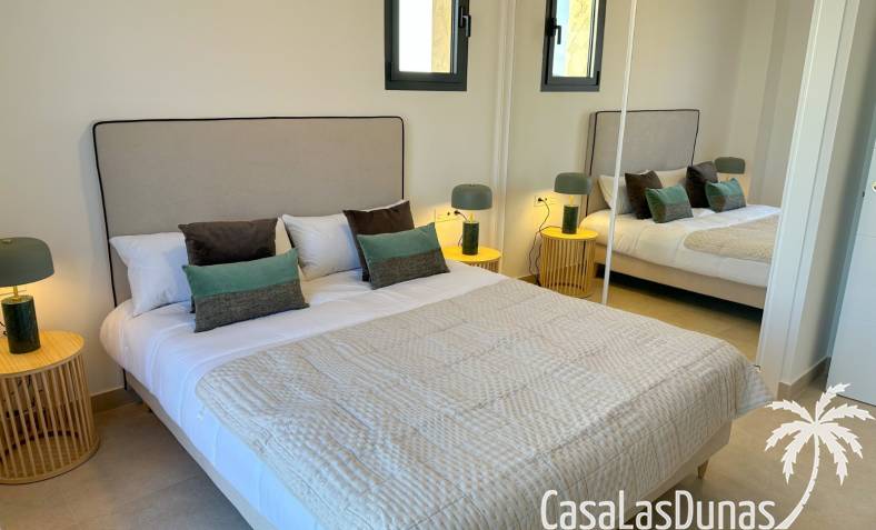 De woningen zijn gesitueerd rondom een privézwembad, omgeven door fraai aangelegde tuinen, en bieden schitterende uitzichten op het cricketveld, de omliggende bergen en de Middellandse Zee. Elke woning beschikt over lichte, eigentijdse interieurs die zijn ontworpen om maximaal natuurlijk licht binnen te laten en een stijlvolle, moderne leefruimte te bieden. De woning heeft twee ruime slaapkamers, beide met een eigen en-suite badkamer, een woon- en eetkamer die uitkomt op een veranda, en een privé dakterras dat ideaal is om te ontspannen en te genieten van het panoramische uitzicht.