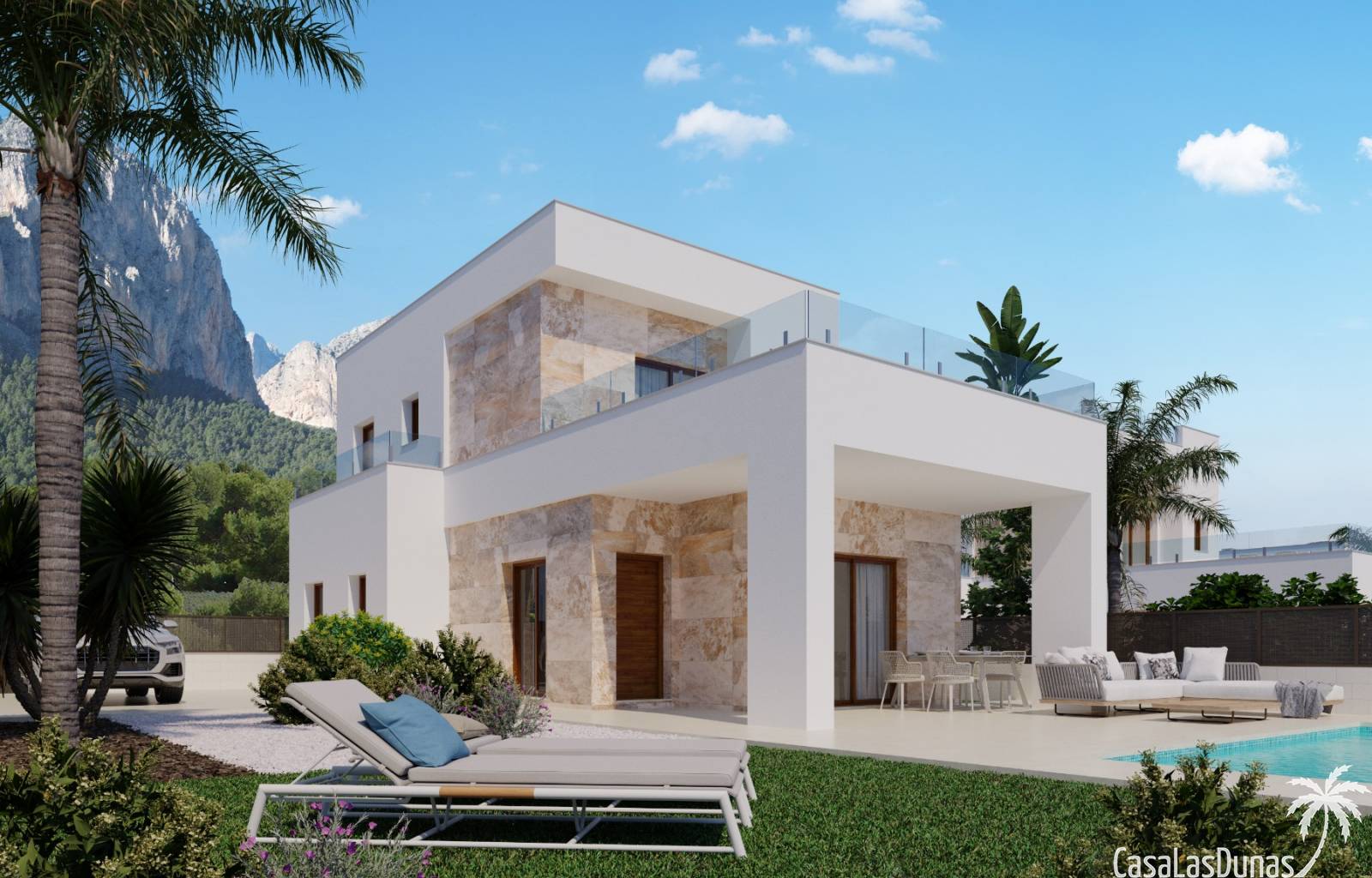 Deze vrijstaande villa´s in Polop aan de Costa Blanca Noord beschikken over 3 slaapkamers, 3 badkamers, een privézwembad en parkeergelegenheid op eigen perceel. De woning maakt deel uit van een exclusief project van 36 villa’s met panoramisch uitzicht op zee en de bergen, met keuze uit een gelijkvloers model of een woning met twee verdiepingen, op percelen van 351 tot 500 m². In de prijs zijn onder andere pre-installatie voor airconditioning, elektrische rolluiken en zonnepanelen standaard inbegrepen. Gelegen op slechts 20 minuten van de stranden van Altea en Albir en op 50 minuten van de luchthaven Alicante-Elche, biedt Polop een authentieke Spaanse sfeer met de nabijheid van Benidorm en Alicante, waar een uitgebreid aanbod aan voorzieningen en entertainment beschikbaar is. De omgeving is ideaal voor liefhebbers van natuur, golf en outdooractiviteiten.