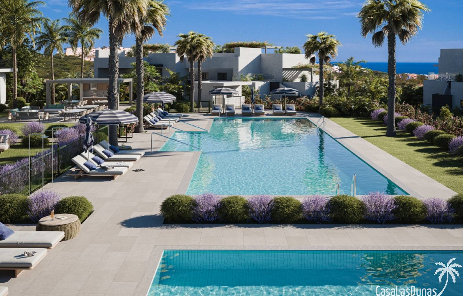 Dit exclusieve wooncomplex met 99 appartementen bestaat uit twee en drie slaapkamers, verdeeld over begane gronden met ruime tuinen en penthouses met grote solariums, die zich aanpassen aan de verschillende levensfasen van degenen die willen genieten van de authentieke mediterrane levensstijl. De keuken en woonkamer zijn geïntegreerd in een open ruimte om het maximale uit uw woning te halen. Zo kunt u veelzijdige en flexibele ruimtes creëren waar u en uw dierbaren optimaal van kunnen genieten. De Italiaanse keuken, volledig uitgerust met hoogwaardige meubels en apparatuur, combineert functionaliteit en elegantie van het huis. De woonkamer opent zich naar buiten via grote ramen die het omliggende landschap omlijsten, waardoor natuurlijk licht en uitzicht op zee worden geïntegreerd in het interieurontwerp, wat het gevoel van welzijn versterkt. Geniet volop van het buitenleven met twee zwembaden, één voor volwassenen en één voor kinderen, omgeven door zorgvuldig ontworpen tuinen. Gym, sauna, co-working ruimte met keuken en een golfsimulator. De ervaring wordt compleet gemaakt door een gezellige chill-outruimte met een barbecueplek, ideaal om te ontspannen of gezellig samen te zijn. Dankzij de lage bouwdichtheid wordt de privacy en rust van de bewoners gewaarborgd. Daarom is Casares Costa de plek waar u altijd het gevoel zult hebben dat alles perfect bij elkaar past.