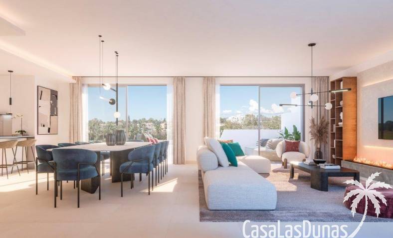Dit architectonische complex bestaat uit 34 appartementen en penthouses met 2, 3 en 4 slaapkamers en ligt direct aan een golfbaan. Met prachtige zonsondergangen vanaf de ruime terrassen is het een waar paradijs voor golfers. Elk appartement biedt het comfort en de elegantie van de grote ramen, die open en lichte ruimtes combineren met een verscheidenheid aan decoratieve opties. Dit stelt u in staat om te ontspannen in een van de meest bevoorrechte omgevingen ter wereld. De keukens zijn volledig uitgerust met hoogwaardige Siemens- of vergelijkbare apparatuur, massief aanrechtbladen en elegante roestvrijstalen kranen. Gemeenschappelijke ruimtes omvatten een zwembad, een fitnessruimte, een coworkingruimte en zorgvuldig onderhouden tuinen met automatische irrigatiesystemen. Dit volledig beveiligde complex beschikt over vooraf geïnstalleerde beveiligingscamera's en is toegankelijk voor alle bewoners. Alles gelegen in een uitzonderlijk natuurlijk landschap. De ideale optie voor wie op zoek is naar kwaliteit en exclusiviteit. Deze luxe woonwijk is gelegen in Guadalmina, Marbella, een van de meest spectaculaire hoeken van de Costa del Sol, vlakbij San Pedro de Alcántara en Puerto Banús.