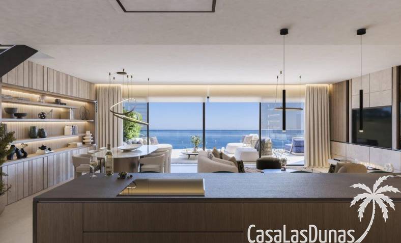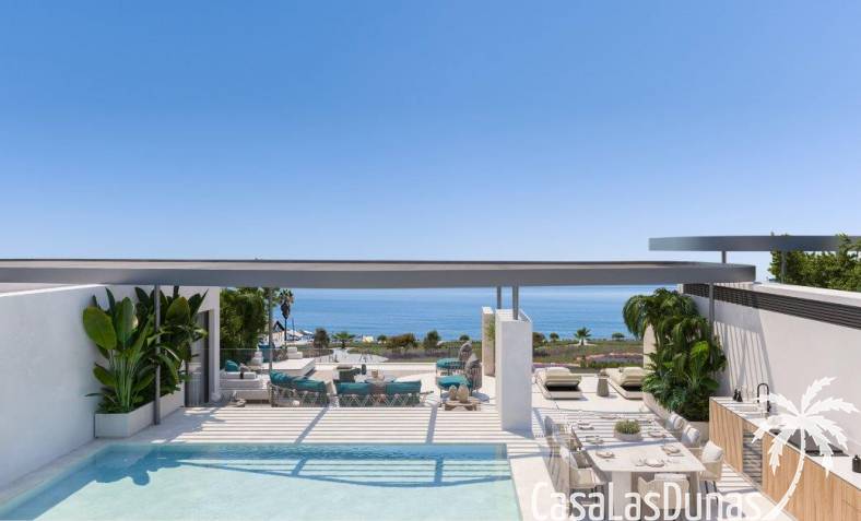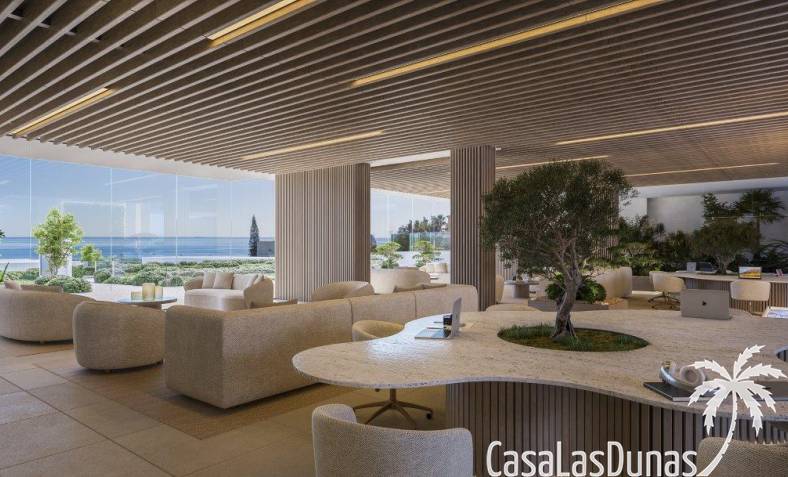 Deze exclusieve ontwikkeling, gelegen aan het strand van Manilva, biedt 66 appartementen met ruime appartementen met twee en drie slaapkamers en begane grondappartementen, evenals penthouses met drie en vier slaapkamers, allemaal met grote terrassen en een panoramisch uitzicht op de Middellandse Zee. Op het complex zijn er ook vijf luxe villa's met ruime woonruimtes, privétuinen en zwembaden die dit vastgoedpareltje compleet maakt. Dit alles in een bevoorrechte omgeving op slechts 100 meter van het strand. Volledig ingerichte keuken met op maat gemaakte kasten, keuze uit diverse afwerkingen, met een gelakte aluminium handgreep en een gladde aluminium plint die past bij de gekozen kasten. LED-verlichting onder de bovenkasten. Porseleinen aanrechtblad, met keuze uit twee opties. Inductiekookplaat, multifunctionele oven, afzuigkap, inbouwmagnetron, inbouwkoelkast, ééngreepsmengkraan. Gemeubileerde wasruimte met een Siemens wasmachine/droger. Hoogwaardig of vergelijkbaar. Het complex beschikt ook over spectaculaire gemeenschappelijke ruimtes, waaronder weelderige tuinen, een infinity pool met zoutoplossing, waterbedden, loungeplekken, een kinderspeelplaats, yoga- en meditatieruimte, een fitnessruimte met uitzicht op zee en een moderne en efficiënte coworkingruimte. De spa uitgerust met Turks stoombad, sauna, sensorische douches, chromotherapiedouches en jacuzzi, garandeert ontspannende momenten, terwijl 24-uursbeveiliging en een conciërgeservice te allen tijde voor gemoedsrust zorgen, is hier een veilige plek om te wonen. De inwoners hebben golfbanen, restaurants, moderne winkelcentra, jachthavens, hotels, ziekenhuizen en scholen binnen handbereik. Een breed scala aan opties om te voldoen aan de hoge eisen van verschillende levensstijlen.