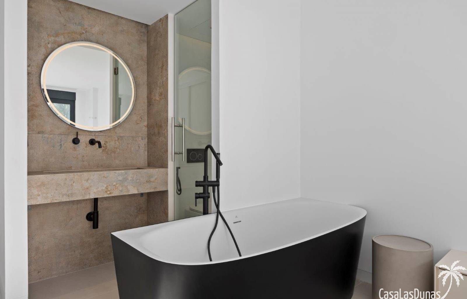 Een oase van ontspanning en rust biedt deze 24 uur bewakende ontwikkeling verdeeld in 40 luxe villa’s en penthouses in Estepona. De luxe villa op de begane grond en kelder beschikt over vier slaapkamers met vier badkamers, ingericht met de beste materialen en hoogwaardige afwerkingen. De keuken, uitgerust met de modernste technologie, komt uit op een ruime woonkamer met directe toegang tot het terras met privé zwembad, wat een perfecte setting creëert om gasten te ontvangen en te ontspannen. De villa beschikt ook over een ingebouwde barbecue, ideaal om buiten te eten terwijl u geniet van de zonsondergang.