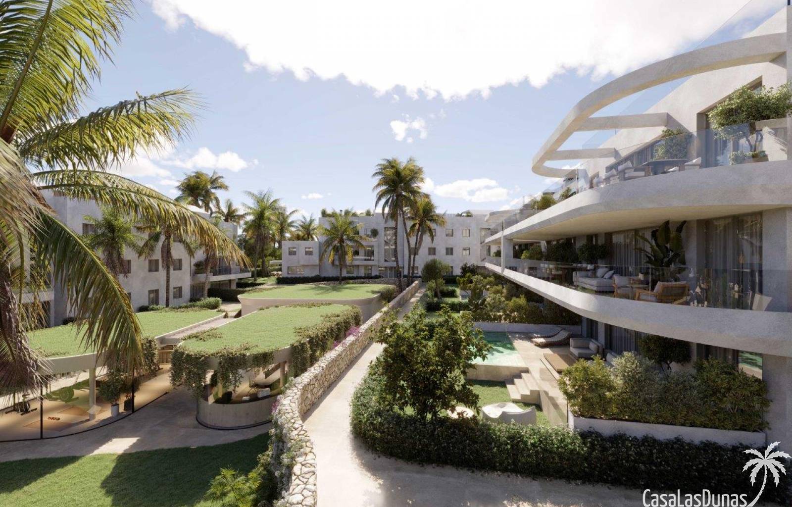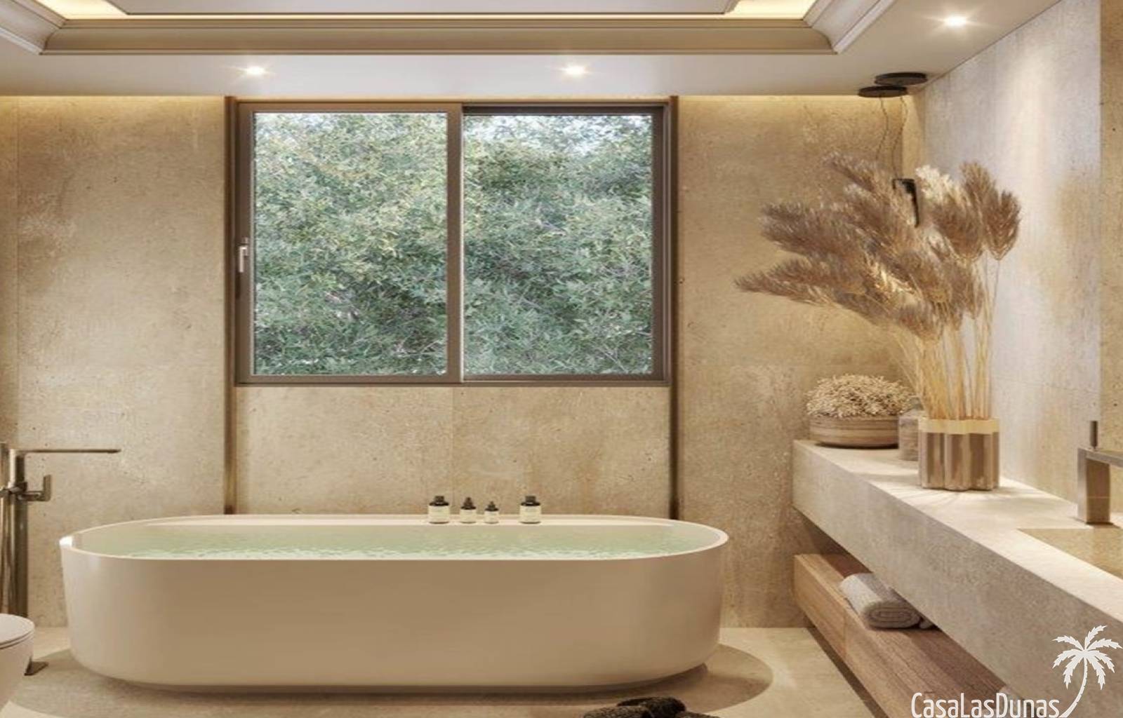 Deze luxueuze complex heeft een lage woondichtheid van 78 exclusieve appartementen met één, twee, drie of vier slaapkamers, ontworpen met visie en aandacht voor detail, ervaart u hier ruimte, rust en groenvoorziening. De interieurs hebben een zacht karakter. Een ingetogen palet van neutrale tinten. Natuurlijke texturen van hout en steen. Met glazen deuren van vloer tot plafond die binnen en buiten naadloos in elkaar laten overlopen. Open woonkeukens met hoogwaardige afwerkingen tot slaapkamer-suites en moderne badkamers die dagelijkse luxe brengen in een spa-achtige sfeer. Elke ruimte is samengesteld met doelgerichte elegantie. De organisch gevormde terrassen weerspiegelen de golvende lijnen van de kust en beweegt mee met het groenige landschap. Gemeenschappelijke ruimtes zijn naadloos verweven met de natuur rijk gelaagde beplanting en een sfeervol spel van licht en schaduw onder elegante palmbomen. Omringd door groen en met zonlicht dat elke ruimte vult, voelt elke woning als een serene terugtrekplek uit het dagelijkse leven. Begin uw dag met een rustige duik in het verwarmde binnenzwembad of laad uwzelf op in het verfrissende zoutwaterbad in de open lucht. Werk geconcentreerd in stijlvolle coworkingruimtes met uitzicht op de tuin. Blijf in beweging in een lichte fitnessruimte met glazen wanden met uitzicht op natuurlijk groen en ontspanning in de spa, sauna en hammam.
