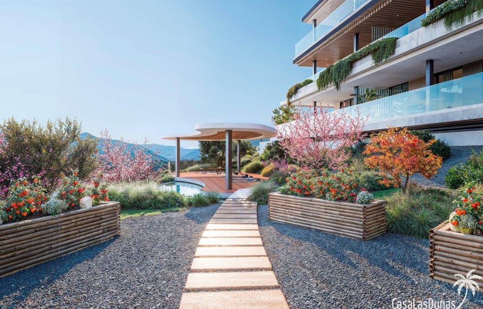 Dit moderne en functionele complex biedt een breed scala aan mogelijkheden, waaronder 36 appartementen met twee en drie slaapkamers, waaronder duplexen, appartementen op de begane grond met tuin of ruime terrassen met zuidwestelijke oriëntatie, en exclusieve penthouses met zonneterrassen, waarvan vele een prachtig panoramisch uitzicht op de Middellandse Zee bieden. Dit duurzame complex maakt gebruik van milieuvriendelijke materialen en optimaliseert de energie-efficiëntie, waardoor het welzijn van de bewoners wordt gewaarborgd en het milieu wordt beschermd. De gemeenschappelijke ruimtes stimuleren interactie en ontspanning, met mediterrane tuinen, wandelpaden, ontspanningsruimtes, een zwembad, een gemeenschappelijke lounge, een spa en een fitnessruimte. Elk appartement beschikt over een eigen parkeerplaats en berging, wat zorgt voor optimaal comfort en functionaliteit. De gemeenschappelijke ruimtes stimuleren interactie en ontspanning, met mediterrane tuinen, wandelpaden, ontspanningsruimtes, een zwembad, een gemeenschappelijke lounge, een spa en een buitenfitnessruimte. Het complex is strategisch gelegen aan de groeiende New Golden Mile van Estepona en biedt gemakkelijke toegang tot alles wat u nodig heeft: supermarkten, internationale scholen, moderne ziekenhuizen, winkelcentra, exclusieve boetieks en een breed scala aan culturele en entertainmentattracties.