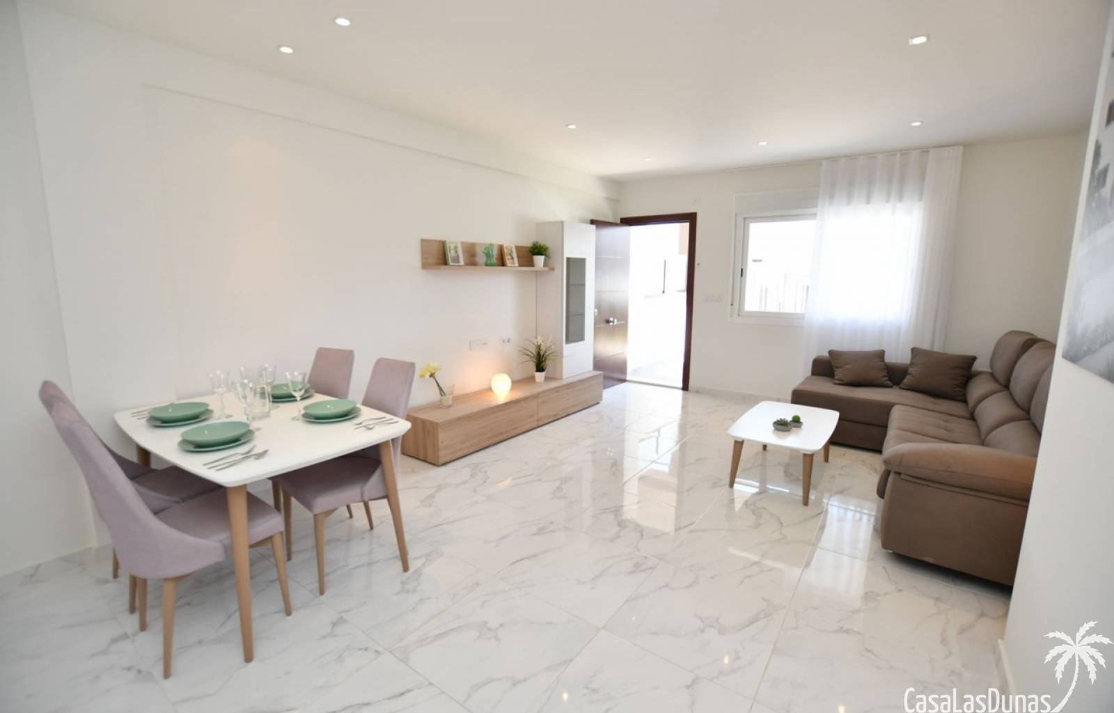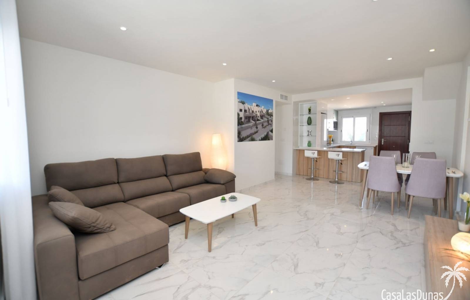 In de rustige en groene wijk La Cañada, net buiten het gezellige centrum van San Miguel de Salinas, worden stijlvolle nieuwbouwappartementen op de begane grond aangeboden. Deze moderne woningen liggen op korte afstand van restaurants, supermarkten, golfbanen én de prachtige zandstranden van Orihuela Costa.