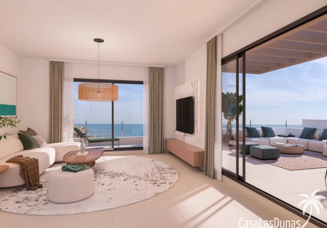 Een modern en efficiënt project van 48 appartementen met 2 en 3 slaapkamers, inclusief parkeerplaats. De woningen zijn uitgerust met een aerothermisch systeem voor de productie van warm water voor huishoudelijk gebruik, airconditioning met warmtepomp en zonering en gecontroleerde mechanische ventilatie. Ze zijn voorzien van een uiterst efficiënte thermische en akoestische isolatie en dubbel glas met thermische onderbreking voor optimaal comfort in alle seizoenen. De keukens worden volledig gemeubileerd opgeleverd en zijn voorzien van apparatuur: oven, magnetron, inductiekookplaat, koelkast, vaatwasser, wasmachine en afzuigkap. Wit gelakt houtwerk en beklede inbouwkasten maken het interieur compleet. Het complex beschikt over een gemeenschappelijk zwembad, tuinen, buitenverlichting en parkeerplaatsen in een afgesloten complex met uitzicht op zee, in een rustige en goed bereikbare omgeving. Ideaal als hoofdverblijfplaats of als tweede woning om het hele jaar door van te genieten.
