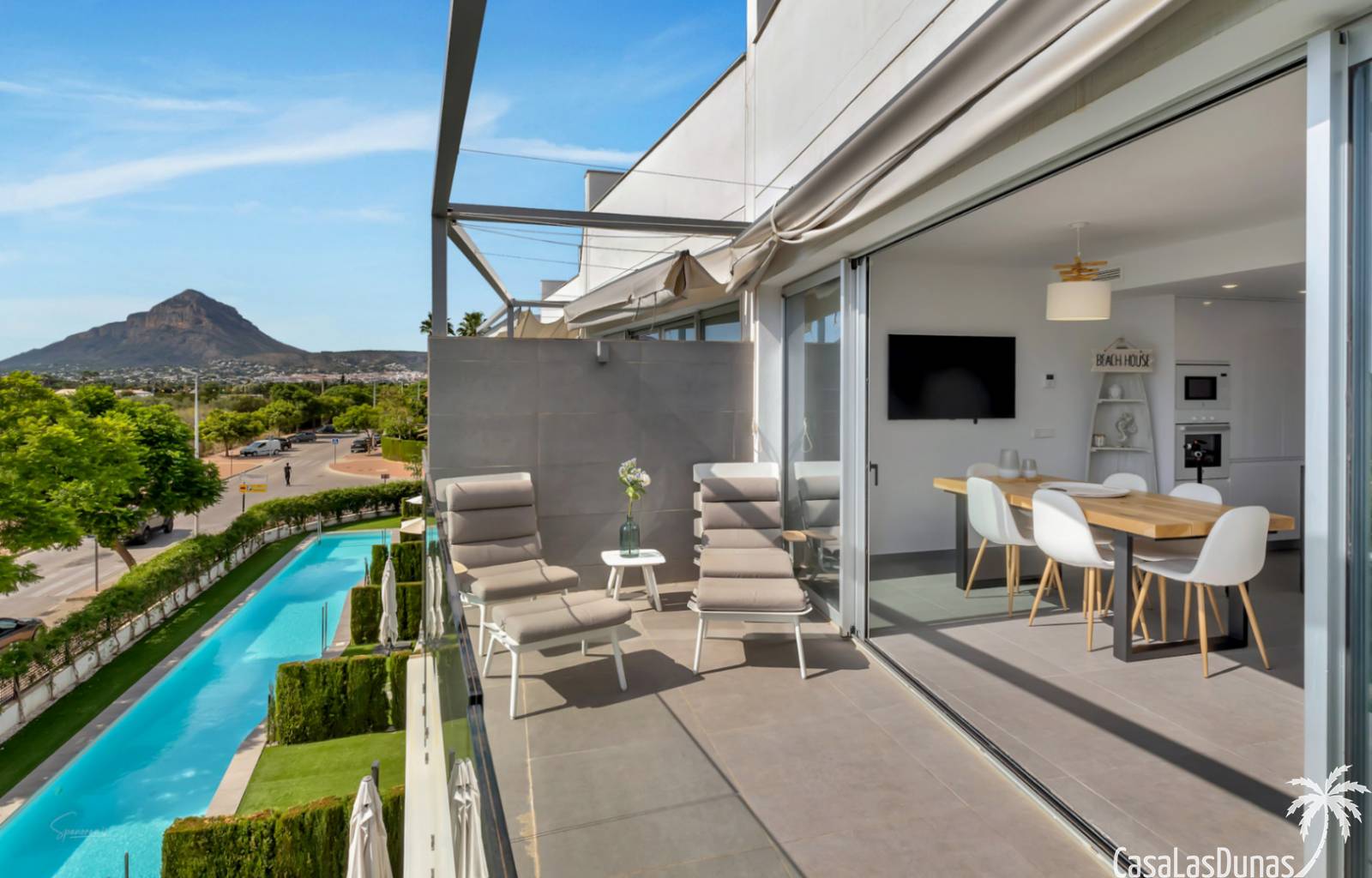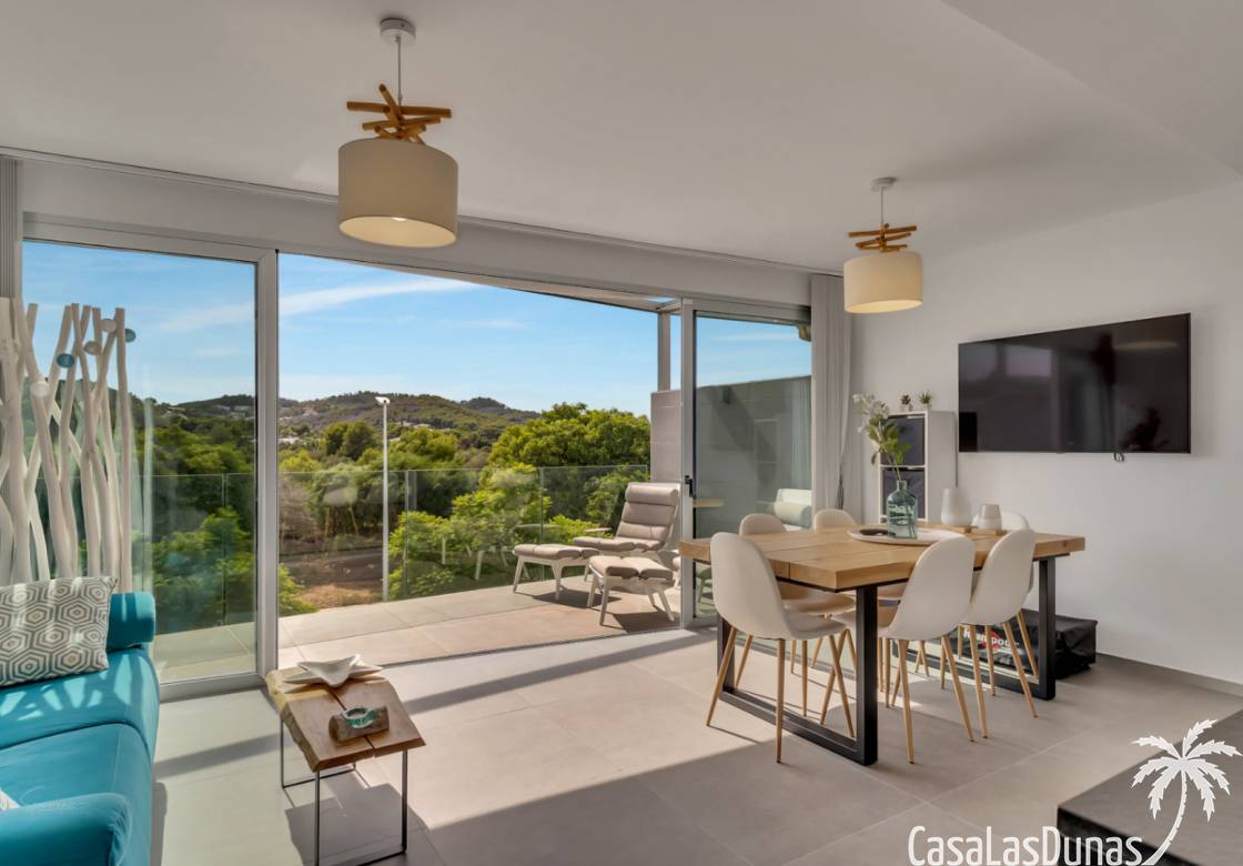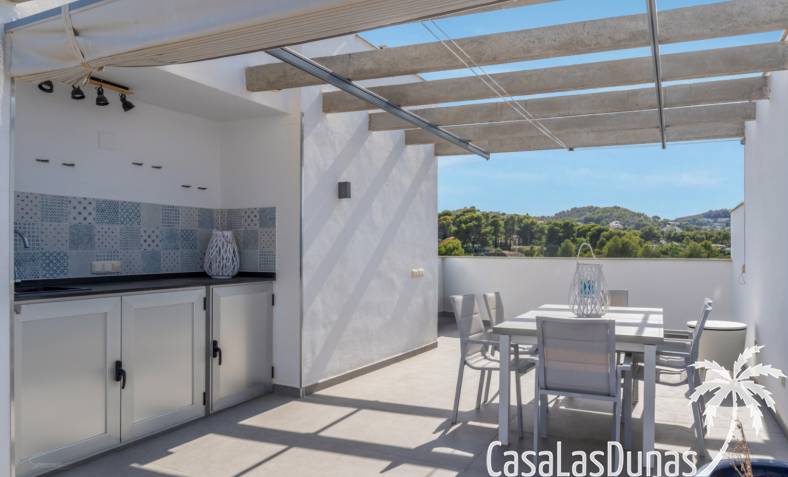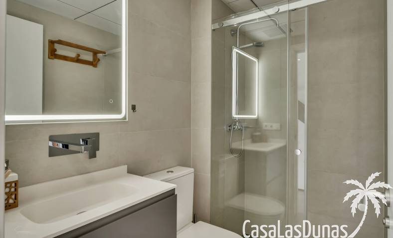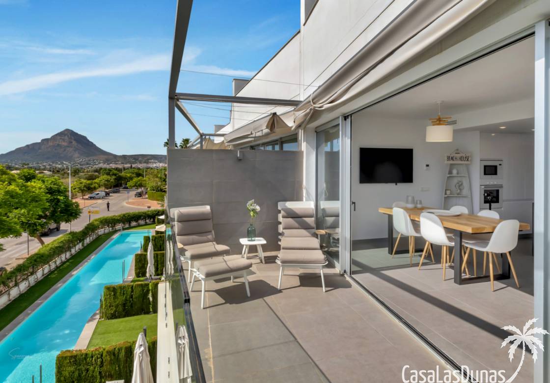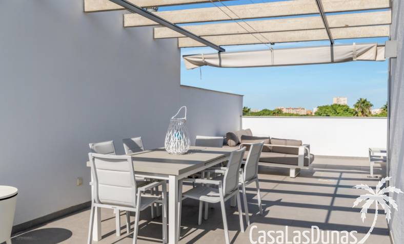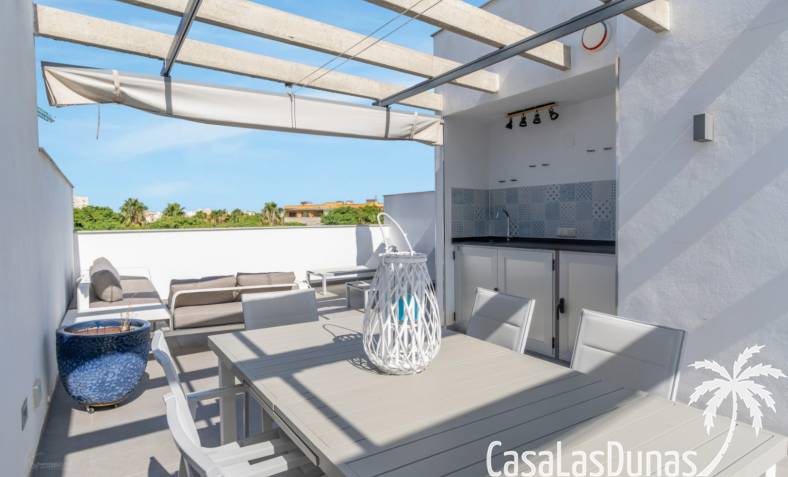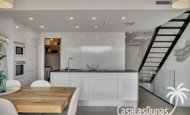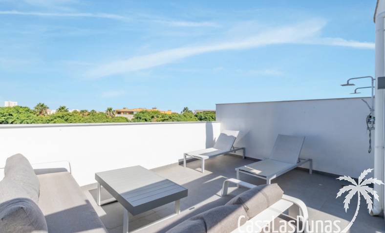 Modern appartement gebouwd in 2020 en verdeeld over 3 verdiepingen met een groot balkon en een eigen dakterras op wandelafstand van het Arenal strand en alle voorzieningen. De indeling van de woning is als volgt; Hoofdniveau: Ruime woon-/eetkamer met directe toegang tot een ruim balkon met uitzicht op het gemeenschappelijke zwembad, een modern uitgeruste keuken met wasruimte, een tweepersoonsslaapkamer en een complete badkamer. Een verdieping lager zijn twee extra slaapkamers en een tweede badkamer, ideaal voor familie of gasten. Op het bovenste niveau is een groot dakterras met een zomerkeuken, barbecue, buitendouche, toilet en een prachtig uitzicht. Het pand beschikt over elektrische rolluiken,