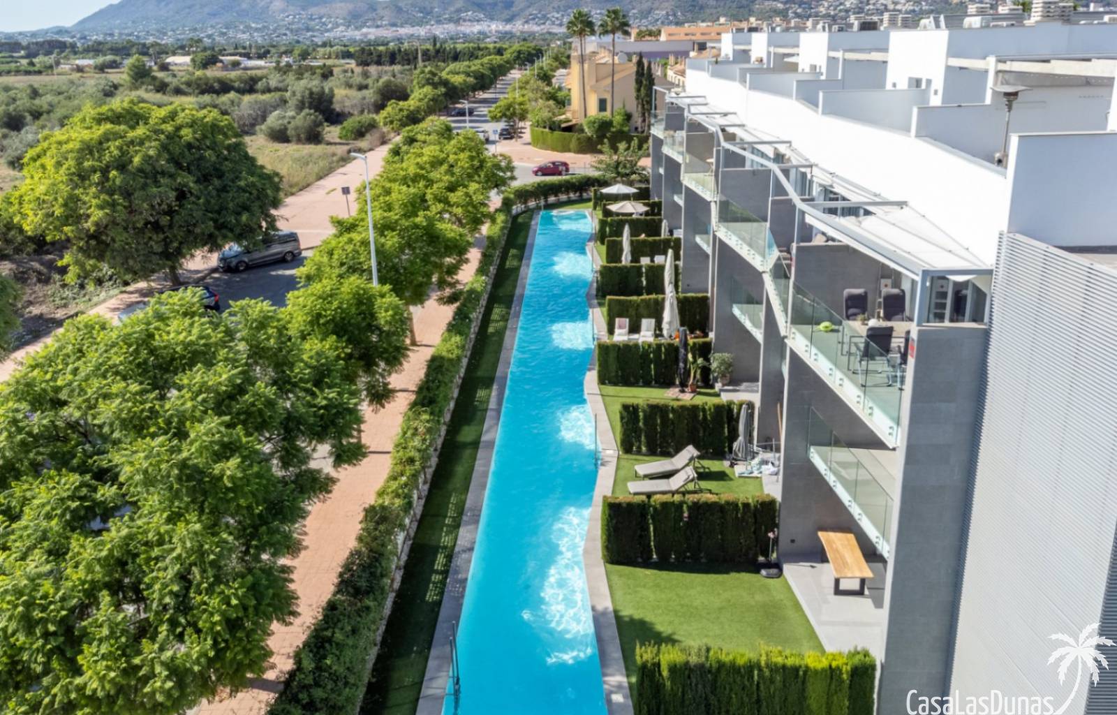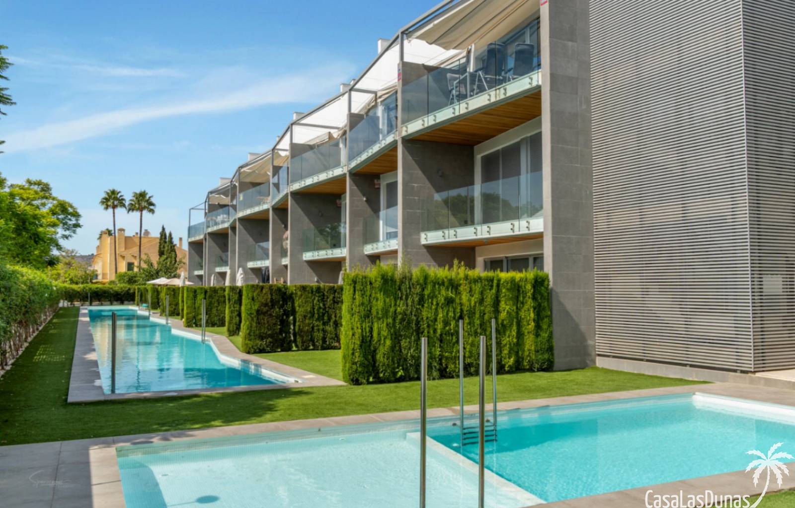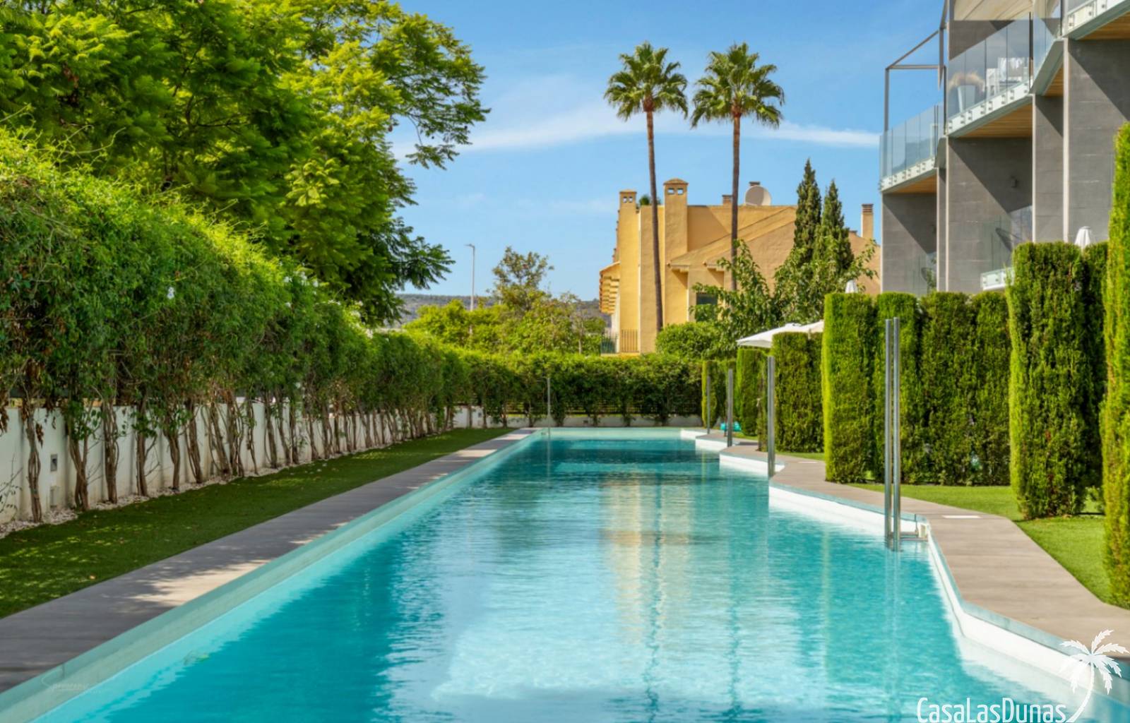airconditioning (warm/koud), een alarmsysteem en een ruime ondergrondse parkeerplaats en berging. Het complex biedt twee zwembaden, één voor kinderen en een groot zwembad van 53 meter lang voor volwassenen.