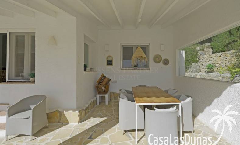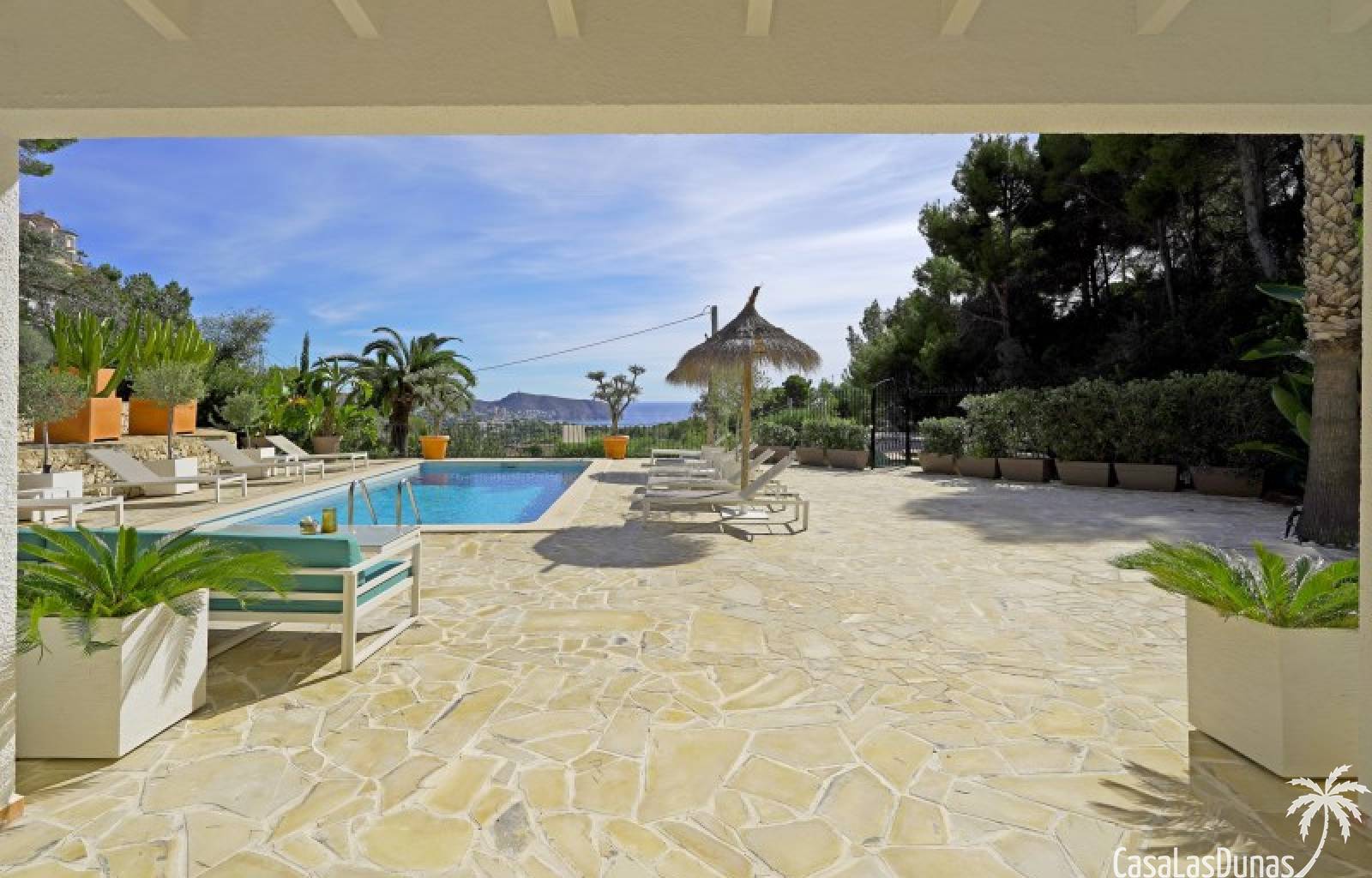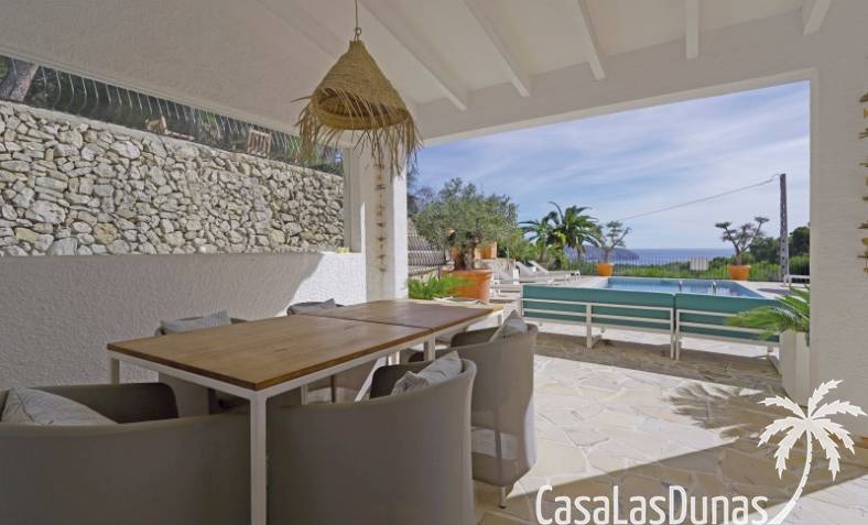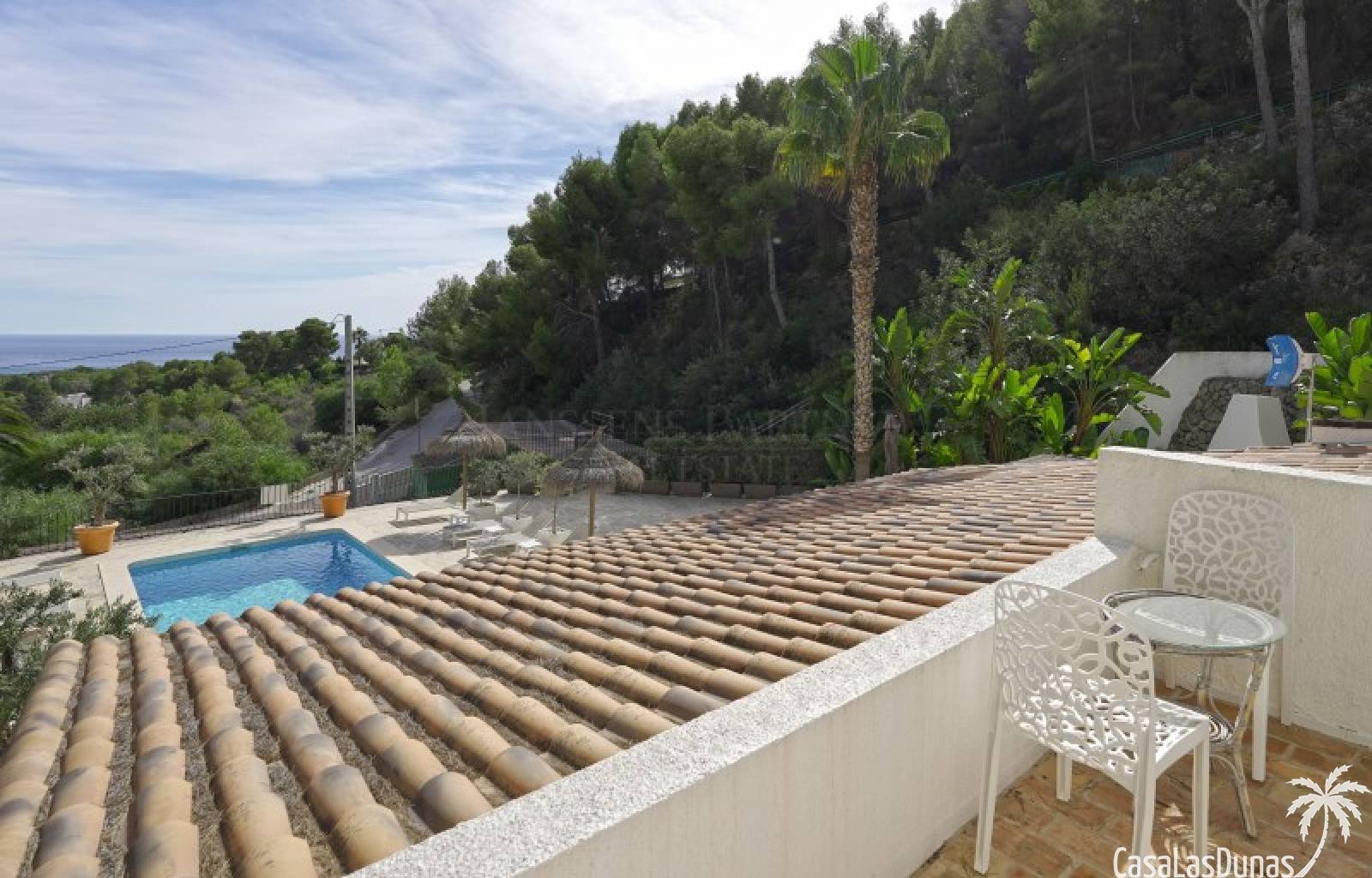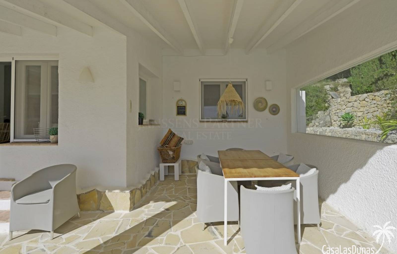 Gelegen in de heuvels van Moraira, tussen de zee en de bergen. Deze moderne woning biedt luxe en privacy, met een verwarmd privézwembad, een ruim terras en een adembenemend panoramisch uitzicht op zee. De villa beschikt over vier slaapkamers en twee badkamers, evenals een buitendouche. In 2025 is het terras volledig vernieuwd met flagstone natuurstenen, en er is een half-schaduw pergola aan het huis gebouwd, ideaal om buiten te ontspannen of te dineren in de zomer. Voor parkeermogelijkheden is er een carport beneden, waar twee auto's in de schaduw kunnen staan. De lichte woonkamer is voorzien van een open haard, een gezellige eethoek en een volledig uitgeruste moderne keuken. Het omheinde privéterrein biedt volop rust en veiligheid, met een zonneterras, een buitensalon en een barbecue voor sfeervol buiten dineren. De woning beschikt tevens over airconditioning. Villa Paulanni ligt in een rustige, groene heuvelachtige omgeving, waar u kunt genieten van de privacy en het panoramische uitzicht. Tegelijkertijd bent u slechts enkele minuten verwijderd van het centrum van Moraira, met zijn charmante winkels, restaurants en prachtige stranden. Villa Paulanni combineert modern comfort, stijl en een uitzonderlijke locatie, en is daarmee een ideale woning voor wie wil genieten van het mediterrane leven aan de Costa Blanca. De woning bedraagt 157m2 en bevindt zich op een plot van 1360m2. Tevens grenst het aan een tweede plot, wat 1610m2 bevat. #ref:1766