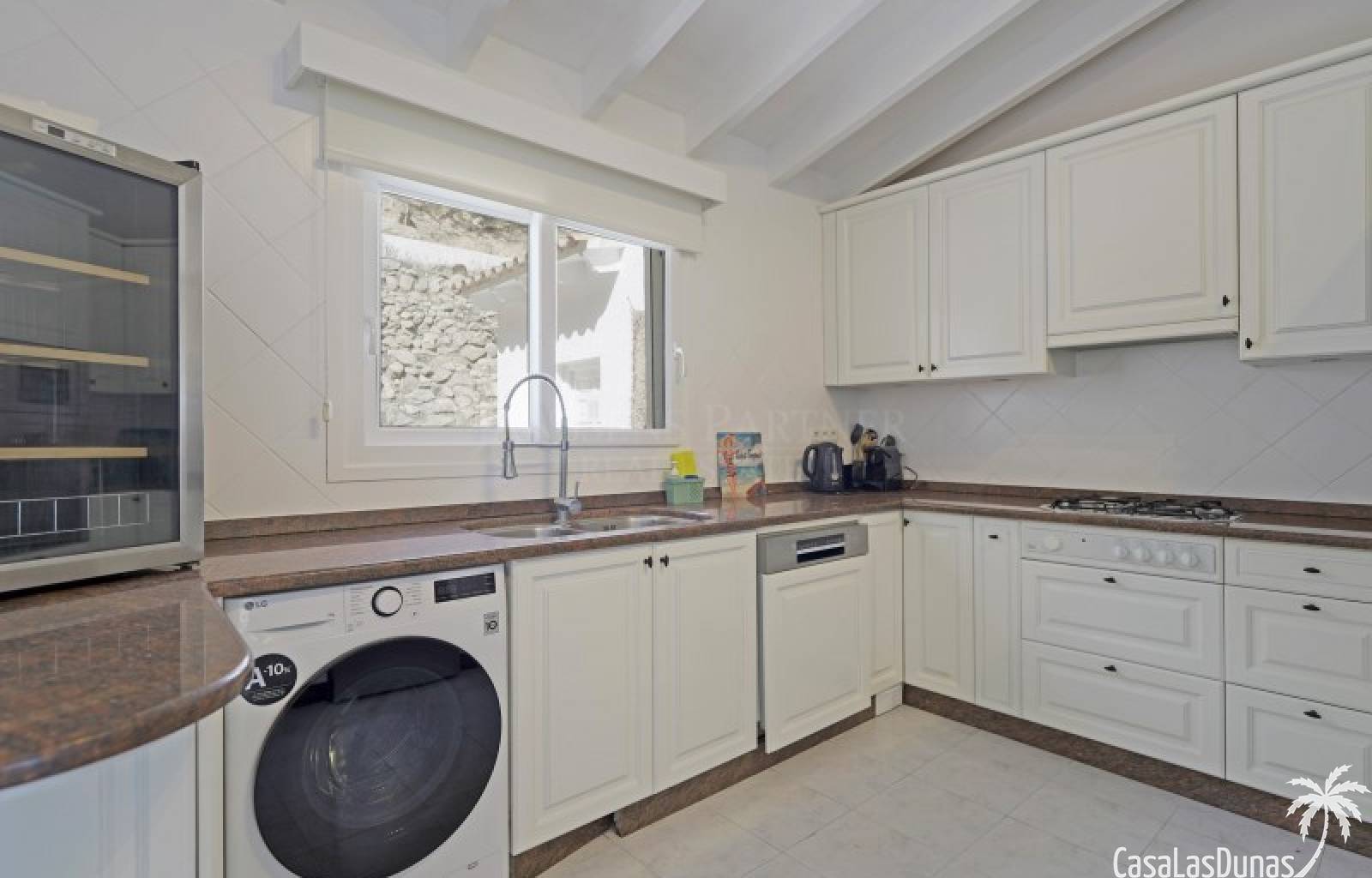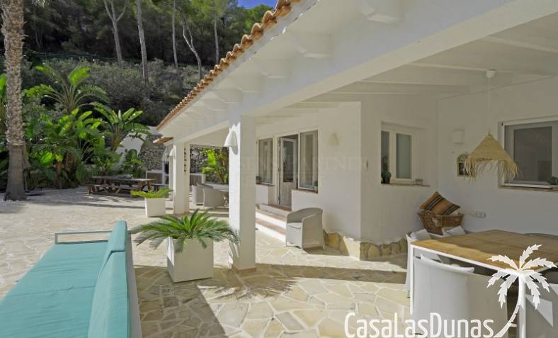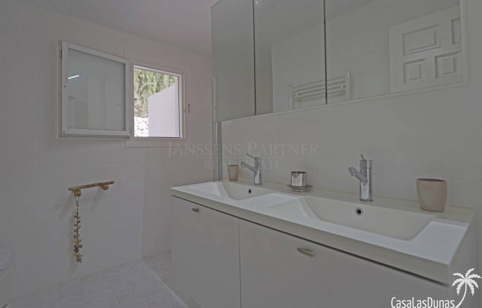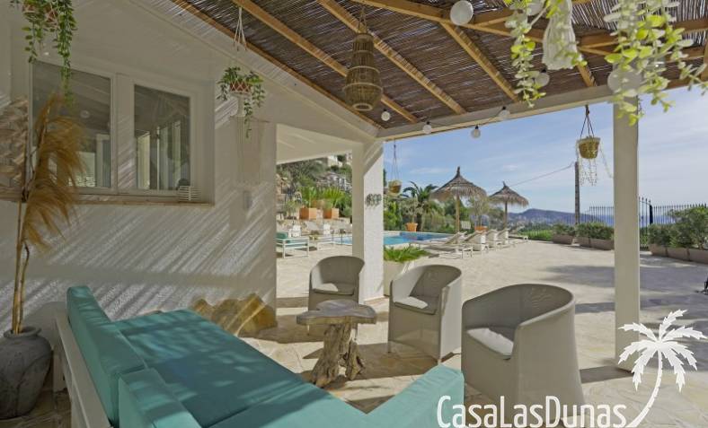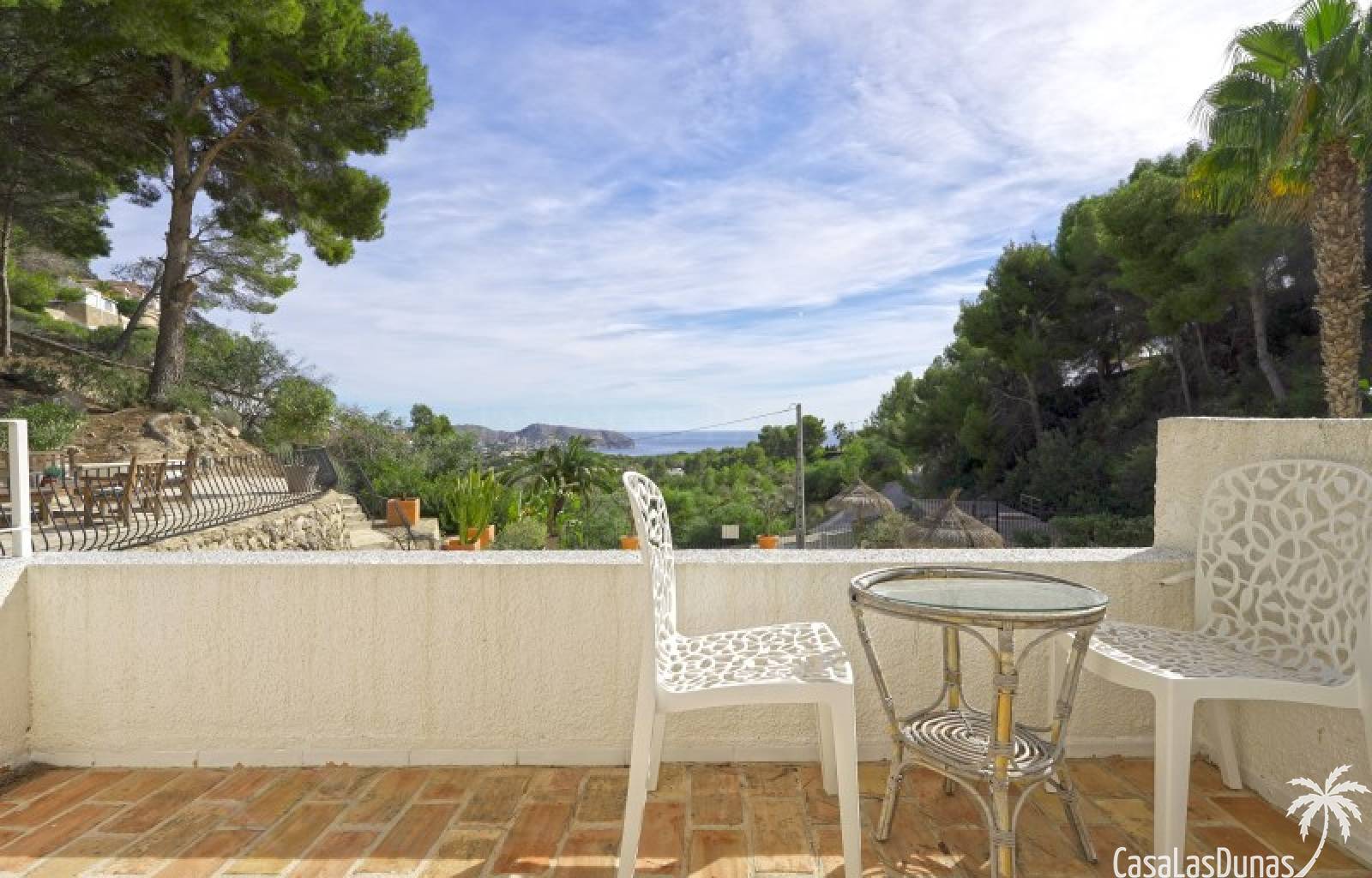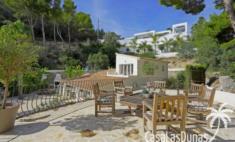Gelegen in de heuvels van Moraira, tussen de zee en de bergen. Deze moderne woning biedt luxe en privacy, met een verwarmd privézwembad, een ruim terras en een adembenemend panoramisch uitzicht op zee. De villa beschikt over vier slaapkamers en twee badkamers, evenals een buitendouche. In 2025 is het terras volledig vernieuwd met flagstone natuurstenen, en er is een half-schaduw pergola aan het huis gebouwd, ideaal om buiten te ontspannen of te dineren in de zomer. Voor parkeermogelijkheden is er een carport beneden, waar twee auto's in de schaduw kunnen staan. De lichte woonkamer is voorzien van een open haard, een gezellige eethoek en een volledig uitgeruste moderne keuken. Het omheinde privéterrein biedt volop rust en veiligheid, met een zonneterras, een buitensalon en een barbecue voor sfeervol buiten dineren. De woning beschikt tevens over airconditioning. Villa Paulanni ligt in een rustige, groene heuvelachtige omgeving, waar u kunt genieten van de privacy en het panoramische uitzicht. Tegelijkertijd bent u slechts enkele minuten verwijderd van het centrum van Moraira, met zijn charmante winkels, restaurants en prachtige stranden. Villa Paulanni combineert modern comfort, stijl en een uitzonderlijke locatie, en is daarmee een ideale woning voor wie wil genieten van het mediterrane leven aan de Costa Blanca. De woning bedraagt 157m2 en bevindt zich op een plot van 1360m2. Tevens grenst het aan een tweede plot, wat 1610m2 bevat. #ref:1766
