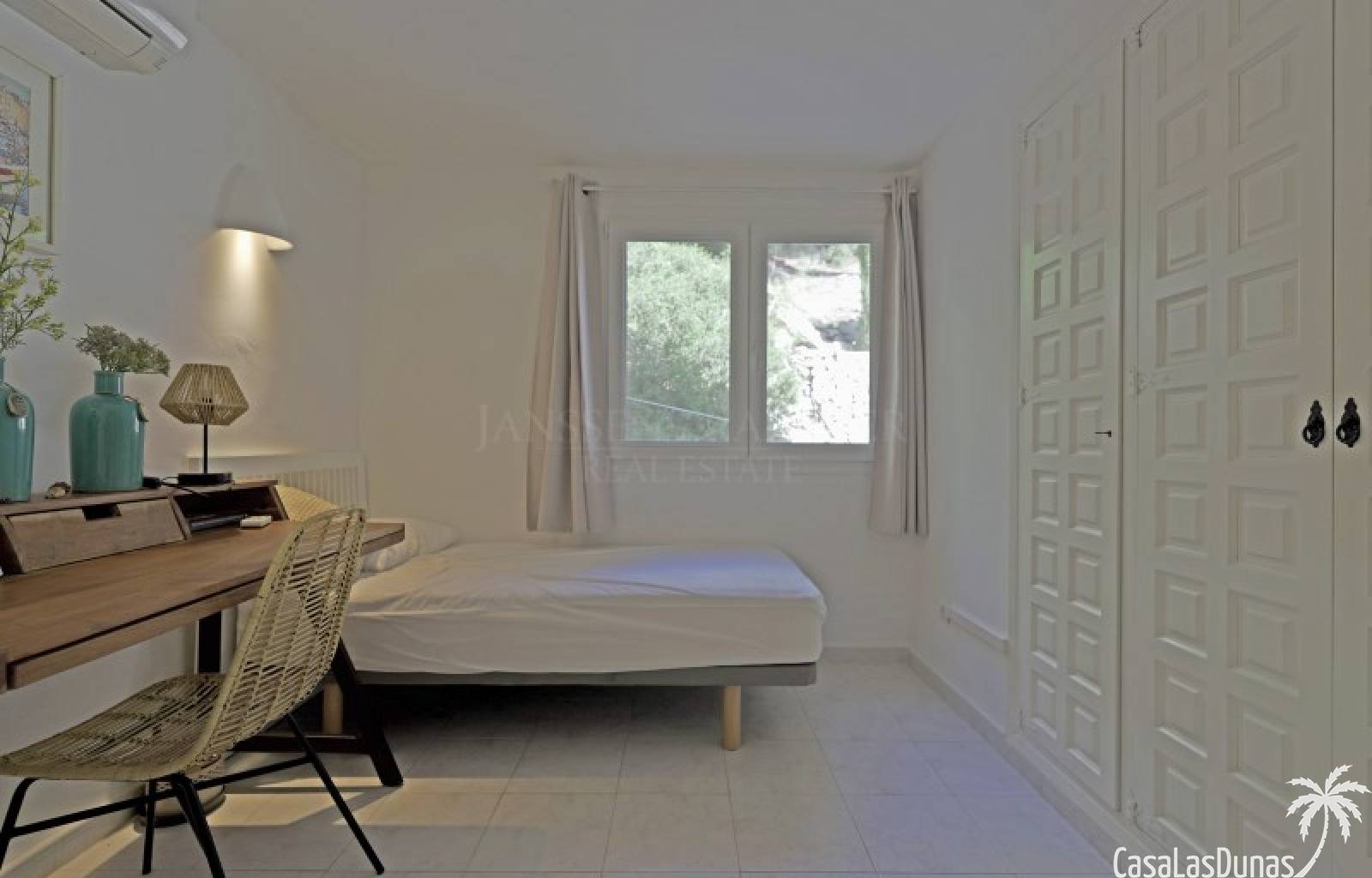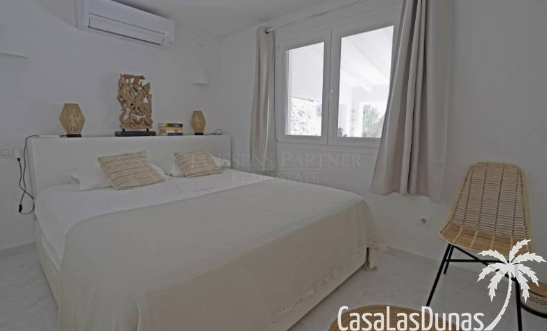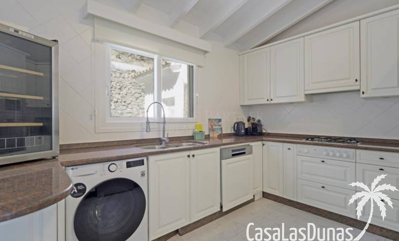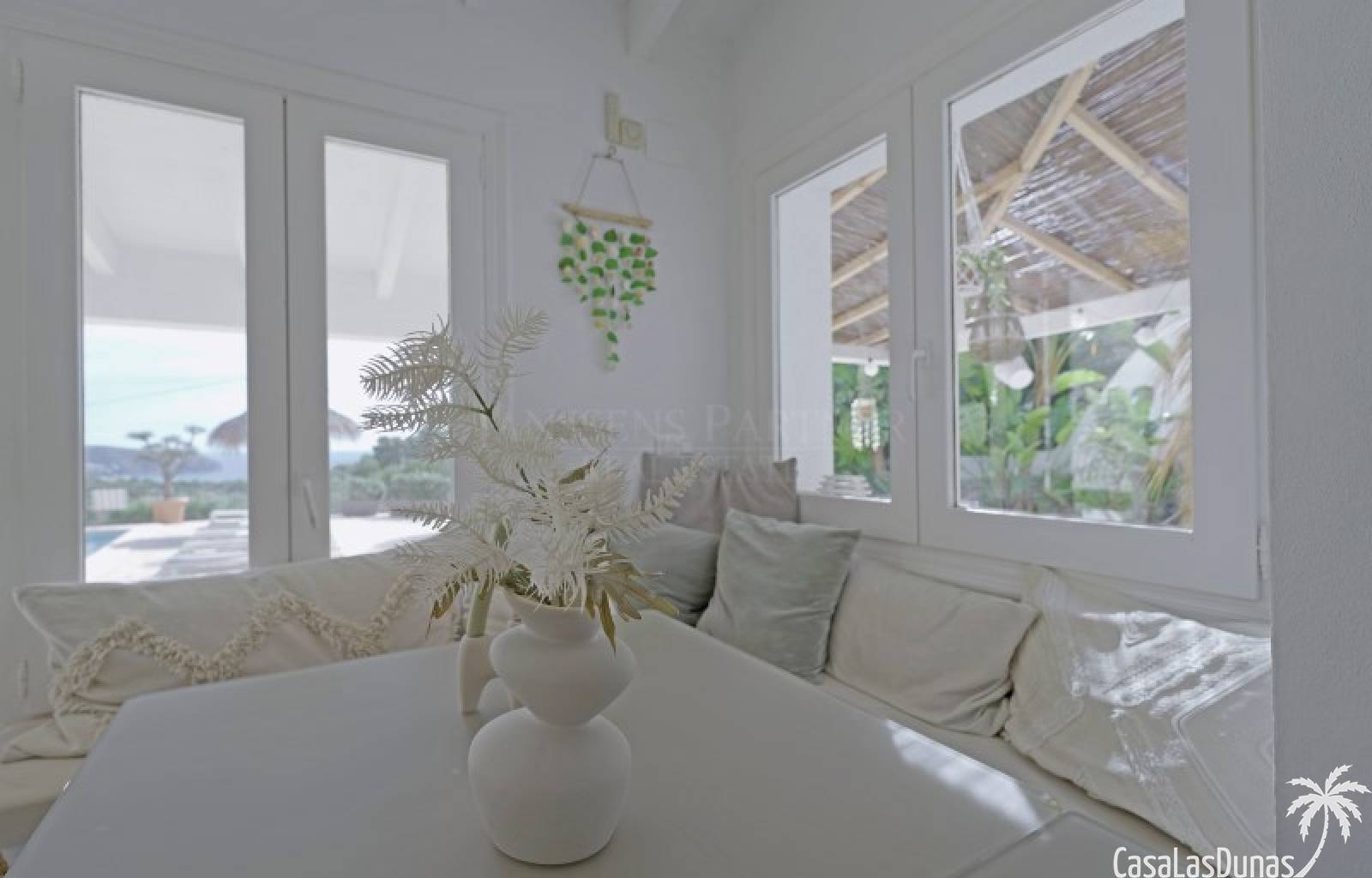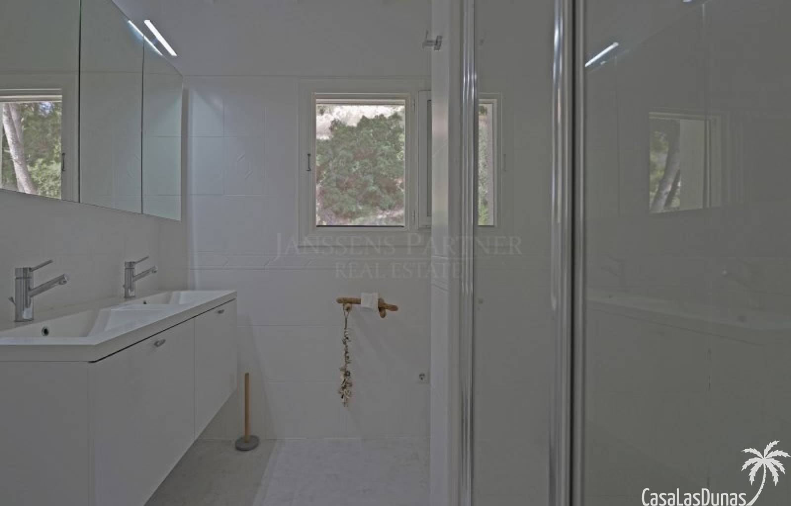 Gelegen in de heuvels van Moraira, tussen de zee en de bergen. Deze moderne woning biedt luxe en privacy, met een verwarmd privézwembad, een ruim terras en een adembenemend panoramisch uitzicht op zee. De villa beschikt over vier slaapkamers en twee badkamers, evenals een buitendouche. In 2025 is het terras volledig vernieuwd met flagstone natuurstenen, en er is een half-schaduw pergola aan het huis gebouwd, ideaal om buiten te ontspannen of te dineren in de zomer. Voor parkeermogelijkheden is er een carport beneden, waar twee auto's in de schaduw kunnen staan. De lichte woonkamer is voorzien van een open haard, een gezellige eethoek en een volledig uitgeruste moderne keuken. Het omheinde privéterrein biedt volop rust en veiligheid, met een zonneterras, een buitensalon en een barbecue voor sfeervol buiten dineren. De woning beschikt tevens over airconditioning. Villa Paulanni ligt in een rustige, groene heuvelachtige omgeving, waar u kunt genieten van de privacy en het panoramische uitzicht. Tegelijkertijd bent u slechts enkele minuten verwijderd van het centrum van Moraira, met zijn charmante winkels, restaurants en prachtige stranden. Villa Paulanni combineert modern comfort, stijl en een uitzonderlijke locatie, en is daarmee een ideale woning voor wie wil genieten van het mediterrane leven aan de Costa Blanca. De woning bedraagt 157m2 en bevindt zich op een plot van 1360m2. Tevens grenst het aan een tweede plot, wat 1610m2 bevat. #ref:1766