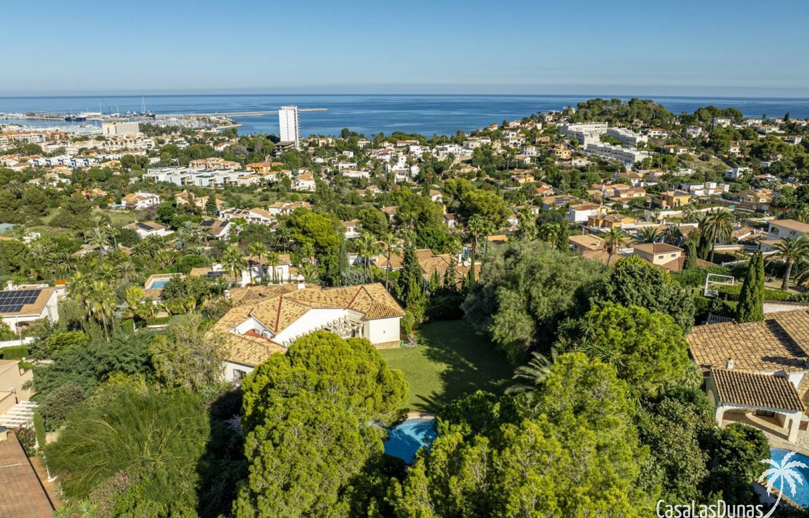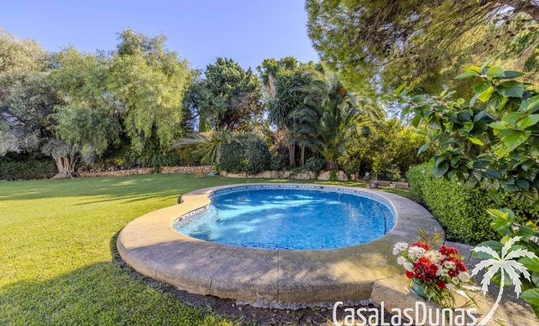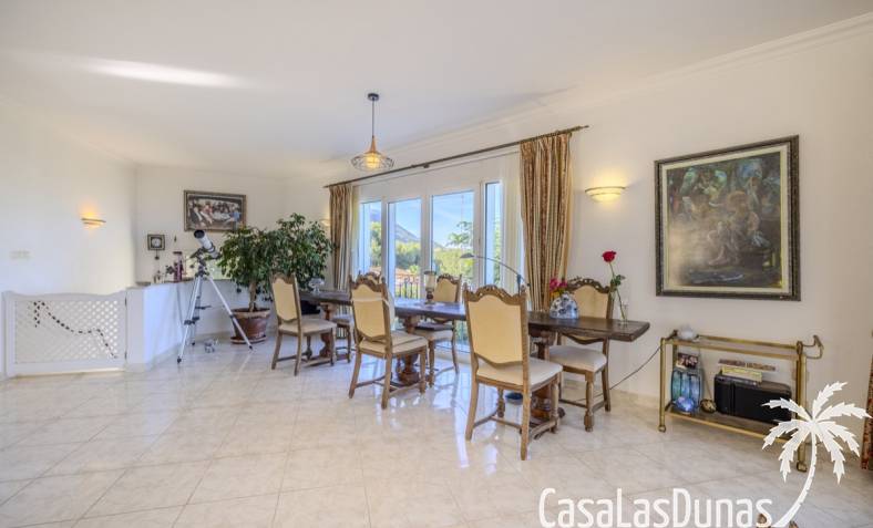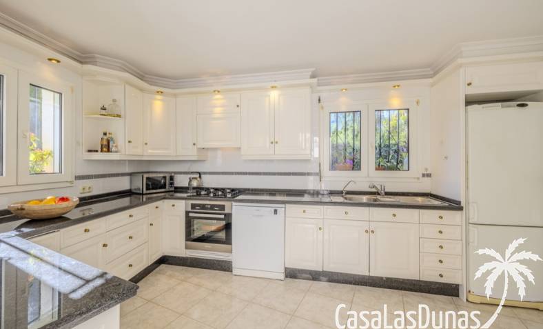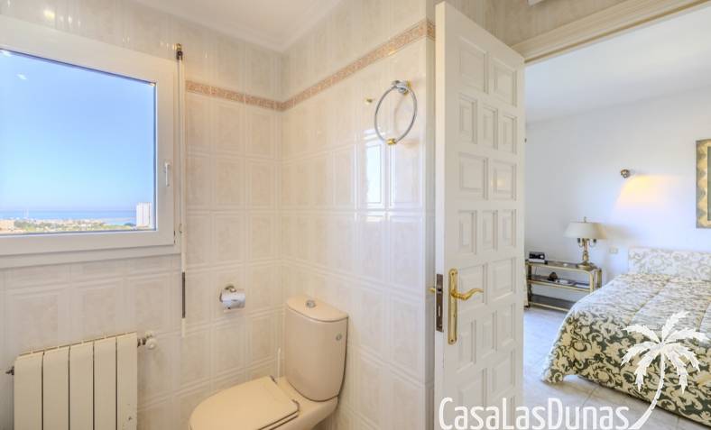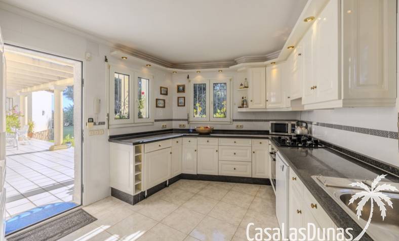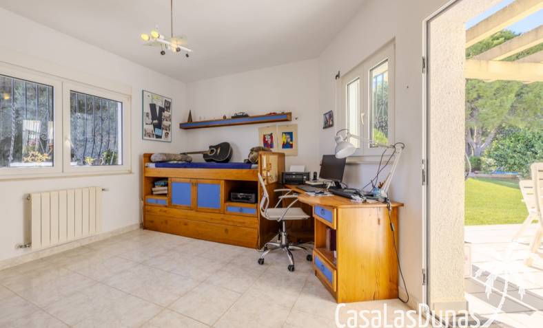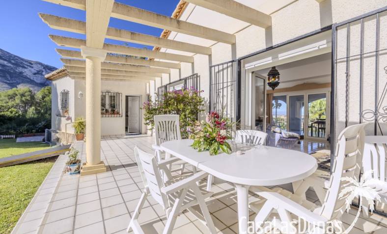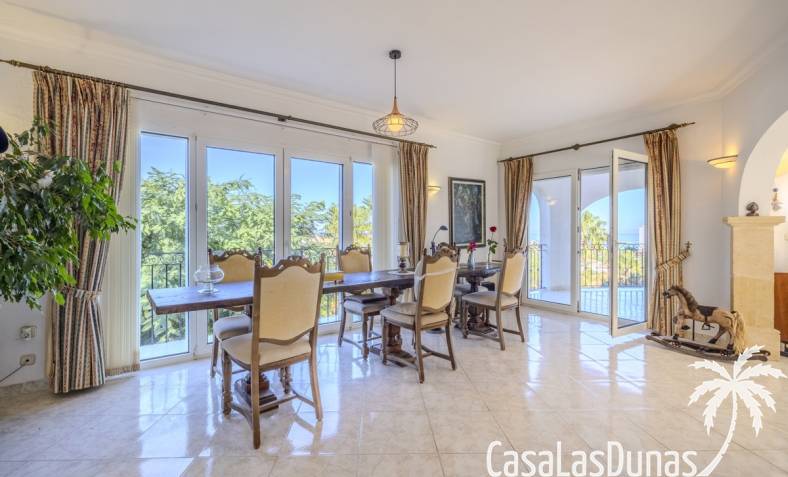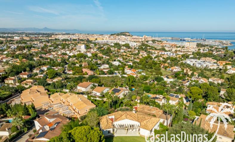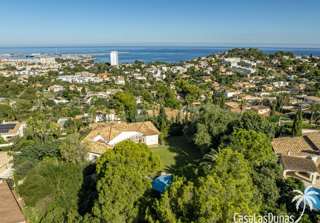 Deze prachtige villa met uitzicht op zee bevindt zich in een rustige en groene omgeving op slechts enkele minuten van het centrum, strand en alle voorzieningen.Het huis is gelegen op een perceel van 1085 m²en valt op door de indrukwekkende buitenruimte met een prachtige en goed onderhouden tuin met een zwembad op het zuiden en uitzicht op de Montgó. Met een bebouwde oppervlakte van 267 m² is het pand ontworpen om u de ruimte te bieden die u nodig heeft. De villa beschikt over een ruime en lichte woon-eetkamer met een open haard en grote ramen met een prachtig uitzicht op de zee en de stad, met toegang tot twee open terrassen, één op het zuiden met uitzicht op de bergen en de andere op het noorden met uitzicht op zee; een grote aparte keuken, eveneens met directe toegang tot het terras; drie gezellige slaapkamers; twee badkamers en een gastentoilet; de hoofdslaapkamer heeft een en-suite badkamer en toegang tot een balkon dat privacy en comfort biedt. Daarnaast beschikt het huis op de benedenverdieping over een zeer ruime slaapkamer, een kleine keuken, een badkamer en een wasruimte. Deze ruimte kan ook als apart appartement gebruikt worden. De garage bevindt zich ook op deze verdieping en beide verdiepingen zijn verbonden door een interne trap.