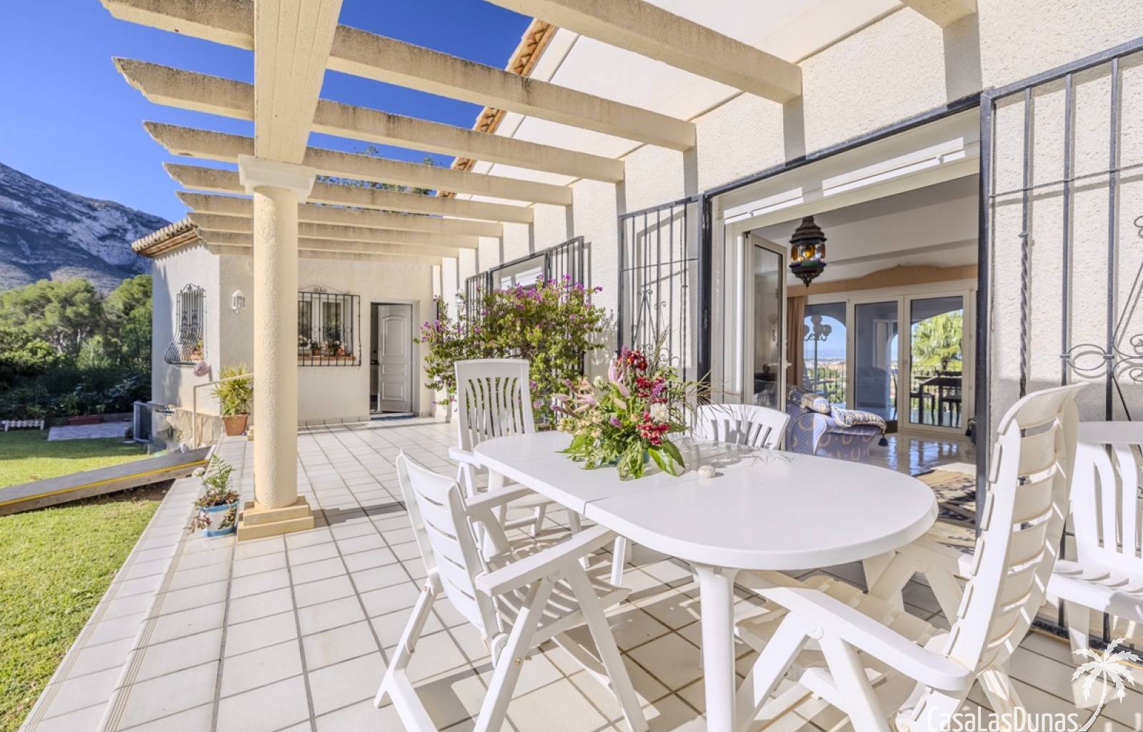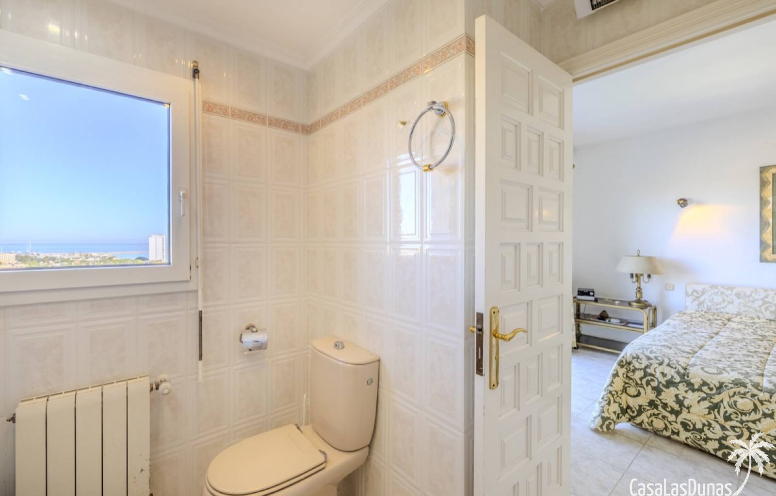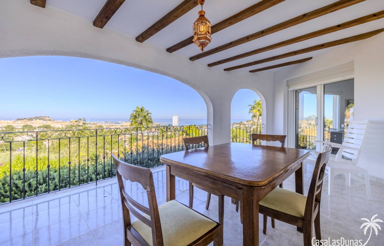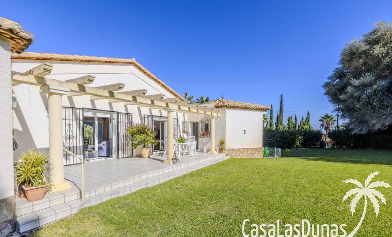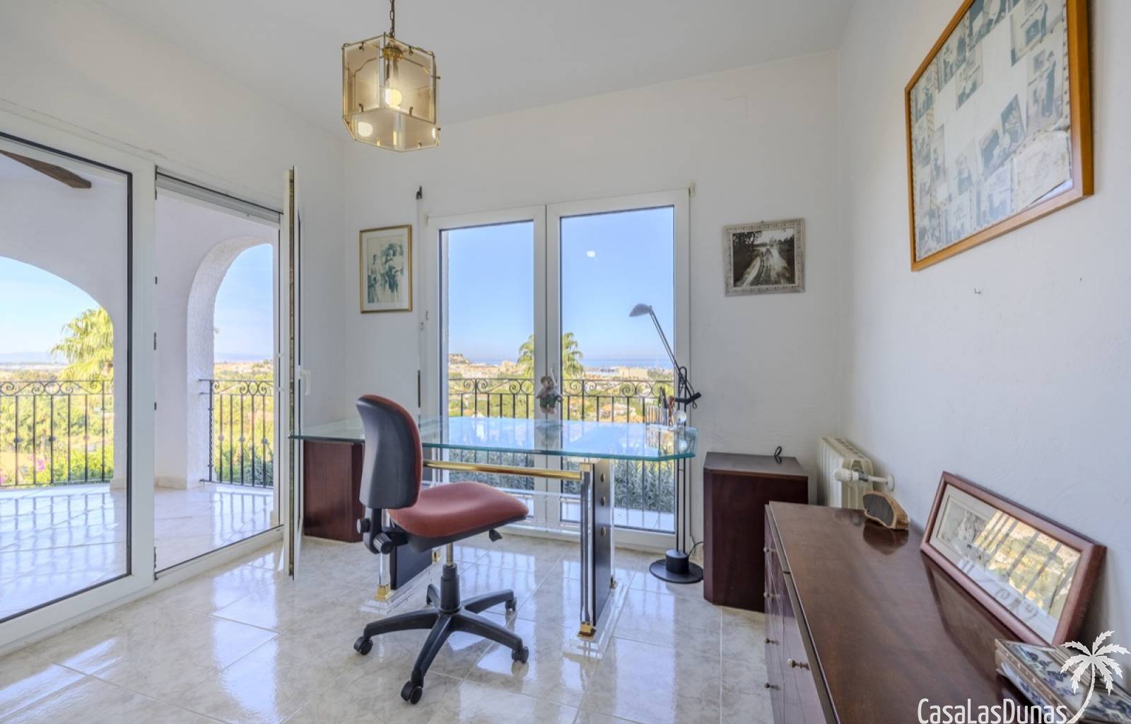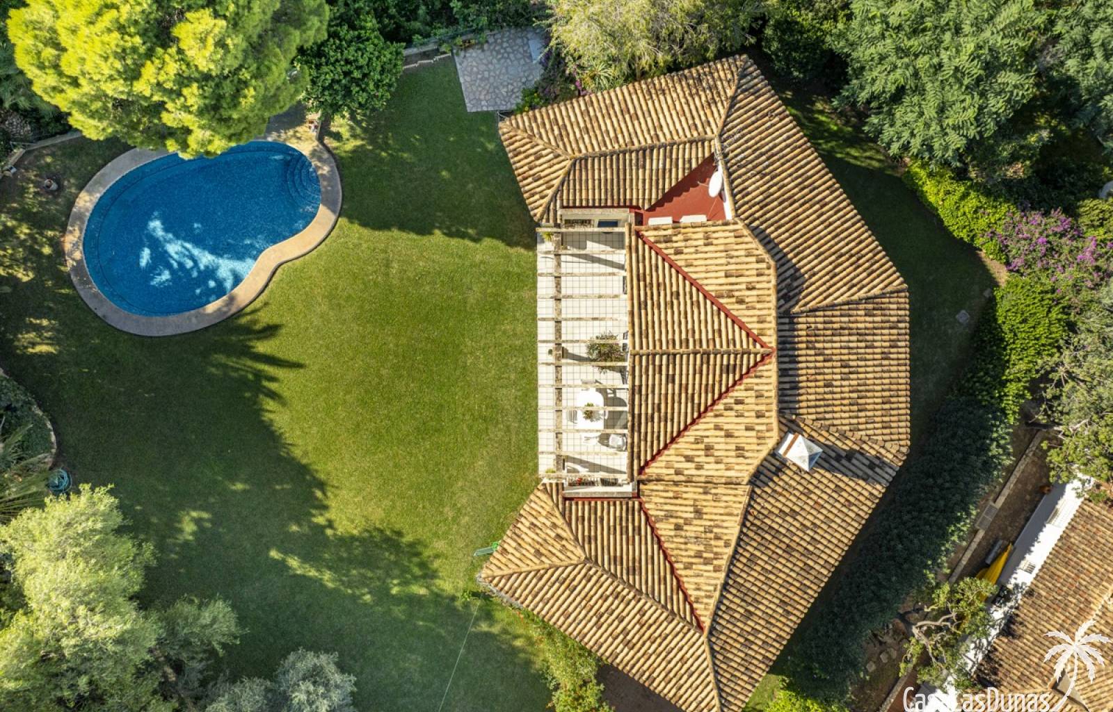 Deze prachtige villa met uitzicht op zee bevindt zich in een rustige en groene omgeving op slechts enkele minuten van het centrum, strand en alle voorzieningen.Het huis is gelegen op een perceel van 1085 m²en valt op door de indrukwekkende buitenruimte met een prachtige en goed onderhouden tuin met een zwembad op het zuiden en uitzicht op de Montgó. Met een bebouwde oppervlakte van 267 m² is het pand ontworpen om u de ruimte te bieden die u nodig heeft. De villa beschikt over een ruime en lichte woon-eetkamer met een open haard en grote ramen met een prachtig uitzicht op de zee en de stad, met toegang tot twee open terrassen, één op het zuiden met uitzicht op de bergen en de andere op het noorden met uitzicht op zee; een grote aparte keuken, eveneens met directe toegang tot het terras; drie gezellige slaapkamers; twee badkamers en een gastentoilet; de hoofdslaapkamer heeft een en-suite badkamer en toegang tot een balkon dat privacy en comfort biedt. Daarnaast beschikt het huis op de benedenverdieping over een zeer ruime slaapkamer, een kleine keuken, een badkamer en een wasruimte. Deze ruimte kan ook als apart appartement gebruikt worden. De garage bevindt zich ook op deze verdieping en beide verdiepingen zijn verbonden door een interne trap.