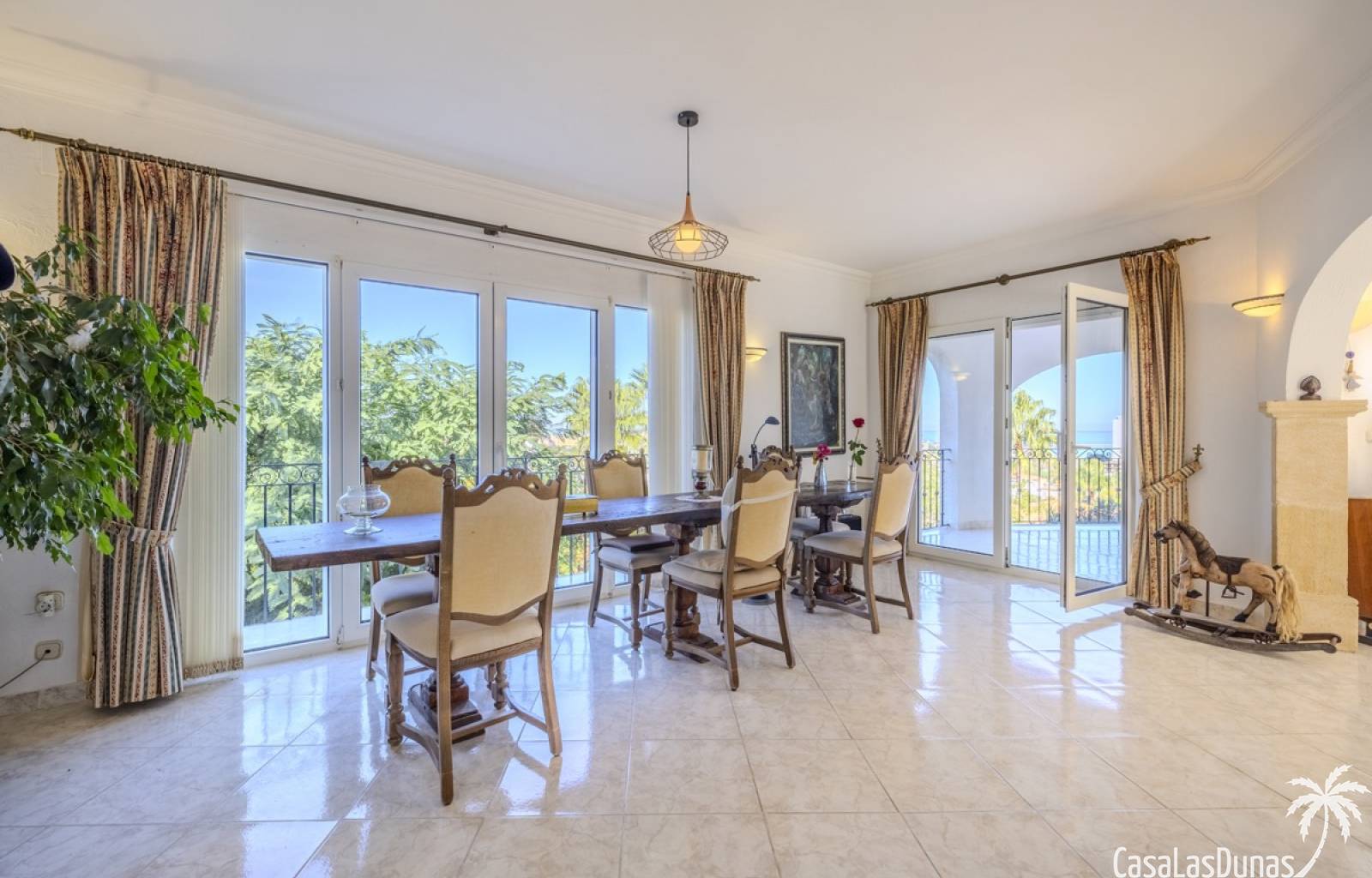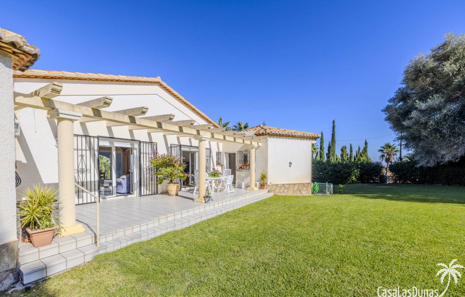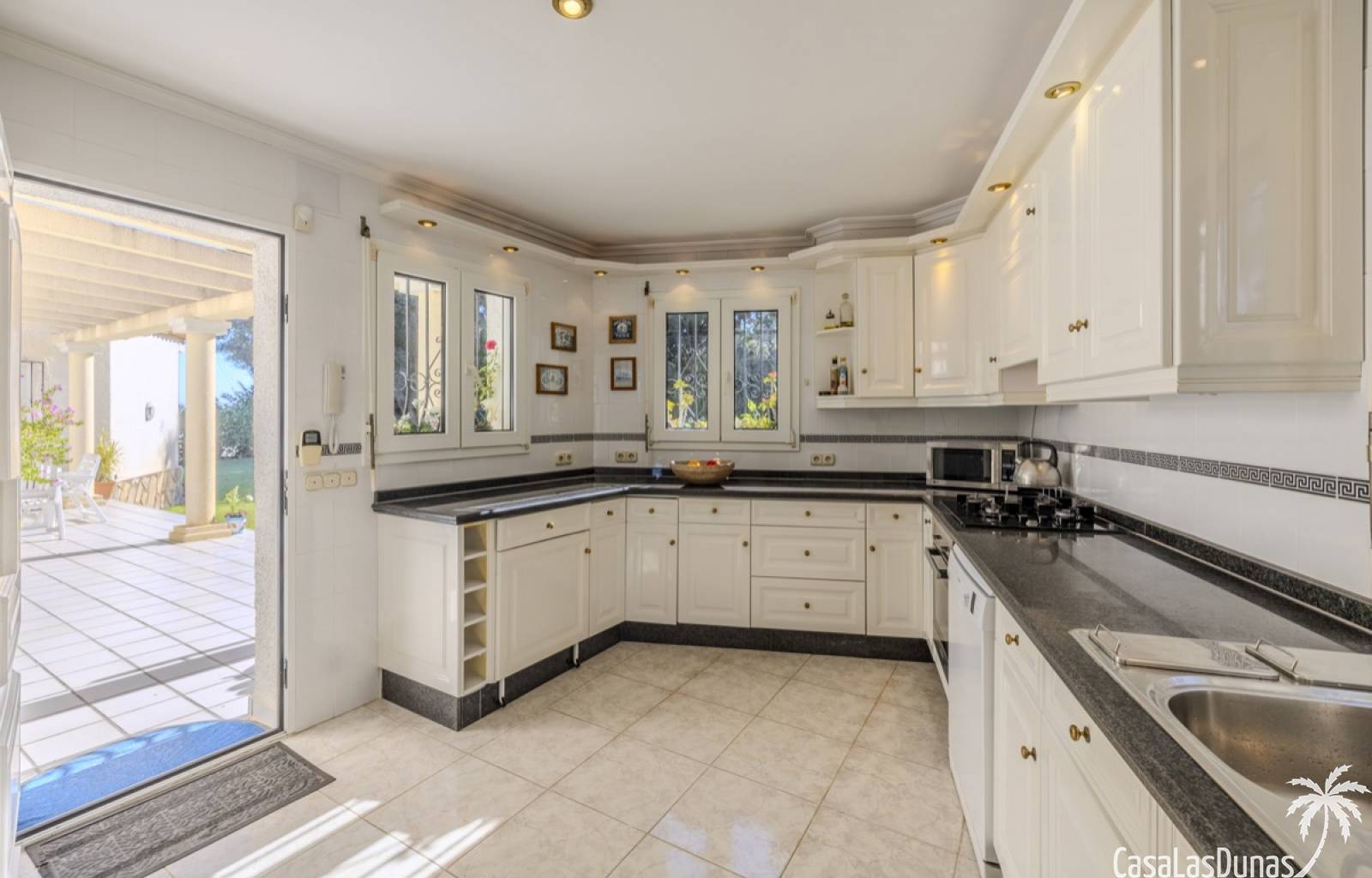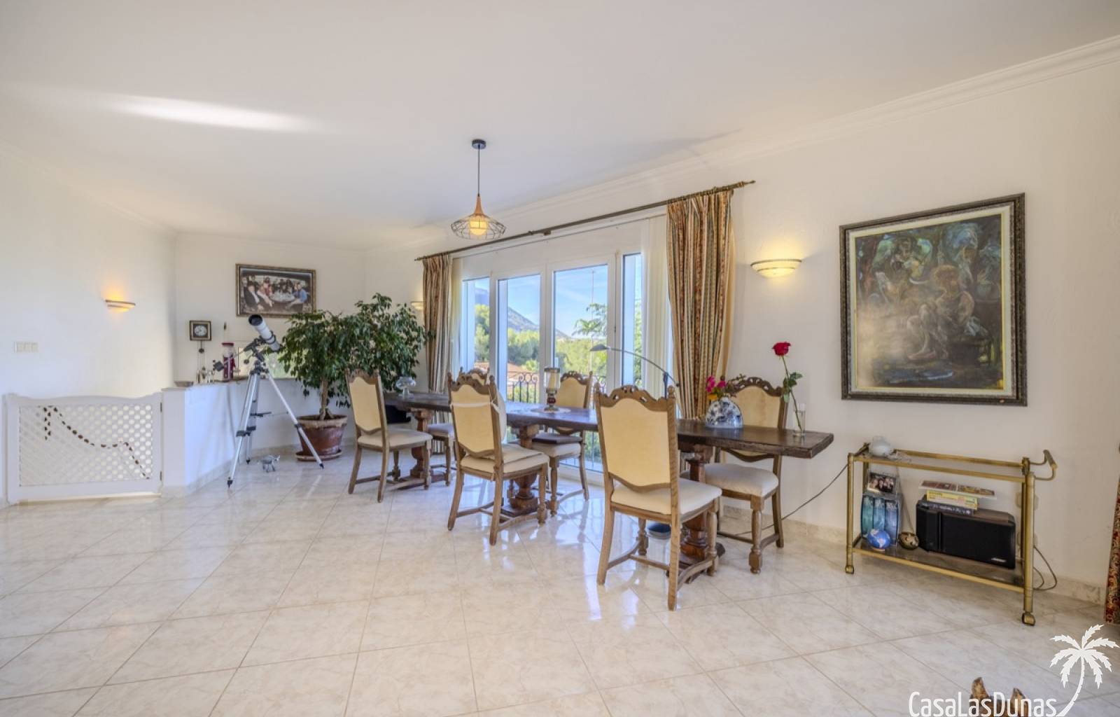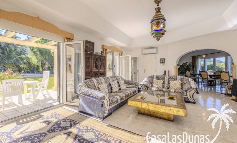Deze prachtige villa met uitzicht op zee bevindt zich in een rustige en groene omgeving op slechts enkele minuten van het centrum, strand en alle voorzieningen.Het huis is gelegen op een perceel van 1085 m²en valt op door de indrukwekkende buitenruimte met een prachtige en goed onderhouden tuin met een zwembad op het zuiden en uitzicht op de Montgó. Met een bebouwde oppervlakte van 267 m² is het pand ontworpen om u de ruimte te bieden die u nodig heeft. De villa beschikt over een ruime en lichte woon-eetkamer met een open haard en grote ramen met een prachtig uitzicht op de zee en de stad, met toegang tot twee open terrassen, één op het zuiden met uitzicht op de bergen en de andere op het noorden met uitzicht op zee; een grote aparte keuken, eveneens met directe toegang tot het terras; drie gezellige slaapkamers; twee badkamers en een gastentoilet; de hoofdslaapkamer heeft een en-suite badkamer en toegang tot een balkon dat privacy en comfort biedt. Daarnaast beschikt het huis op de benedenverdieping over een zeer ruime slaapkamer, een kleine keuken, een badkamer en een wasruimte. Deze ruimte kan ook als apart appartement gebruikt worden. De garage bevindt zich ook op deze verdieping en beide verdiepingen zijn verbonden door een interne trap.