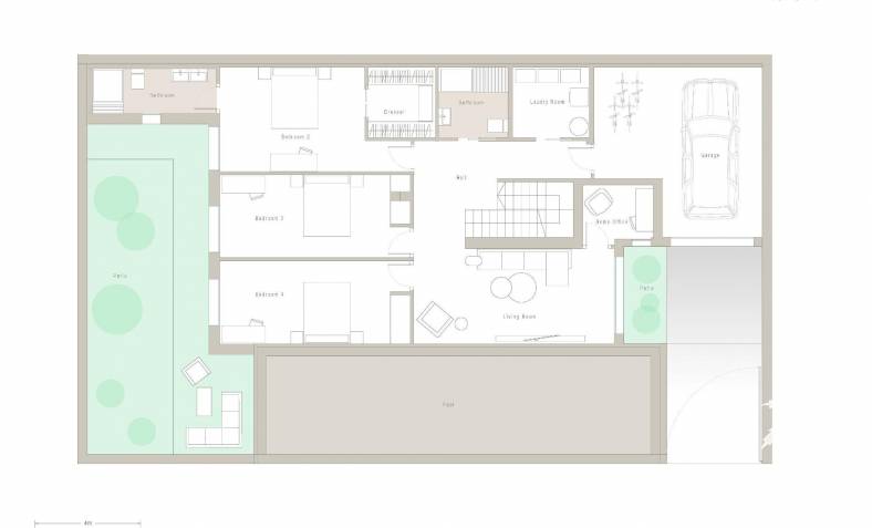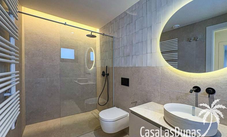 De villa heeft 4 slaapkamers, met de mogelijkheid om een 5e slaapkamer of een extra woonkamer te creëren, perfect aangepast aan uw levensstijl. Op de begane grond vindt u een open woon- en eetkamer die in verbinding staat met een moderne, volledig uitgeruste keuken met hoogwaardige apparatuur, waardoor een naadloze overgang naar het terras en het zwembad ontstaat; ideaal om buiten te entertainen of te ontspannen.