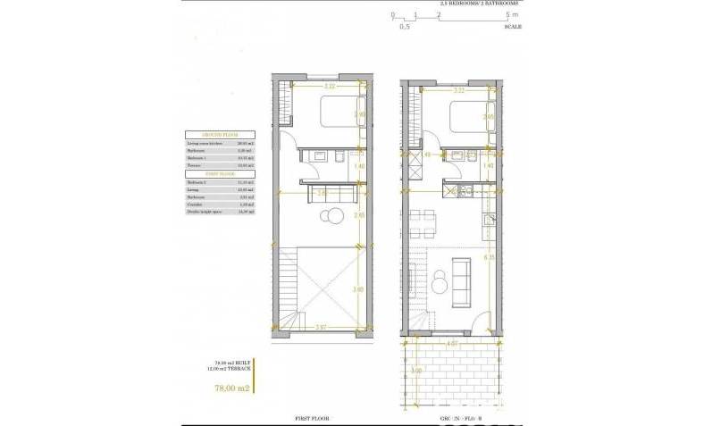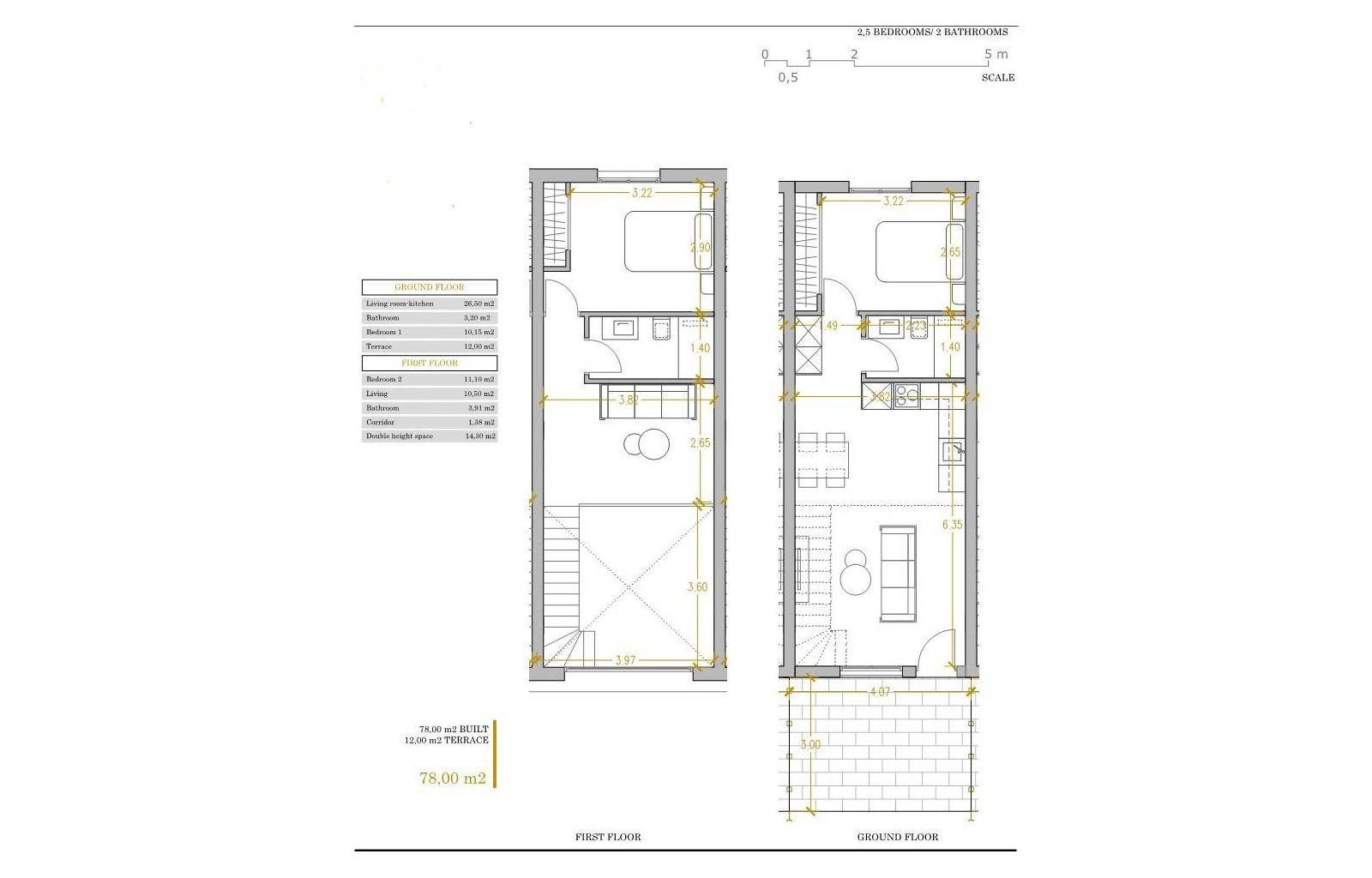 7 herenhuizen van 2 en 3 slaapkamers met toegang tot een gemeenschappelijk zwembad.