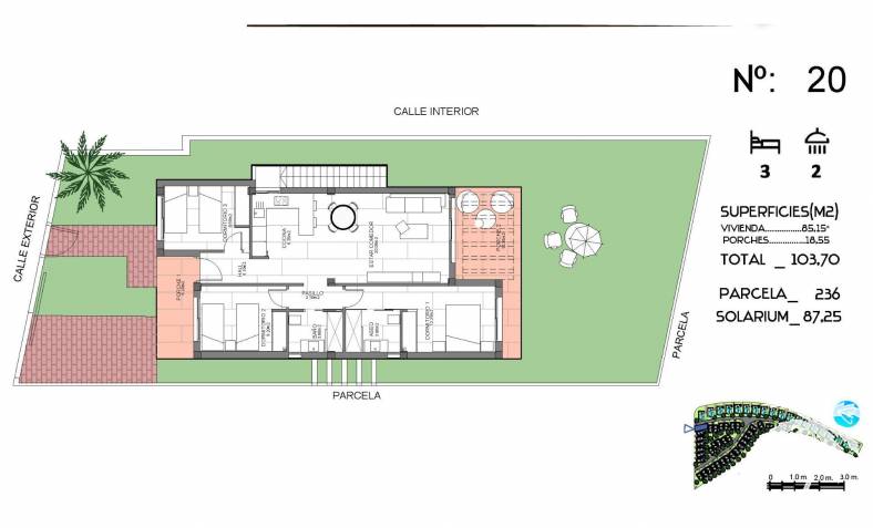 Villa's gebouwd over 1 verdieping en bestaat uit 3 slaapkamers, 2 badkamers, open keuken, de woonkamer met open uitzicht op het terras, solarium, prive tuin met het zwembad en parkeerplaats.
