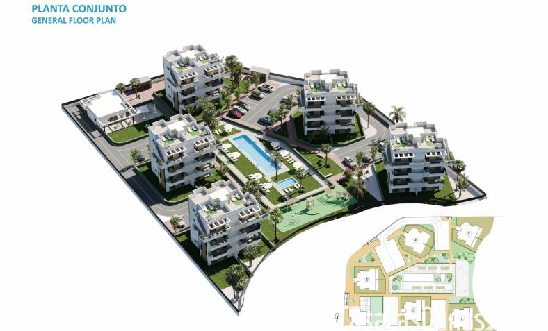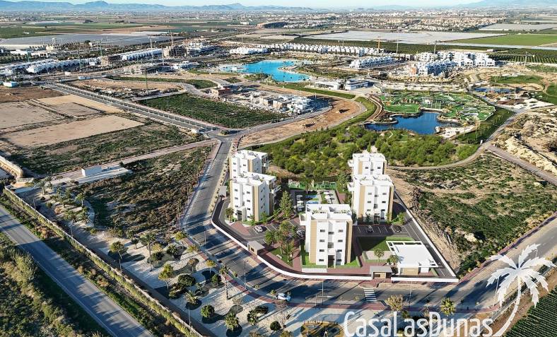 Deze nieuwbouw toeristische appartementen in Santa Rosalía Lake and Life Resort vertegenwoordigen een van de beste investerings- en lifestylemogelijkheden in de regio Murcia. Het complex ligt op minder dan 4 km van de stranden van Los Alcázares en op slechts 22 km van de internationale luchthaven van Murcia en biedt een onovertroffen combinatie van bereikbaarheid, vrije tijd en modern mediterraan leven. De historische stad Cartagena ligt op slechts 15 minuten afstand, terwijl er binnen een straal van 10 km verschillende prestigieuze golfbanen te vinden zijn.