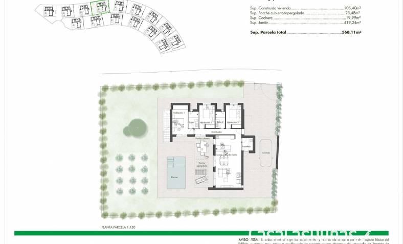 De woonwijk bestaat uit 15 villa's op percelen vanaf 550 m2. Alle woningen hebben 3 slaapkamers en 2 complete badkamers op één verdieping, plus een terras met privézwembad en een privédakterras met uitzicht op de golfbaan.
