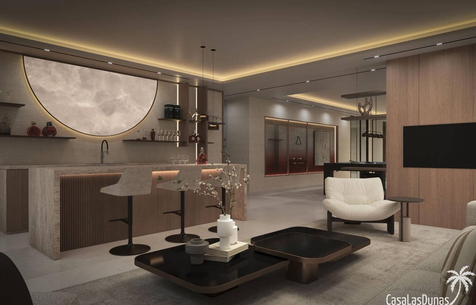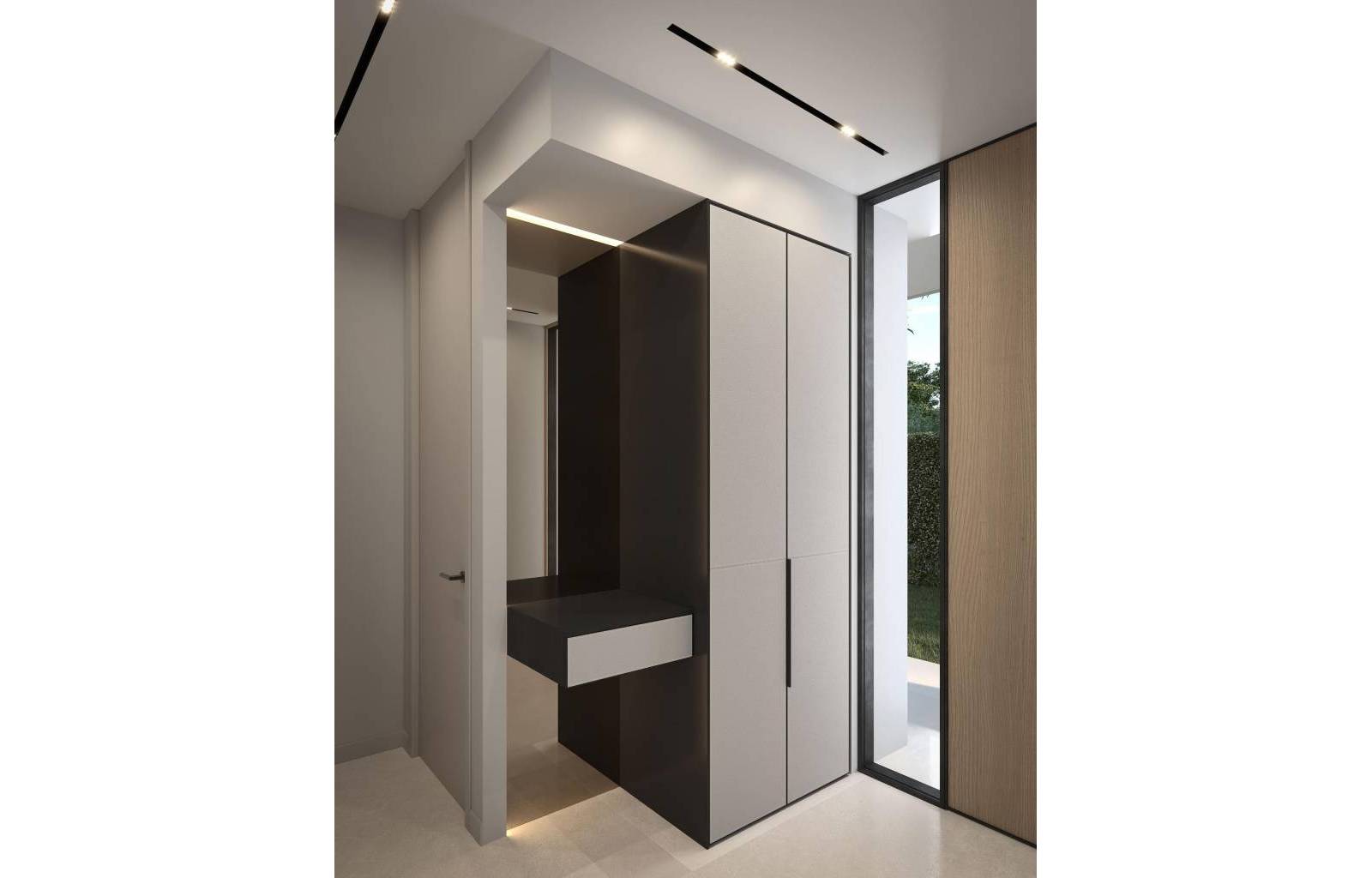De binnenruimtes combineren elegantie en functionaliteit met hoogwaardige afwerkingen, waaronder: