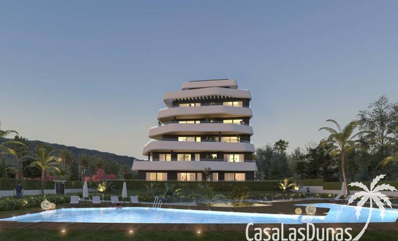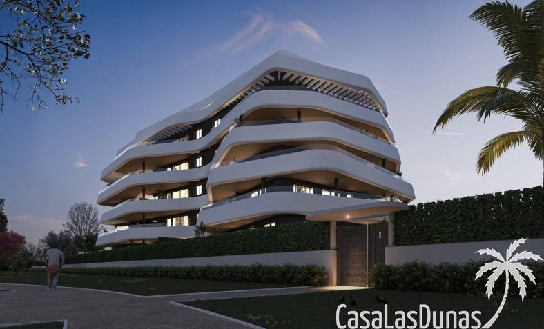 Het complex bestaat uit vier elegante gebouwen die strategisch naar de zee zijn gericht om het natuurlijke licht en het uitzicht vanuit elke woning te maximaliseren. Alle appartementen hebben 2 of 3 slaapkamers, ruime terrassen en open woonruimtes die zijn ontworpen om een naadloze verbinding te creëren tussen het interieur en de prachtige omgeving.