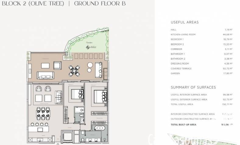De gemeenschap beschikt over luxe appartementen met 2 en 3 slaapkamers, penthouses en duplex-penthouses binnen een beveiligd gated complex. De eerste fase bestaat uit slechts 16 woningen, verdeeld over twee laagbouwgebouwen, wat exclusiviteit en rust garandeert.