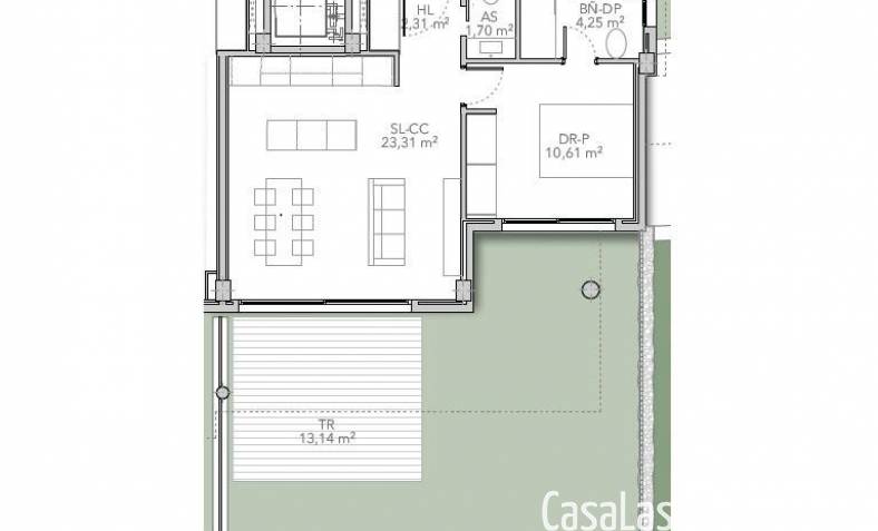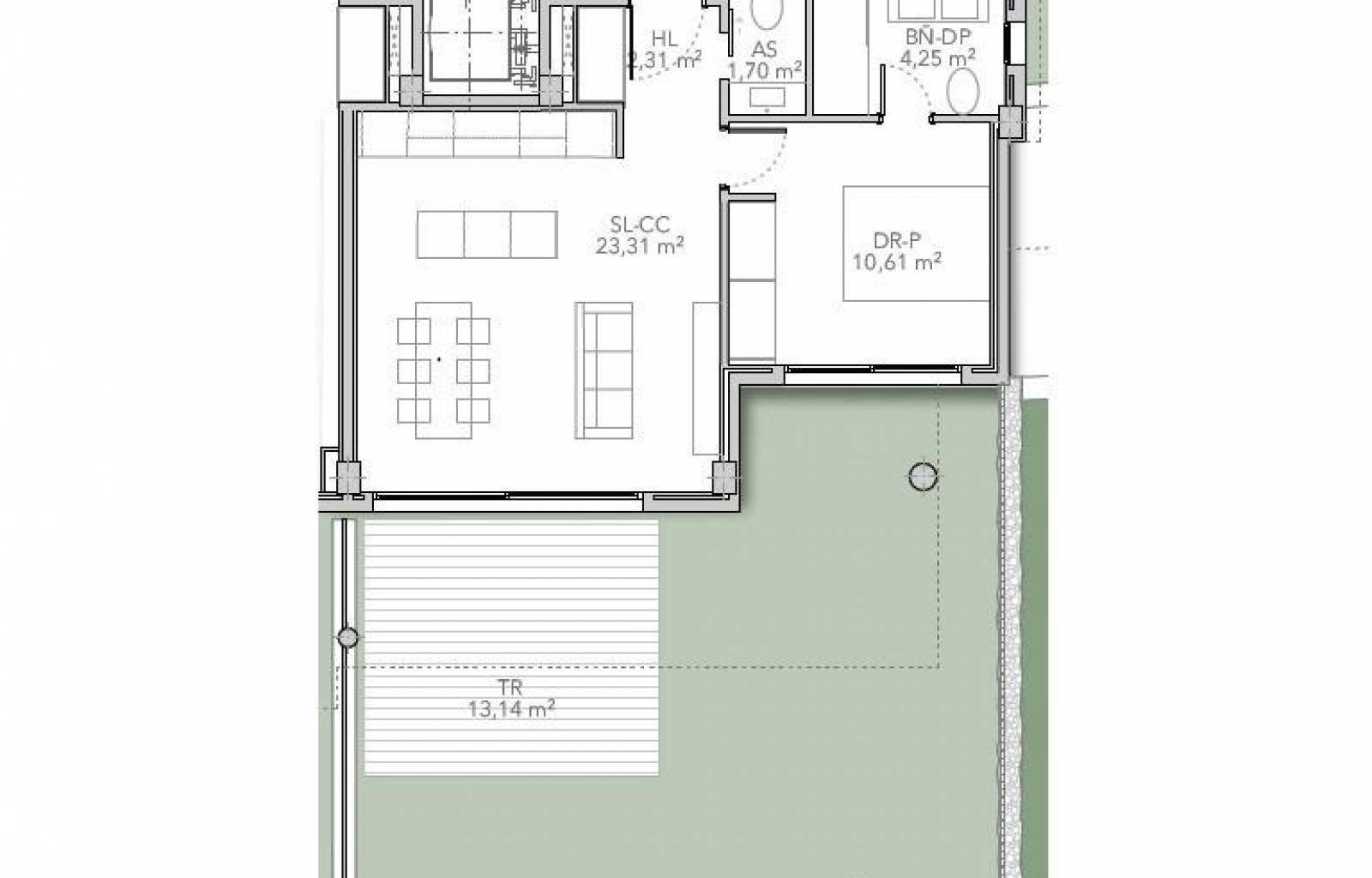 Begane grond appartementen heeft een eigen tuin, eerste en tweede verdieping heeft mooie terrassen en het bovenste niveau van de penthouses met prive solarium en optioneel zwembad.