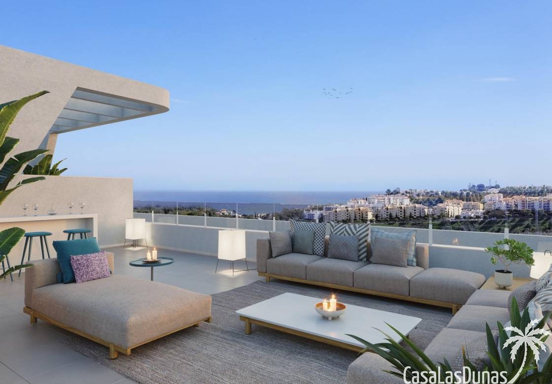 Volledig omheind wooncomplex bestaande uit 6 gebouwen, met in totaal 108 appartementen en penthouses met 2 en 3 slaapkamers, waarvan de helft met uitzicht op de golfbaan en de Mijas bergketen, en de andere helft met ongelooflijk panoramisch uitzicht op zee, zodat je kunt kiezen wat je het mooist vindt. Ze hebben allemaal een eigen parkeerplaats. Er zijn gemeenschappelijke tuinen met tropisch design en een prachtig zwembad. Je kunt ook genieten van een fitnessruimte, een sociale ruimte en een coworkingruimte. De begane grond heeft een privétuin en vanaf de tweede verdieping zijn er duplexpenthouses met solarium.