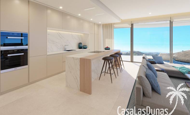 Kies uit een exclusieve selectie appartementen en penthouses met 2, 3 en 4 slaapkamers die zijn ontworpen om te harmoniëren met de natuurlijke schoonheid van de omgeving. Elke woning heeft uitgestrekte terrassen, begane grond met privétuinen en penthouses met privésolariums op het dak met de mogelijkheid van privézwembaden, zodat je optimaal kunt genieten van de mediterrane levensstijl. Grote ramen, open ruimtes en lichtgekleurde interieurs creëren een heldere en luchtige sfeer, waardoor binnen- en buitenleven naadloos in elkaar overgaan.