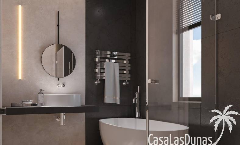 Komplekset ligger kun 220 m fra stranden og består af 3 blokke, hver med 5 lejligheder, i et lukket område med videoovervågning, hvilket giver maksimal privatliv og personlig komfort.