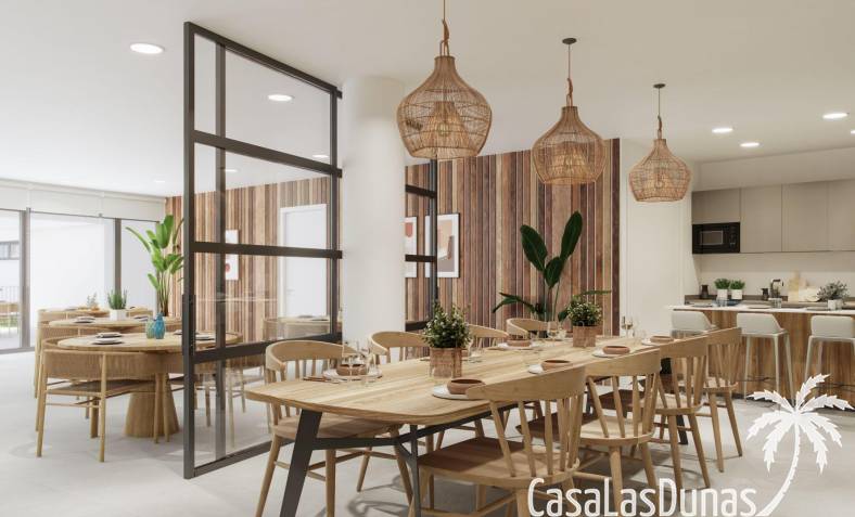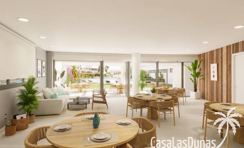 New Build ontwikkeling heeft exclusieve tuin gemeenschappelijke ruimtes, waaronder twee zout chloor zwembaden, een fitnessruimte met een sauna waar u kunt genieten van een gezond leven, een coworking kamer, zodat uw werk kantoor is dichterbij dan ooit en een sociale club waar u kunt genieten van het gezelschap van familie en vrienden. Deze residentie is kiezen voor leven in een resort zonder je huis te verlaten.